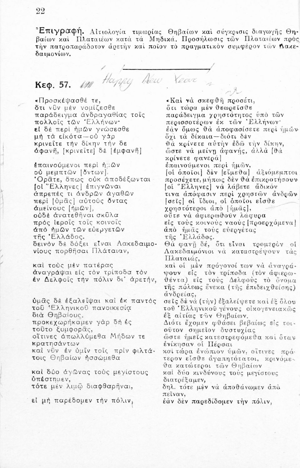 LDR 01217 2200193 4500 035 ## _a01-45039 040 ## _aΙνστιτούτο Εκπαιδευτικής Πολιτικής 041 ## _ael 100 ## _aΘουκυδίδης _aΙωάννης Ρώσσης (μετάφραση _aσχόλια) 110 ## _a45039 245 0# _aΔημηγορίαι Θουκυδίδου (Δημηγορίαι Πλαταίεων- Θηβαίων-Κλέωνος) δια τους μαθητάς της Ζ΄ τάξεως των Οκταταξίων Γυμνασίων κατά το εγκεκριμένον βιβλίον του Ο.Ε.Σ.Β. 260 ## _aΑθήνα _bΝικόλαος και Σοφοκλής Ι. Ρώσσης 300 ## _a112 520 ## _aΜαθητικό βοήθημα Αρχαίων Ελληνικών Β' Λυκείου που περιλαμβάνει μετάφραση, ερμηνευτικές παρατηρήσεις καθώς και συντακτική ανάλυση. 521 ## _aΒ' Λυκείου 522 ## _aΕλλάδα 546 ## _aΑπλή καθαρεύουσα 563 ## _aΜαλακό Εξώφυλλο 650 #4 _aΔημηγορίες _aΘηβαίοι _aΘουκυδίδης _aΚλέωνας _aΠλαταιείς