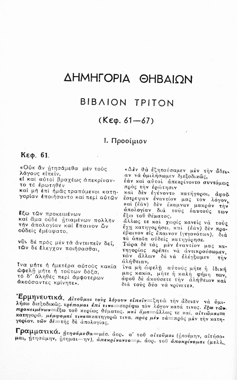 Τίτλος: Δημηγορίαι Θουκυδίδου (Δημηγορίαι Πλαταίεων- Θηβαίων-Κλέωνος) δια τους μαθητάς της Ζ΄ τάξεως των Οκταταξίων Γυμνασίων κατά το εγκεκριμένον βιβλίον του Ο.Ε.Σ.Β.