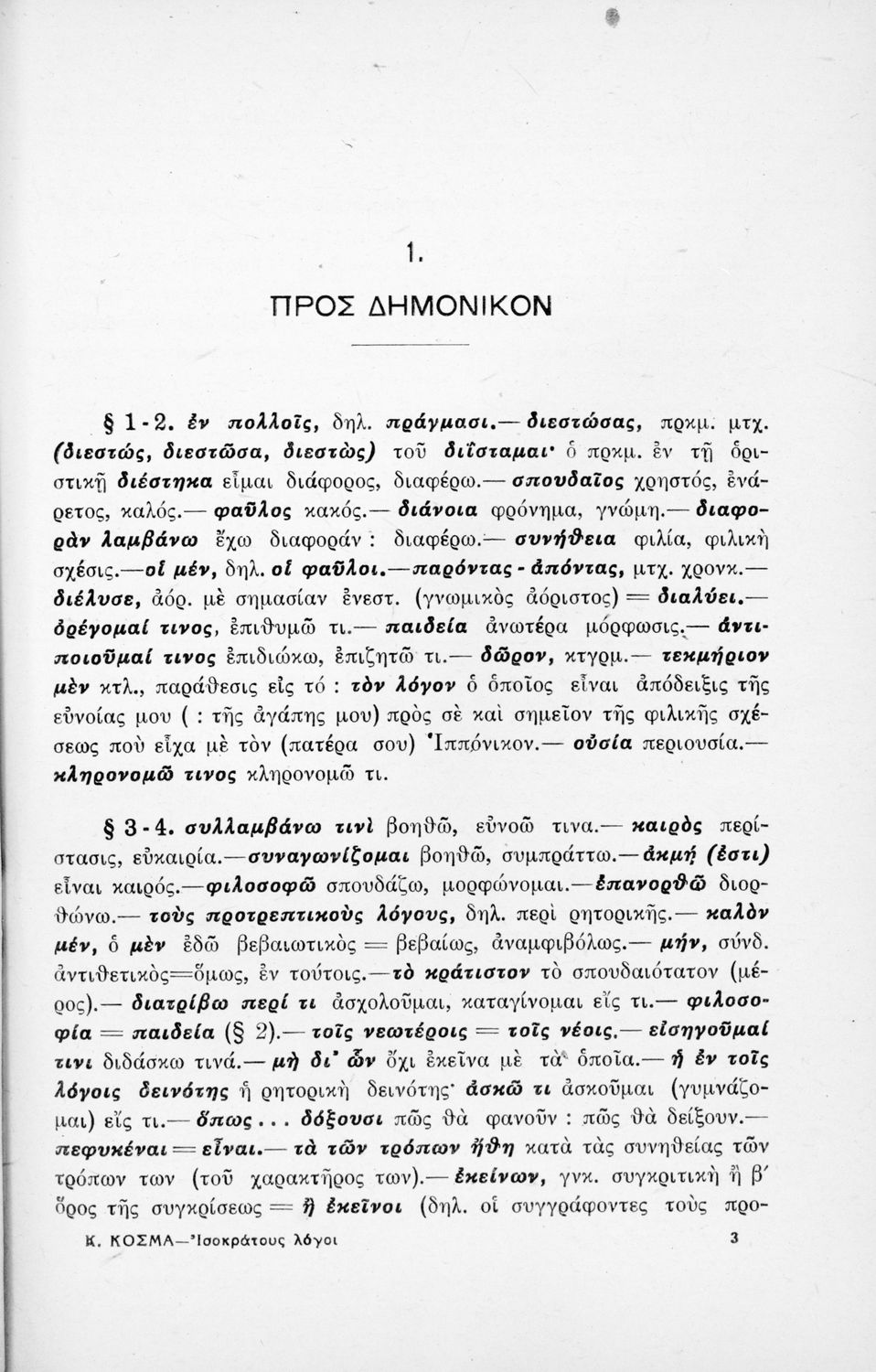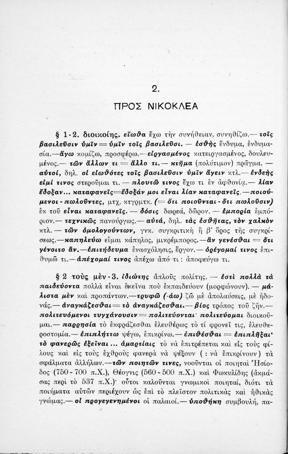 Ισοκράτους Λόγοι (προς Δημόνικον, προς Νικοκλέα, Ευαγόρα), κείμενον σημειώσεις