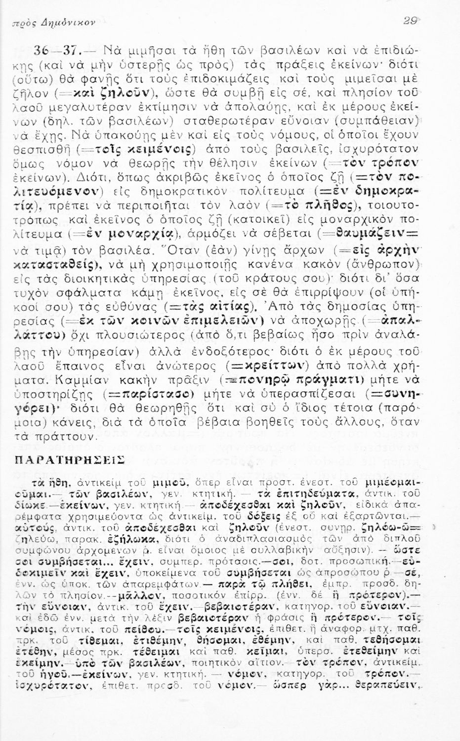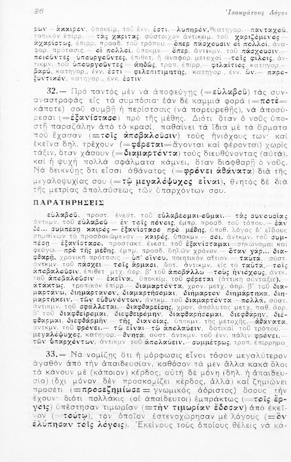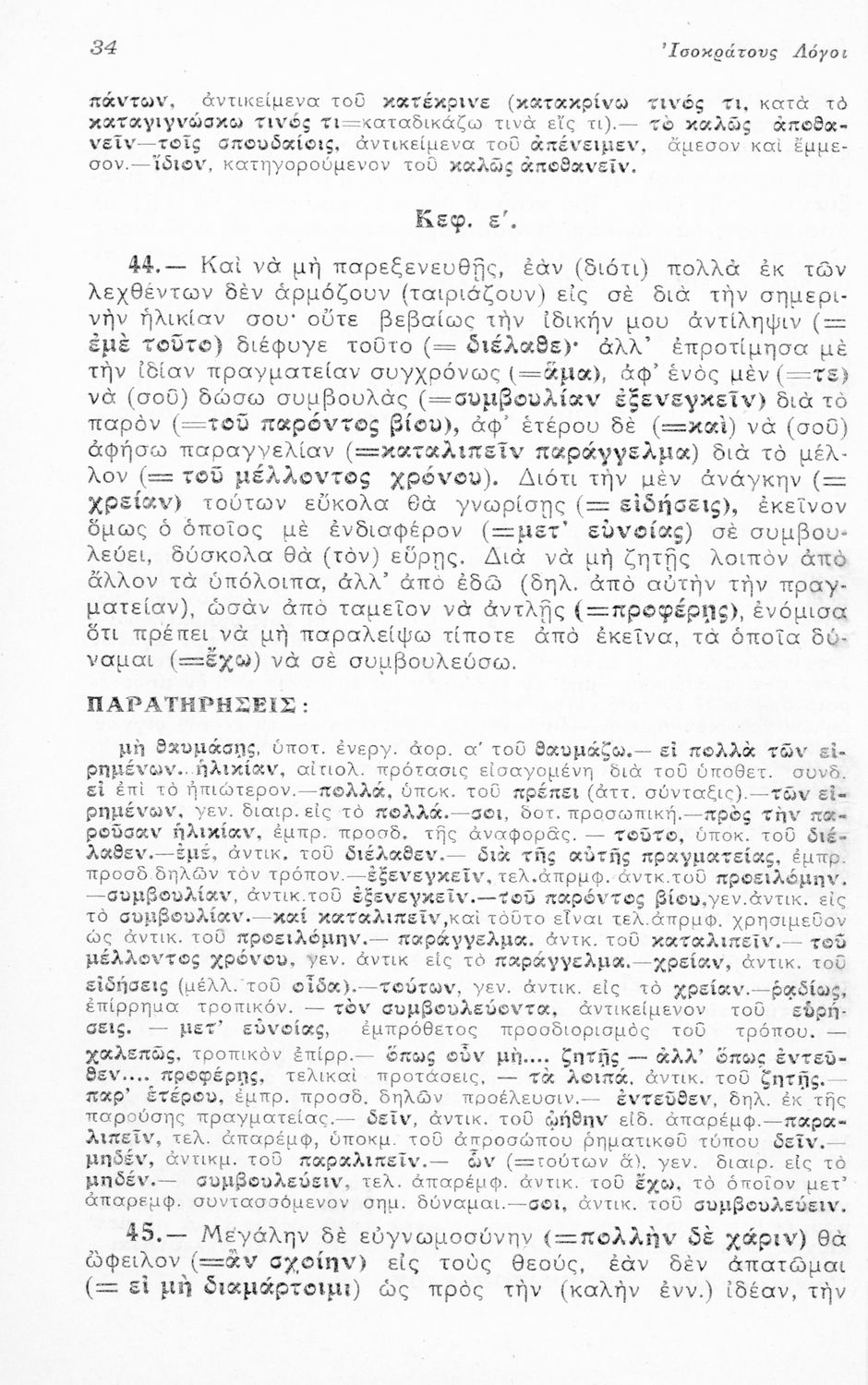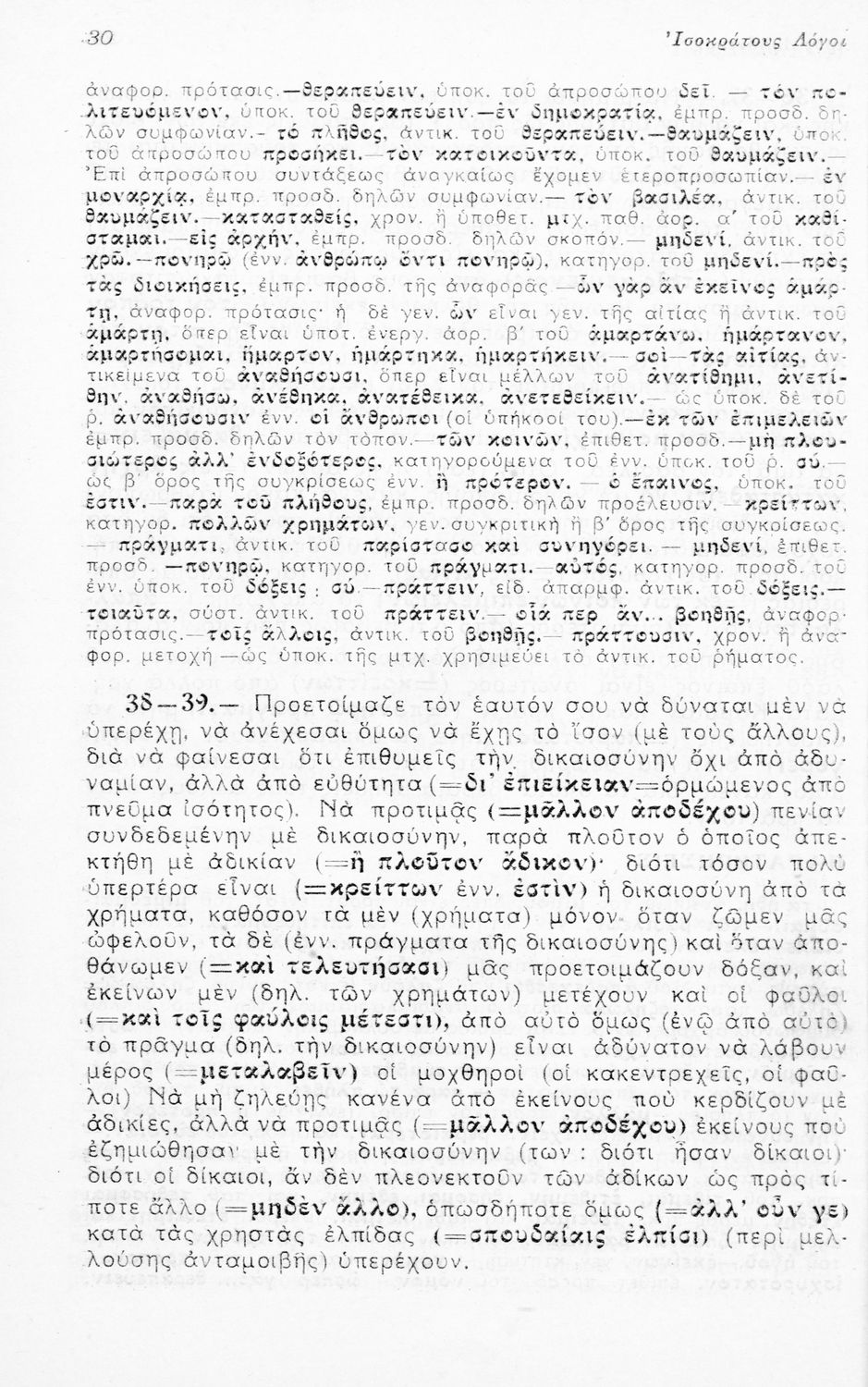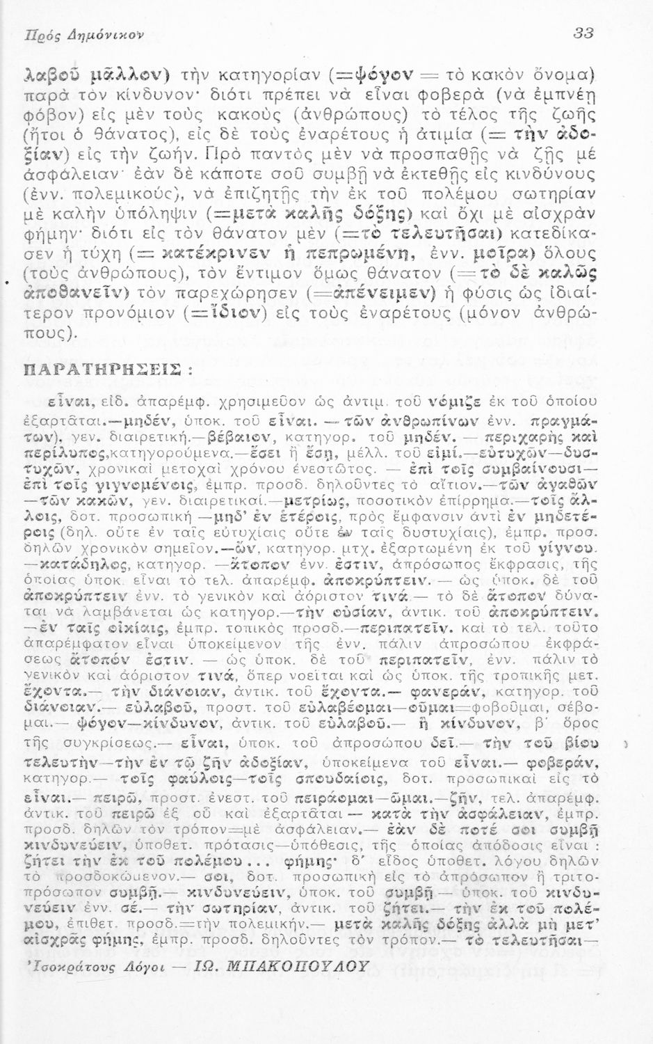Μαθητικό βοήθημα Αρχαίων Ελληνικών Ε' Γυμνασίου που περιλαμβάνει μετάφραση των Λόγων του Ισοκράτη Προς Δημόνικον, Προς Νικοκλέα και Ευαγόρας, ερμηνευτικά, γραμματικά και συντακτικά σχόλια.