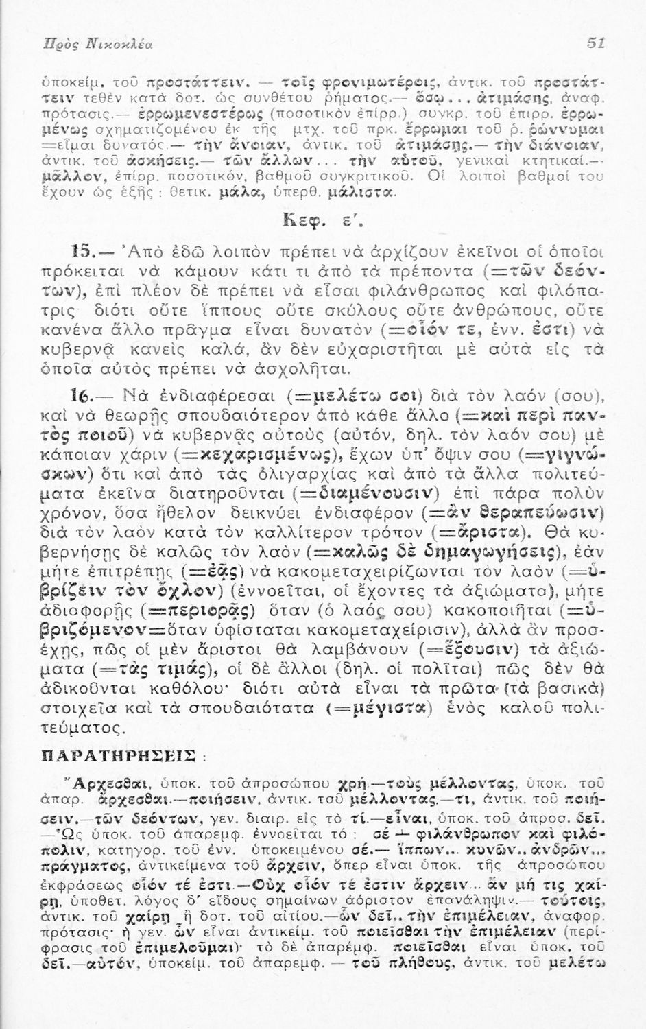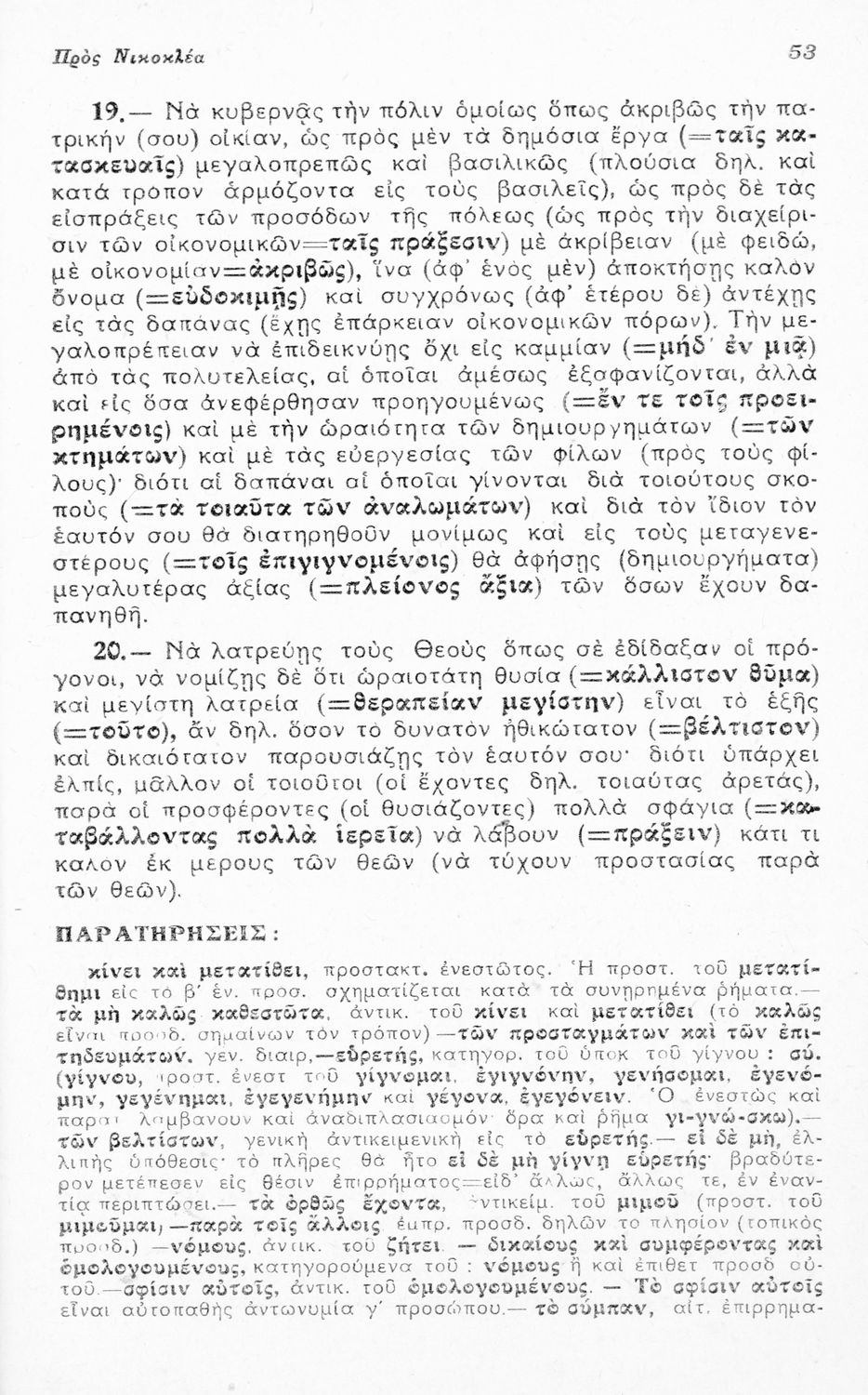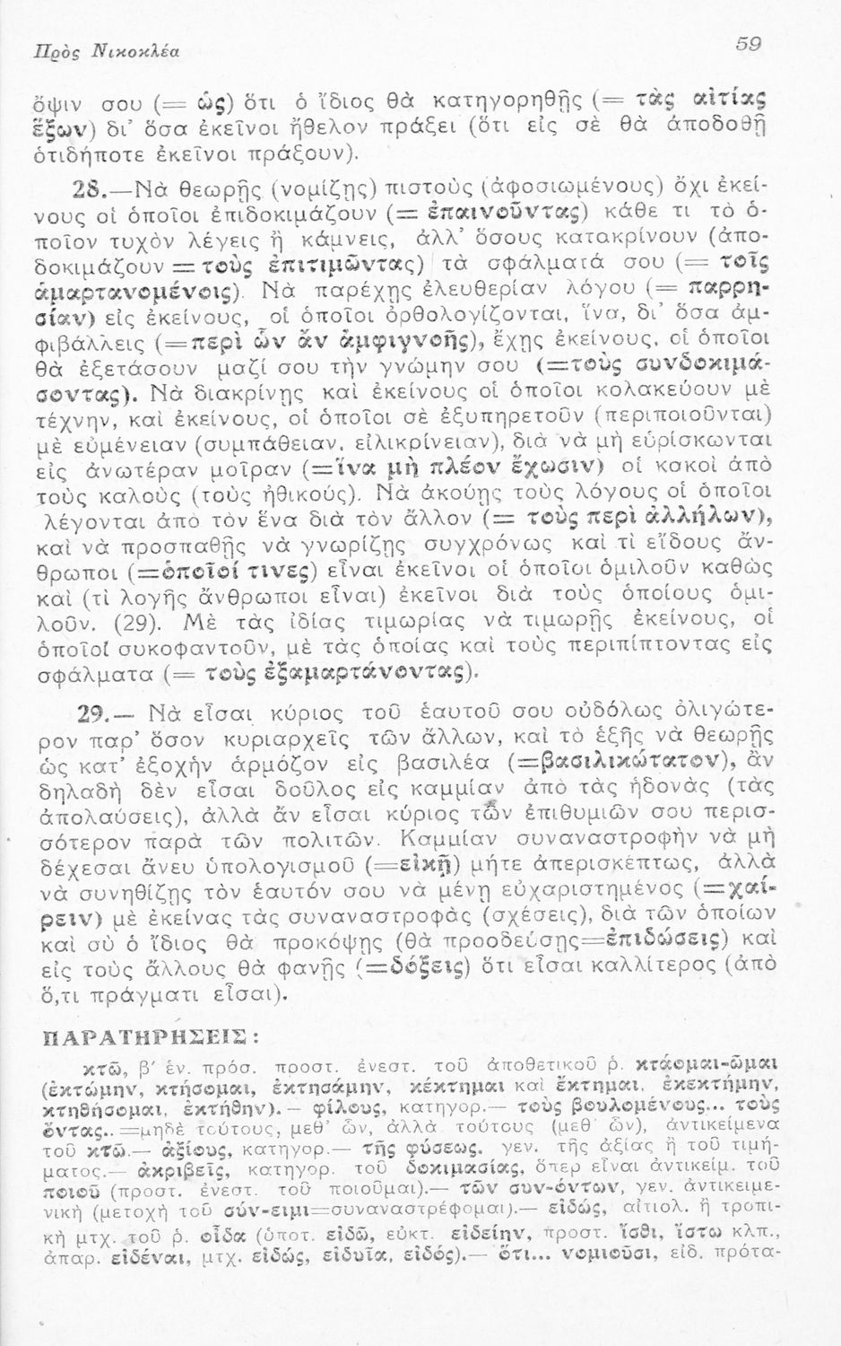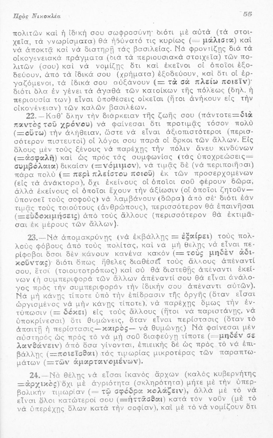 Μαθητικό βοήθημα Αρχαίων Ελληνικών για τους μαθητές της Ε΄ Οκταταξίου Γυμνασίου που περιλαμβάνει τους Λόγους του Ισοκράτη Προς Δημόνικον και Προς Νικοκλέα, μετάφραση, γραμματικά και συντακτικά σχόλια και ...