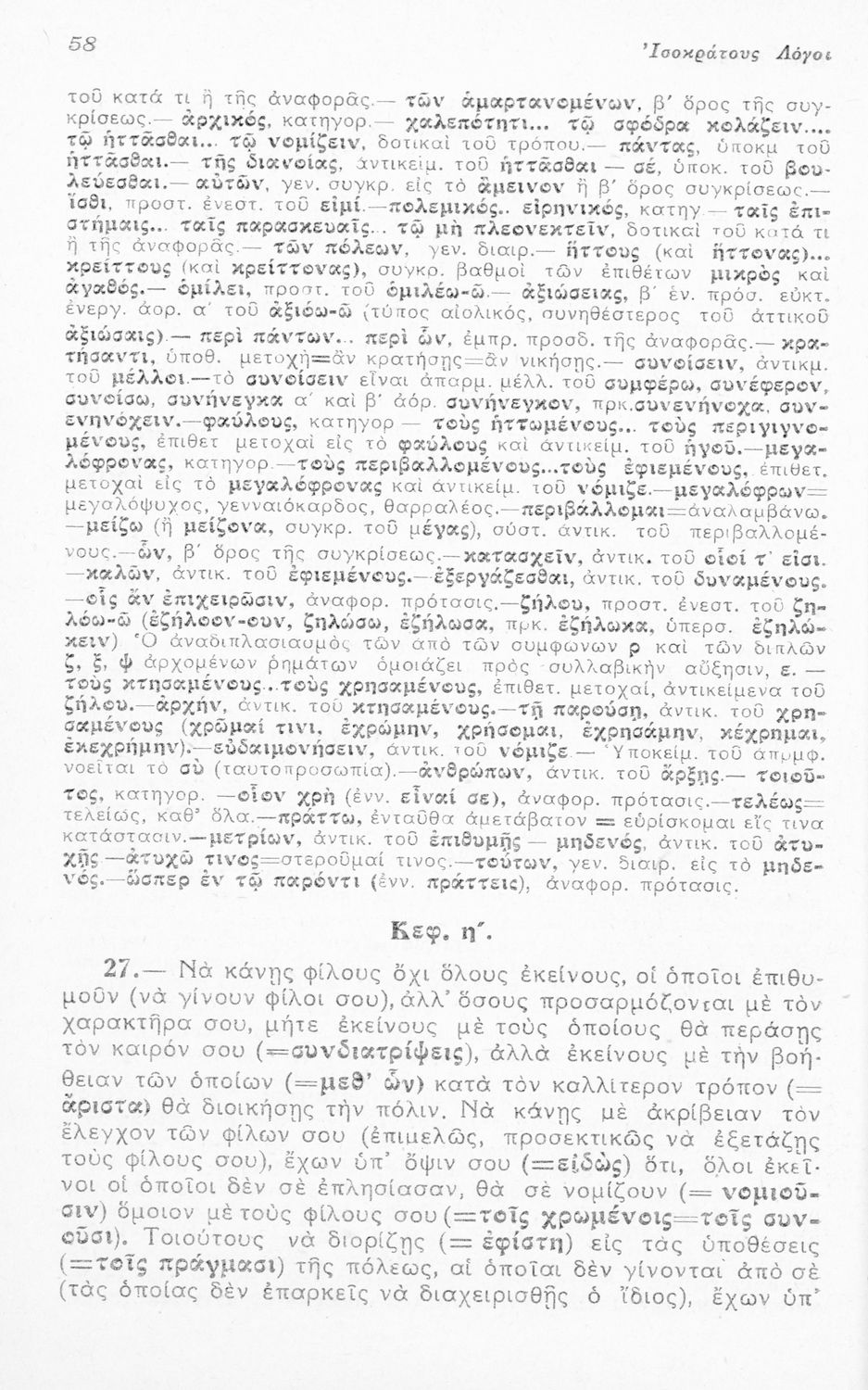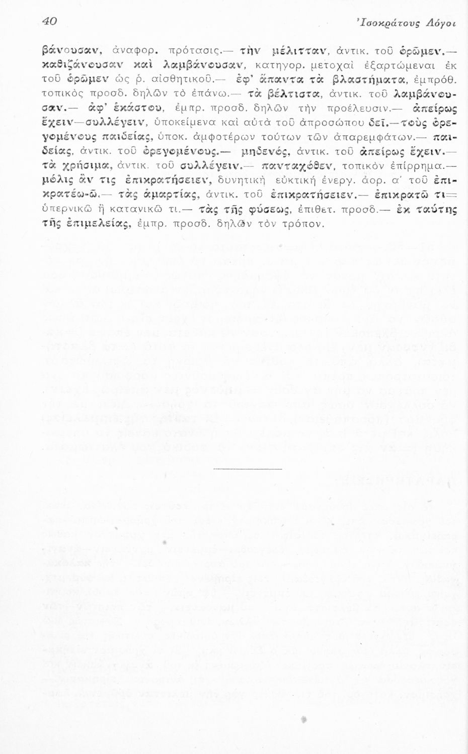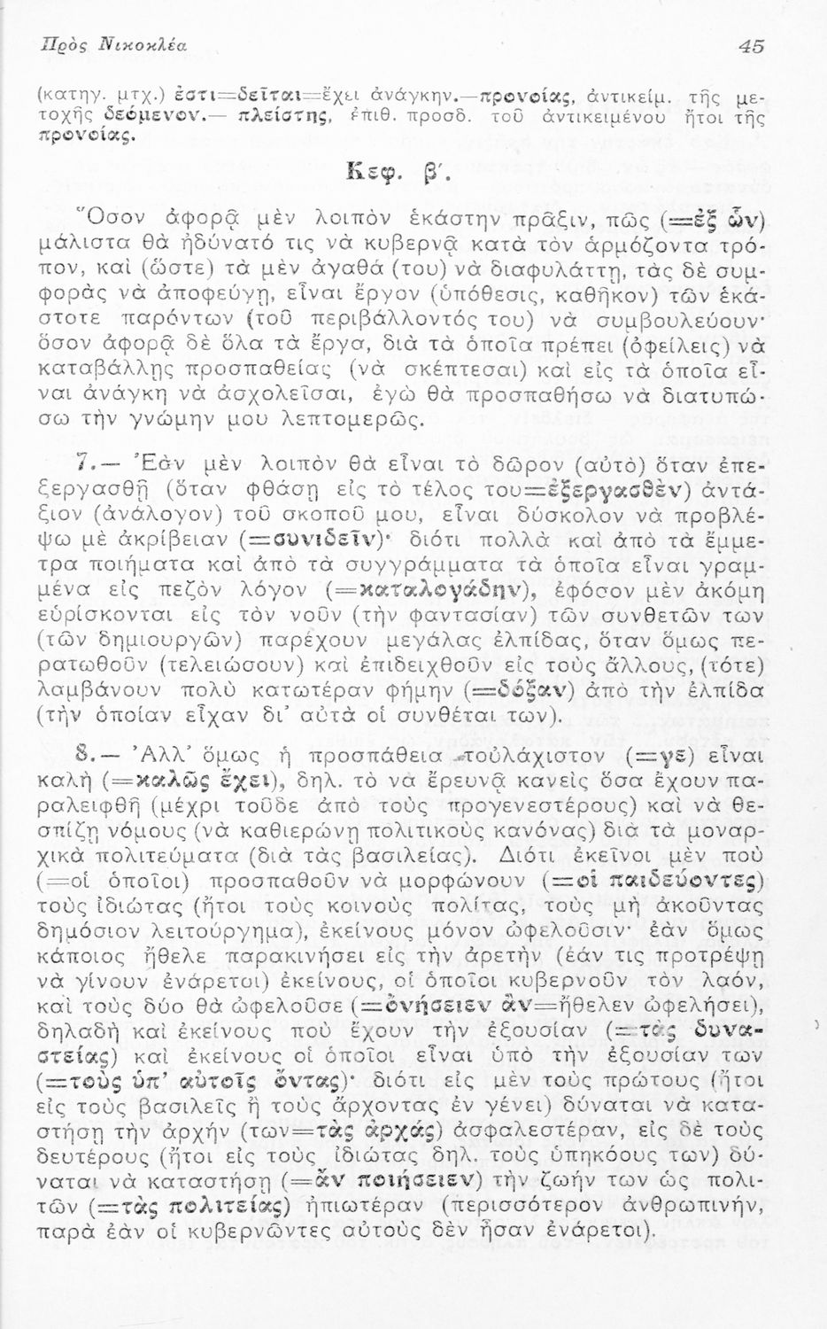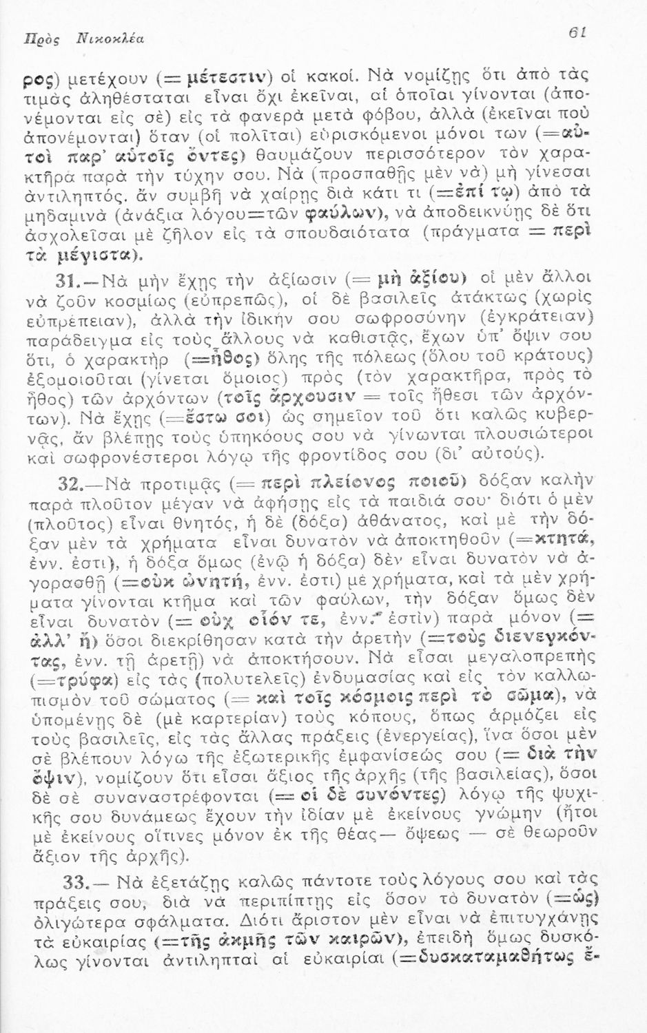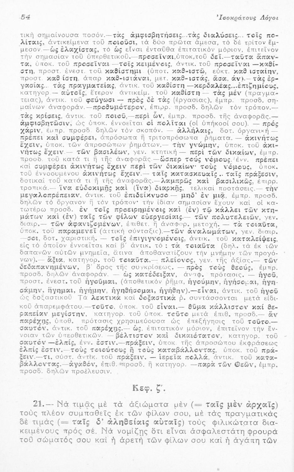 Μαθητικό βοήθημα Αρχαίων Ελληνικών για τους μαθητές της Ε΄ Οκταταξίου Γυμνασίου που περιλαμβάνει τους Λόγους του Ισοκράτη Προς Δημόνικον και Προς Νικοκλέα, μετάφραση, γραμματικά και συντακτικά σχόλια και ...