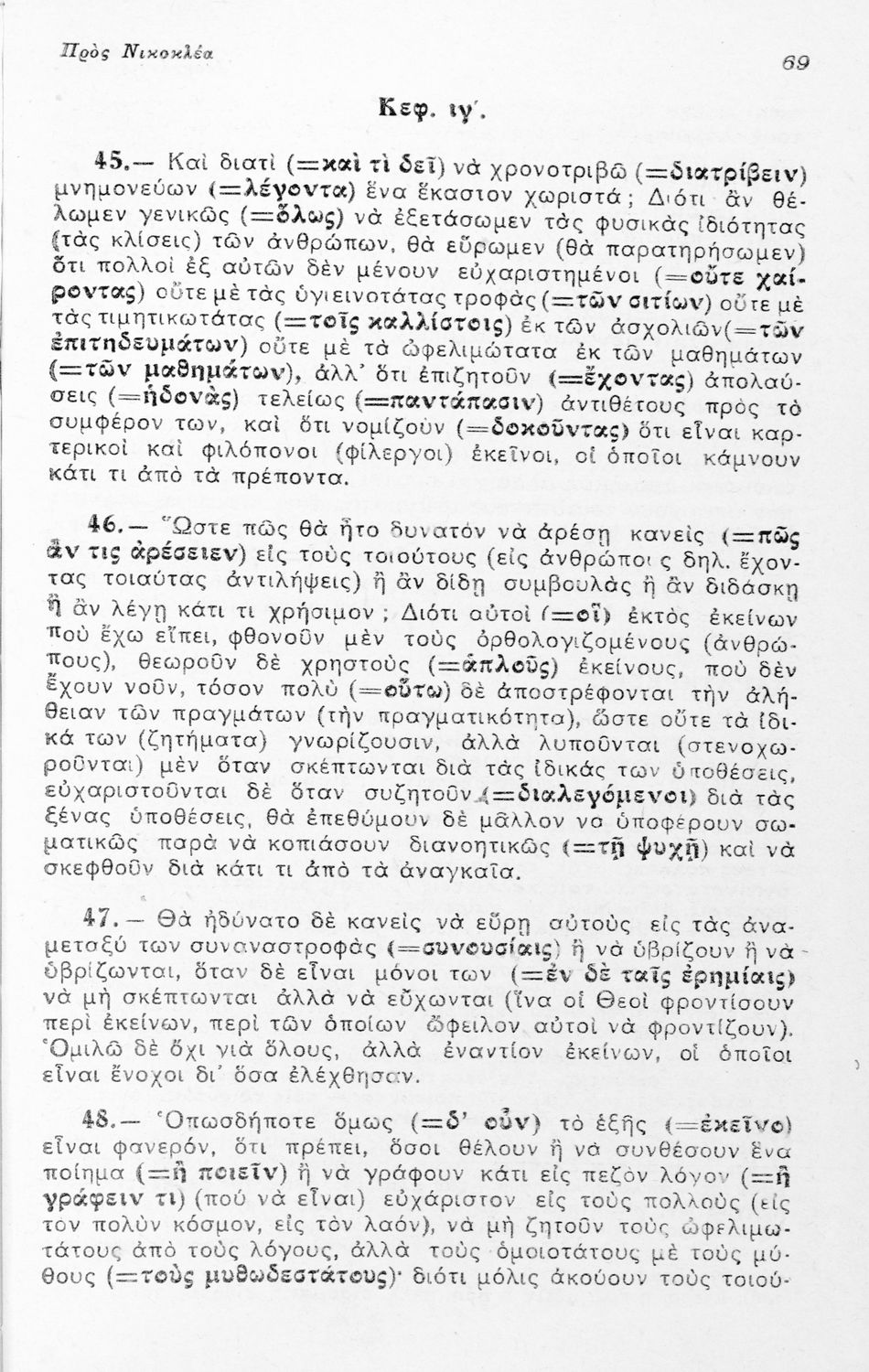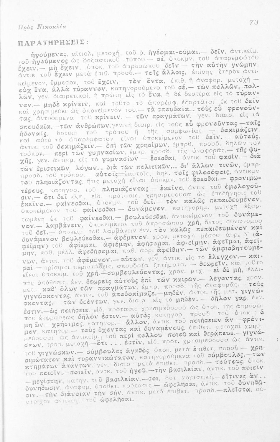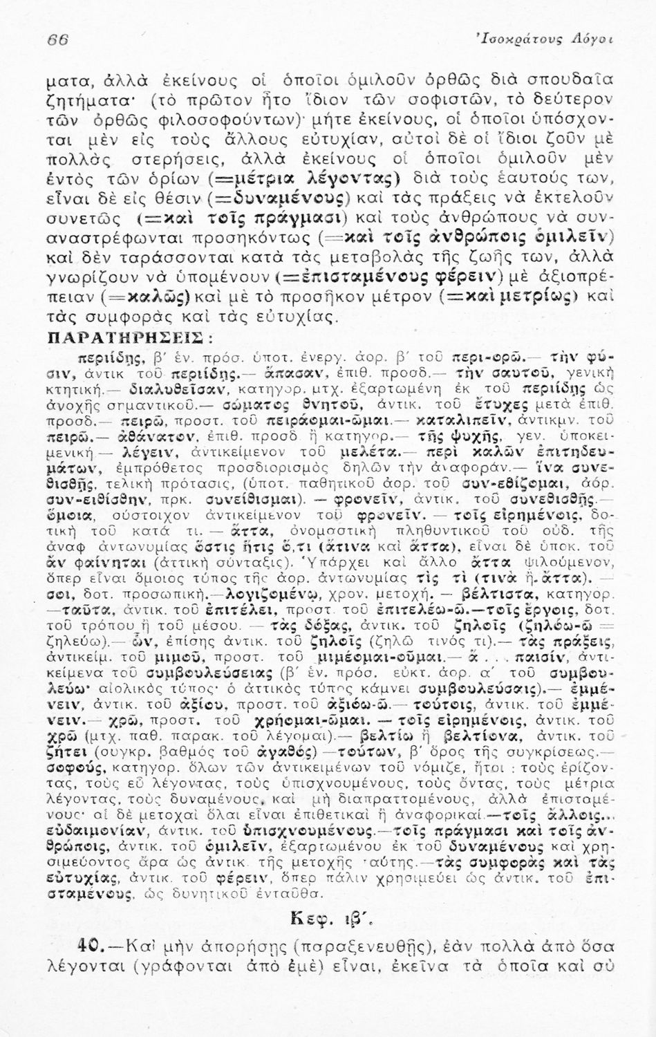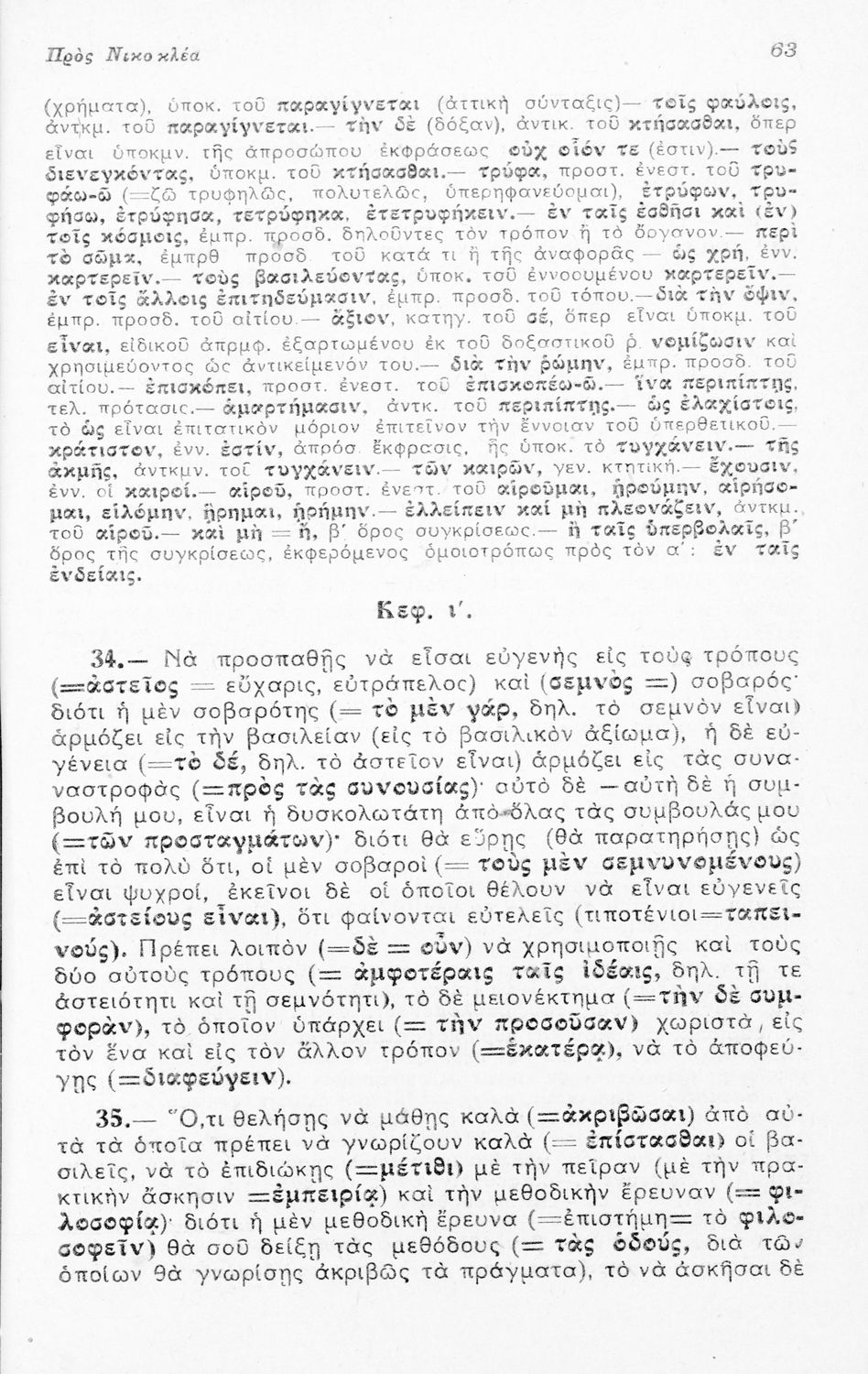 Μαθητικό βοήθημα Αρχαίων Ελληνικών για τους μαθητές της Ε΄ Οκταταξίου Γυμνασίου που περιλαμβάνει τους Λόγους του Ισοκράτη Προς Δημόνικον και Προς Νικοκλέα, μετάφραση, γραμματικά και συντακτικά σχόλια και ...