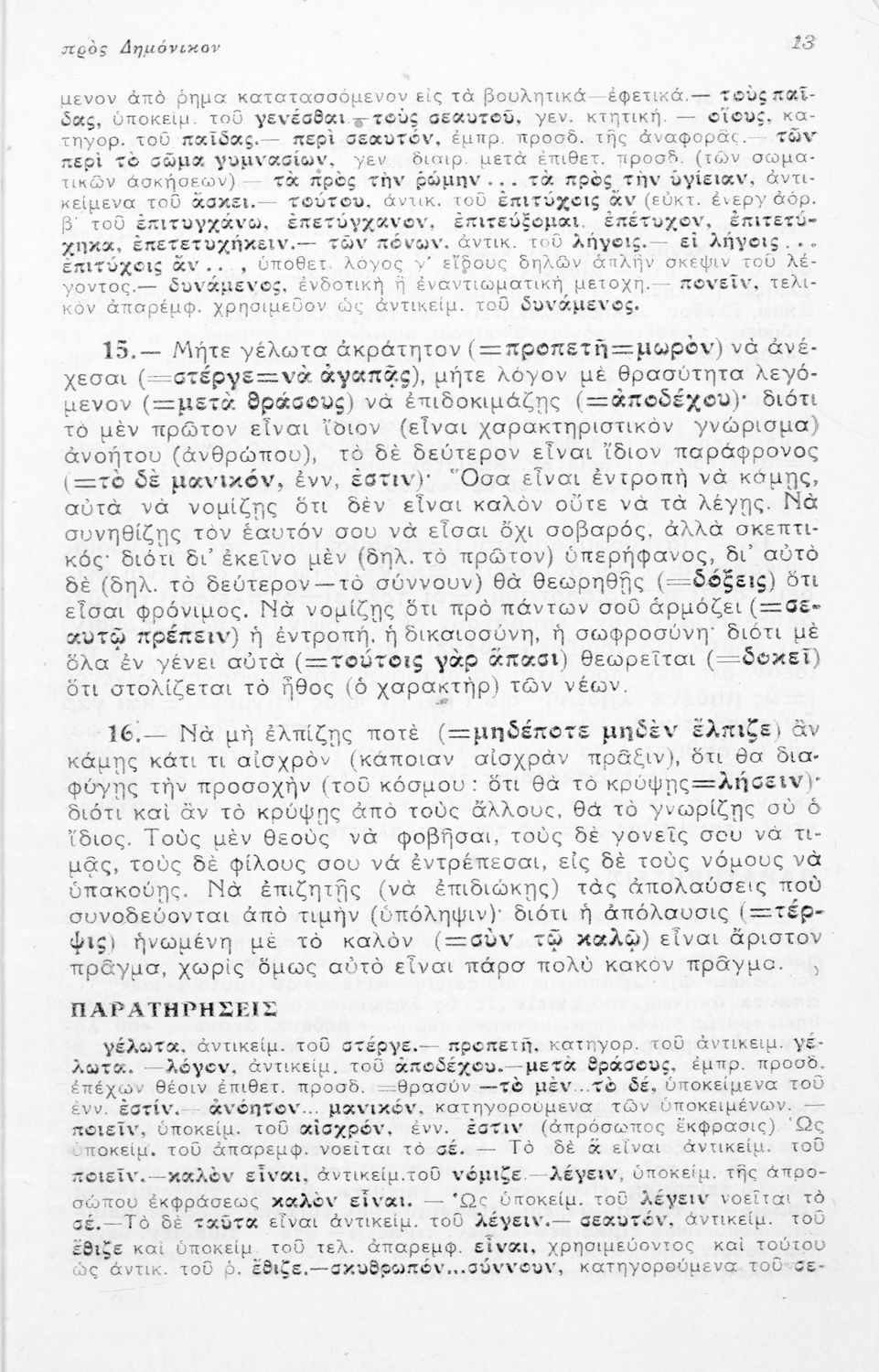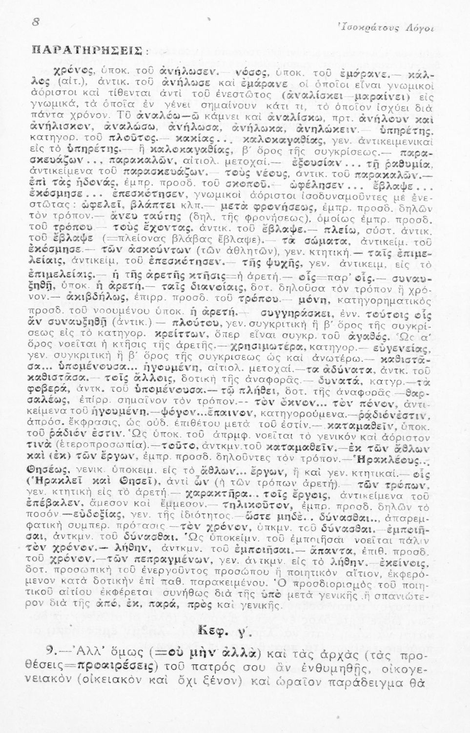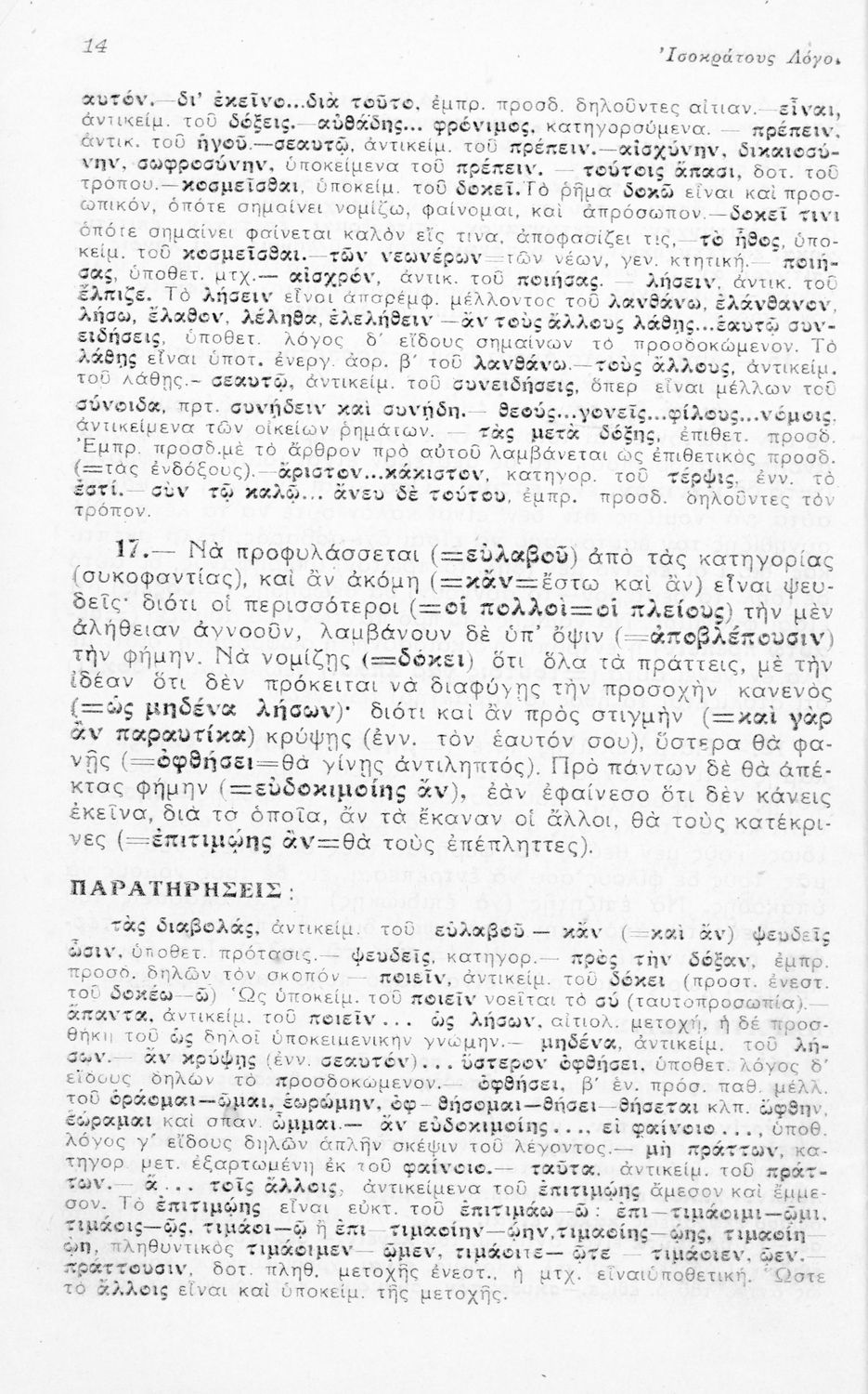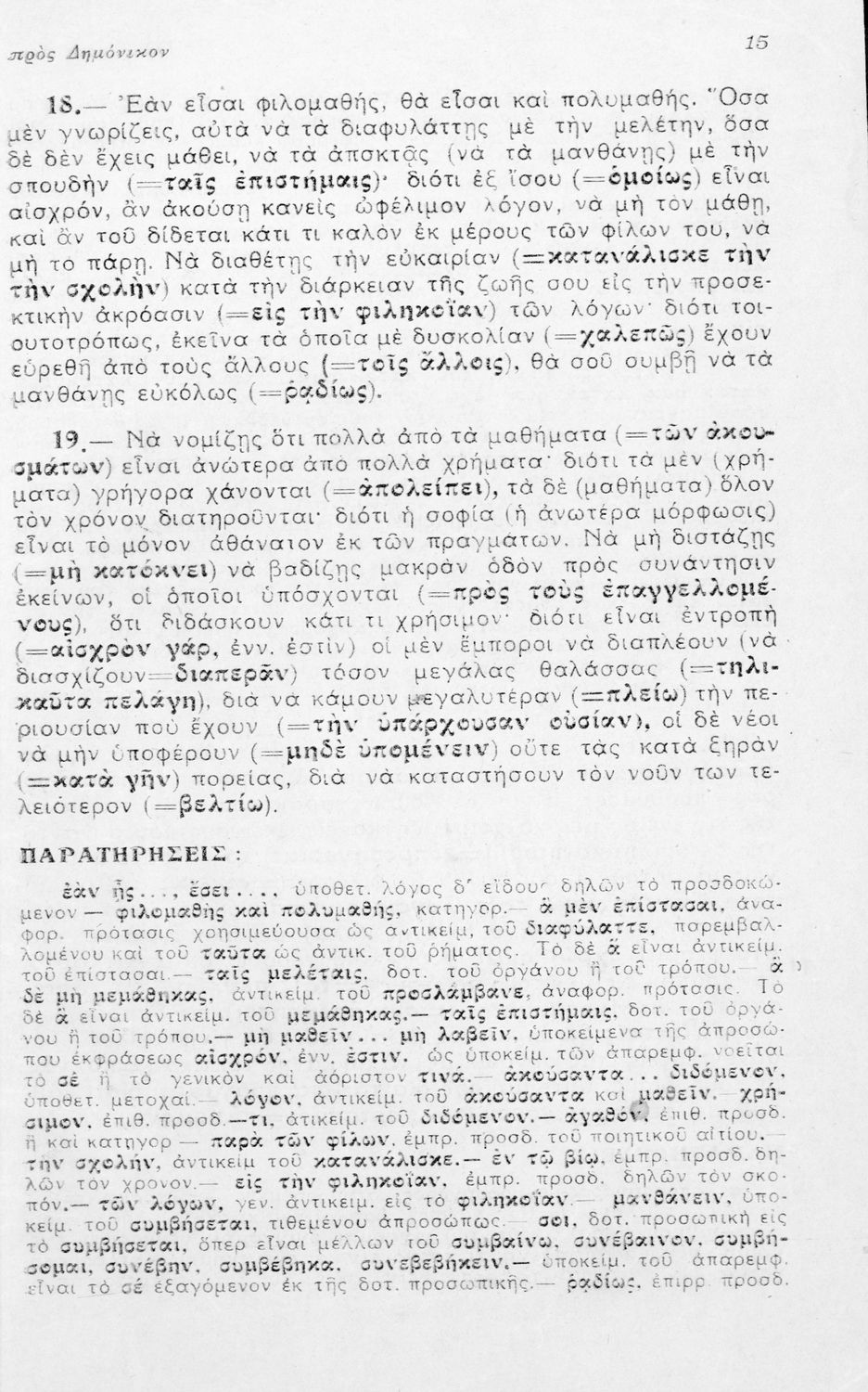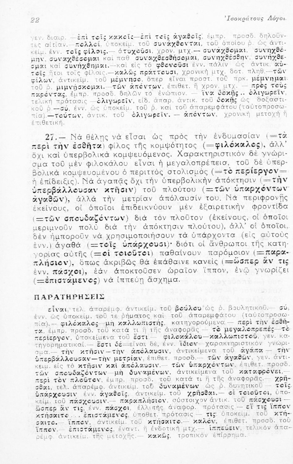 Μαθητικό βοήθημα Αρχαίων Ελληνικών για τους μαθητές της Ε΄ Οκταταξίου Γυμνασίου που περιλαμβάνει τους Λόγους του Ισοκράτη Προς Δημόνικον και Προς Νικοκλέα, μετάφραση, γραμματικά και συντακτικά σχόλια και ...