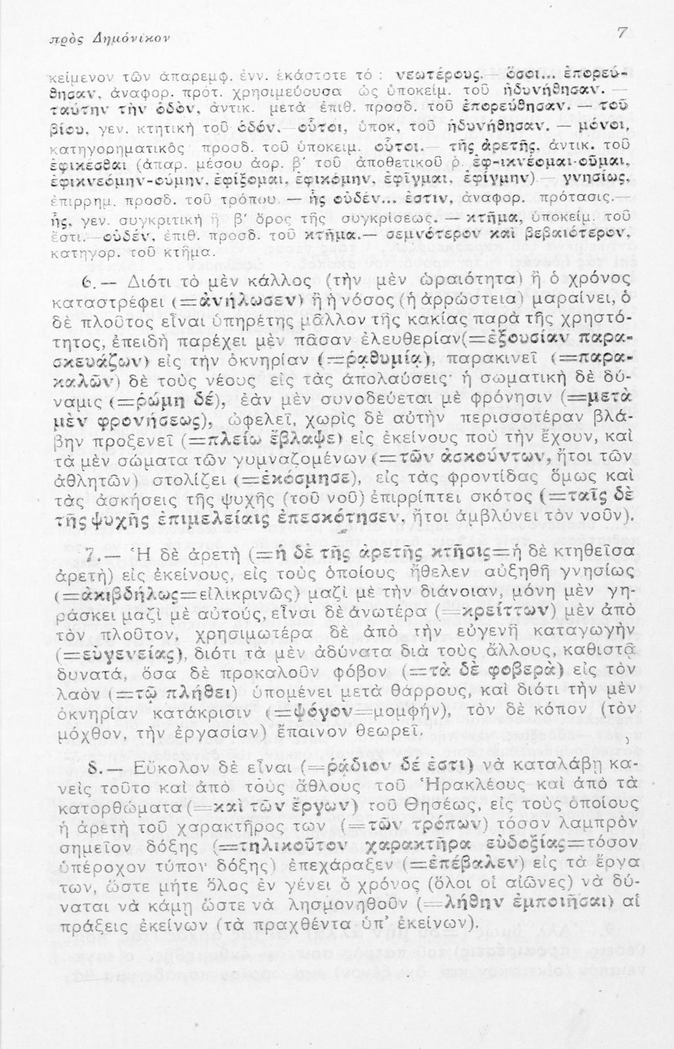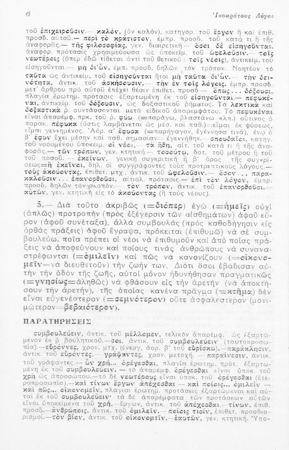 Μαθητικό βοήθημα Αρχαίων Ελληνικών Ε' Γυμνασίου που περιλαμβάνει μετάφραση των Λόγων του Ισοκράτη Προς Δημόνικον, Προς Νικοκλέα και Ευαγόρας, ερμηνευτικά, γραμματικά και συντακτικά σχόλια.