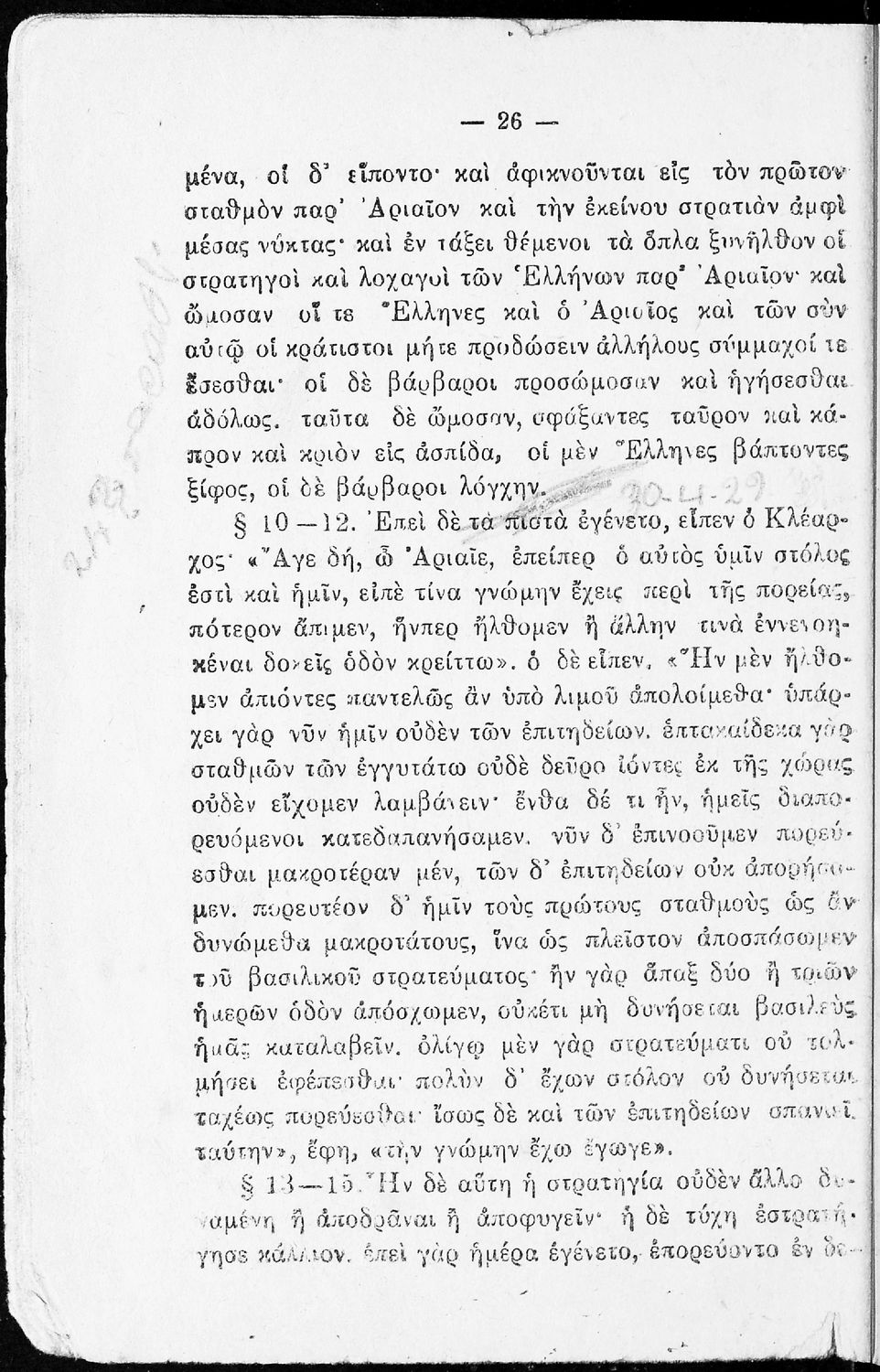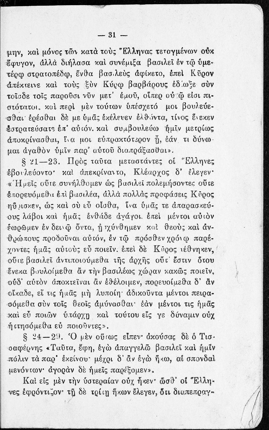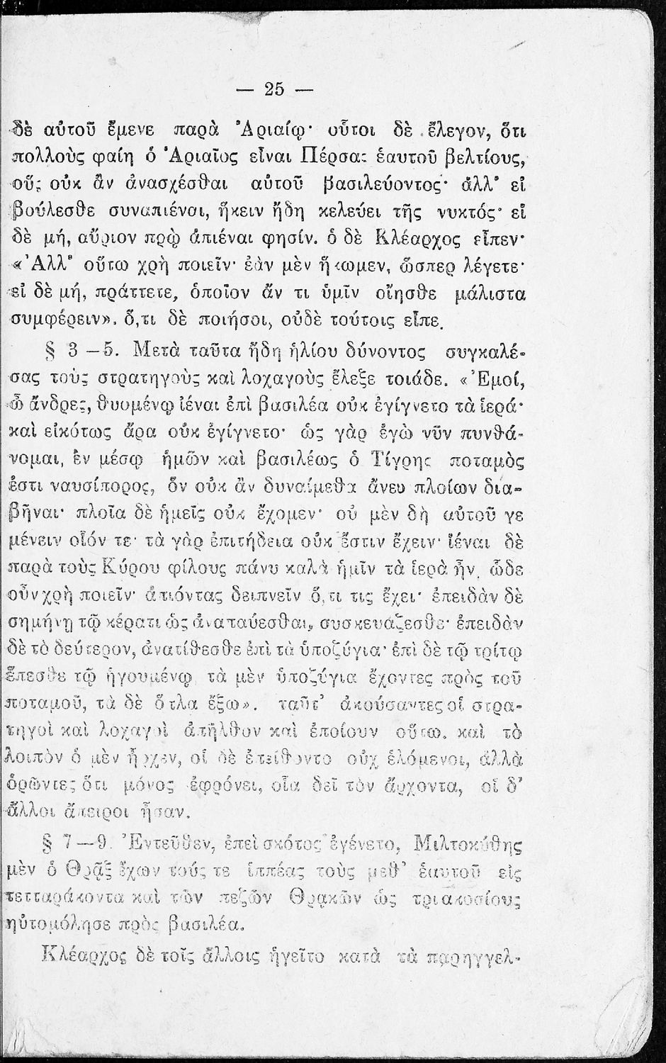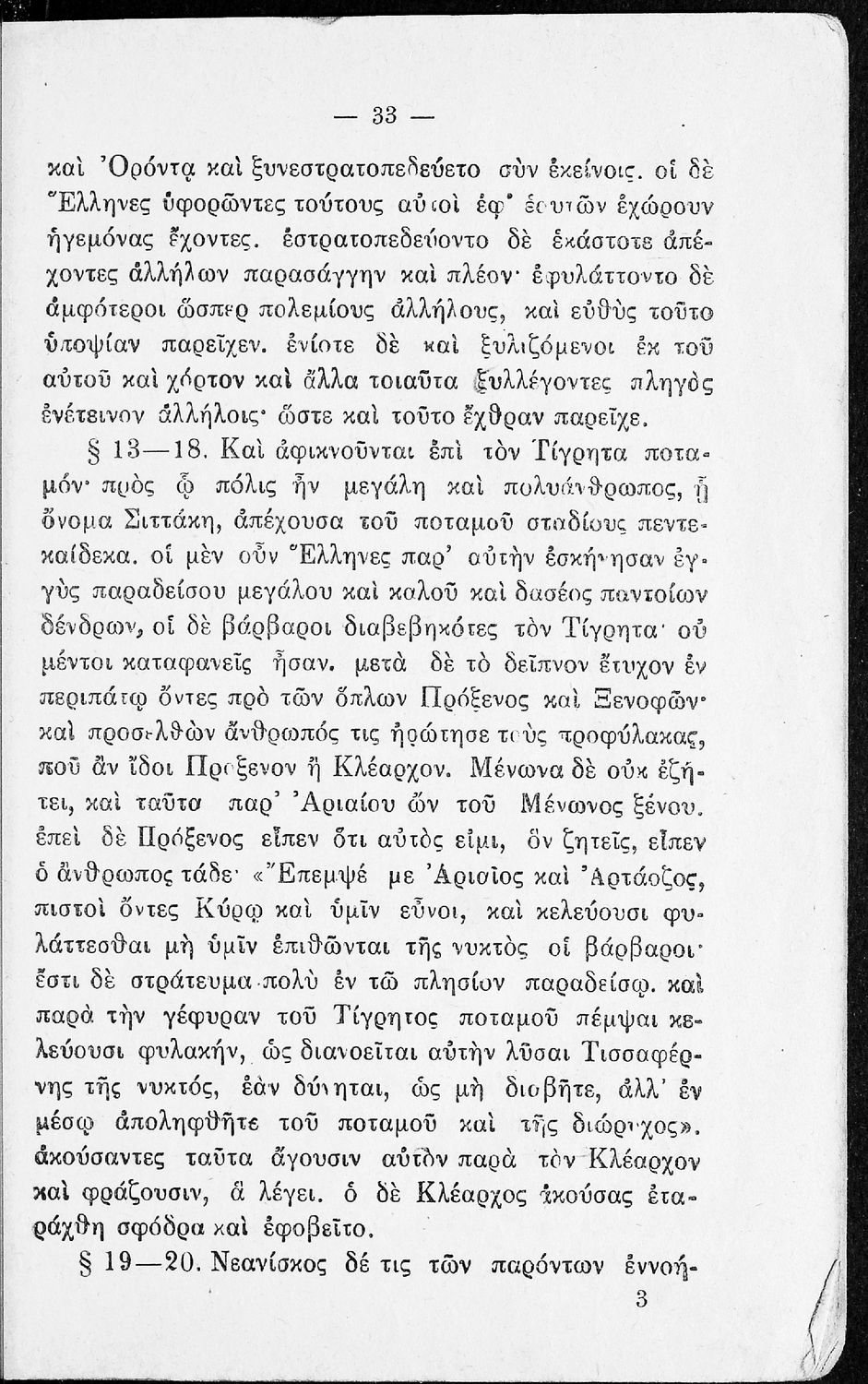 Σχολικό εγχειρίδιο της Β΄ Γυμνασίου για το μάθημα των Αρχαίων. Ήταν εγκεκριμένο για τη δεκαετία 1927-1937. Περιλαμβάνει το έργο του Ξενοφώντα Κύρου Ανάβασις και ερμηνευτικές και λεξιλογικές παρατηρήσεις.