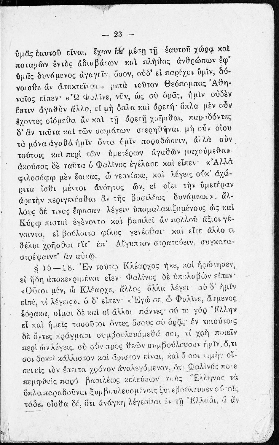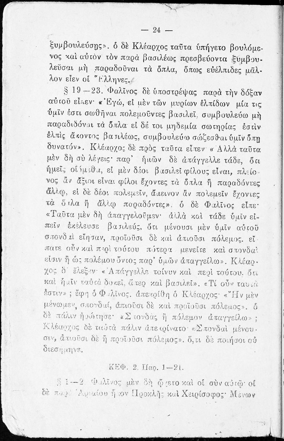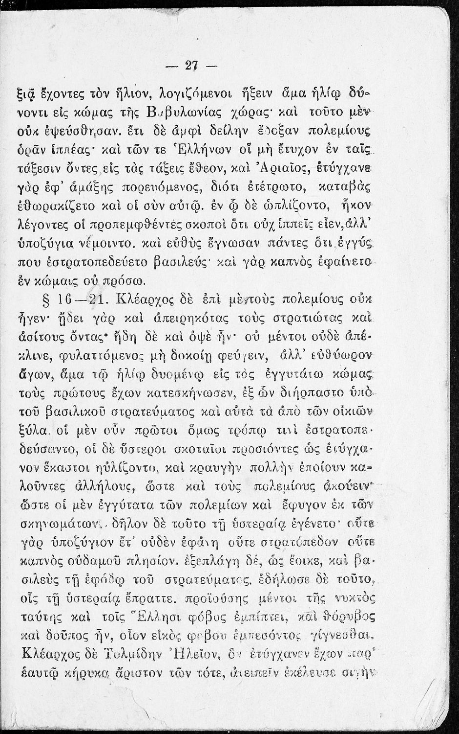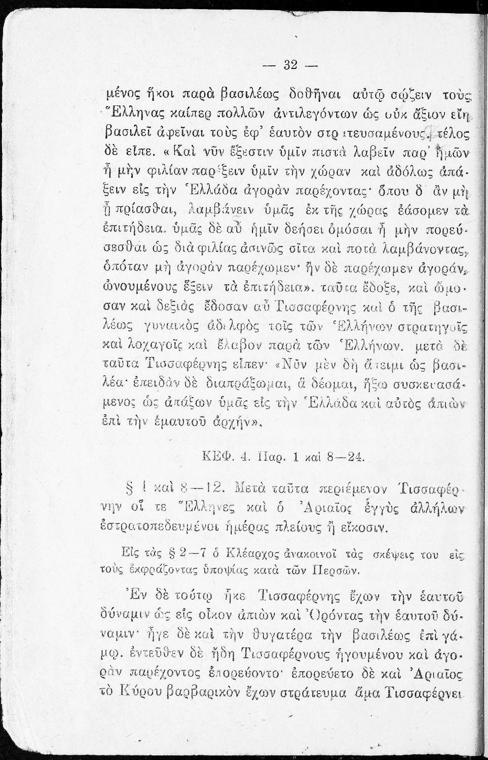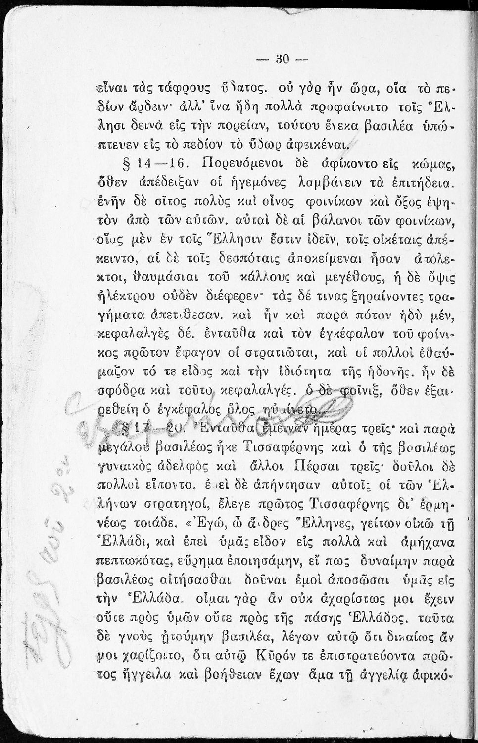 Σχολικό εγχειρίδιο της Β΄ Γυμνασίου για το μάθημα των Αρχαίων. Ήταν εγκεκριμένο για τη δεκαετία 1927-1937. Περιλαμβάνει το έργο του Ξενοφώντα Κύρου Ανάβασις και ερμηνευτικές και λεξιλογικές παρατηρήσεις.