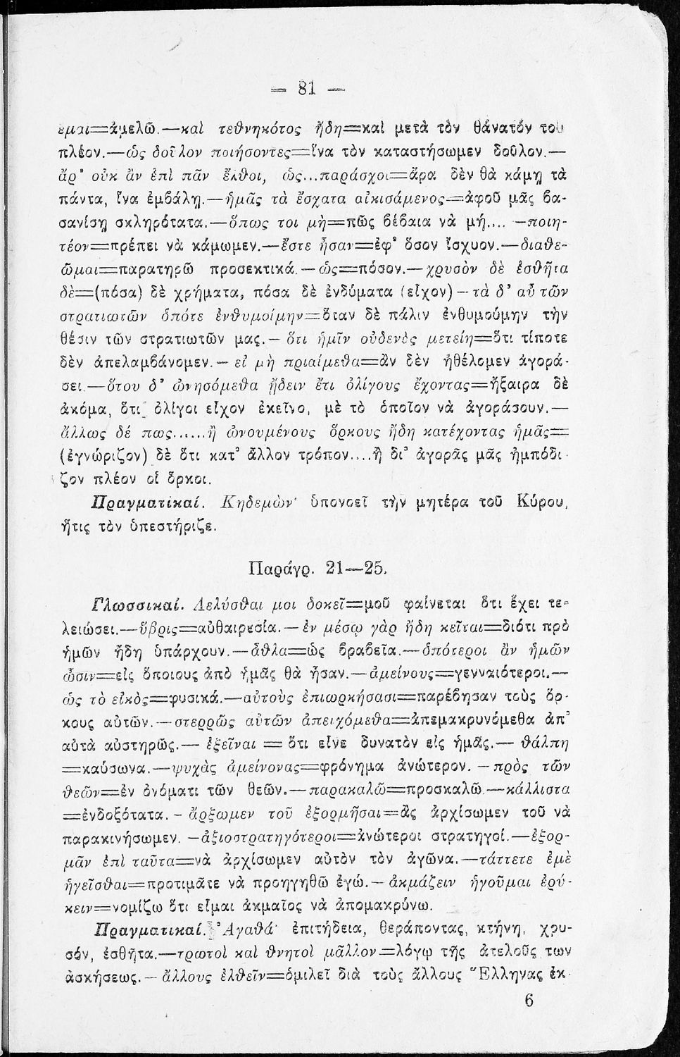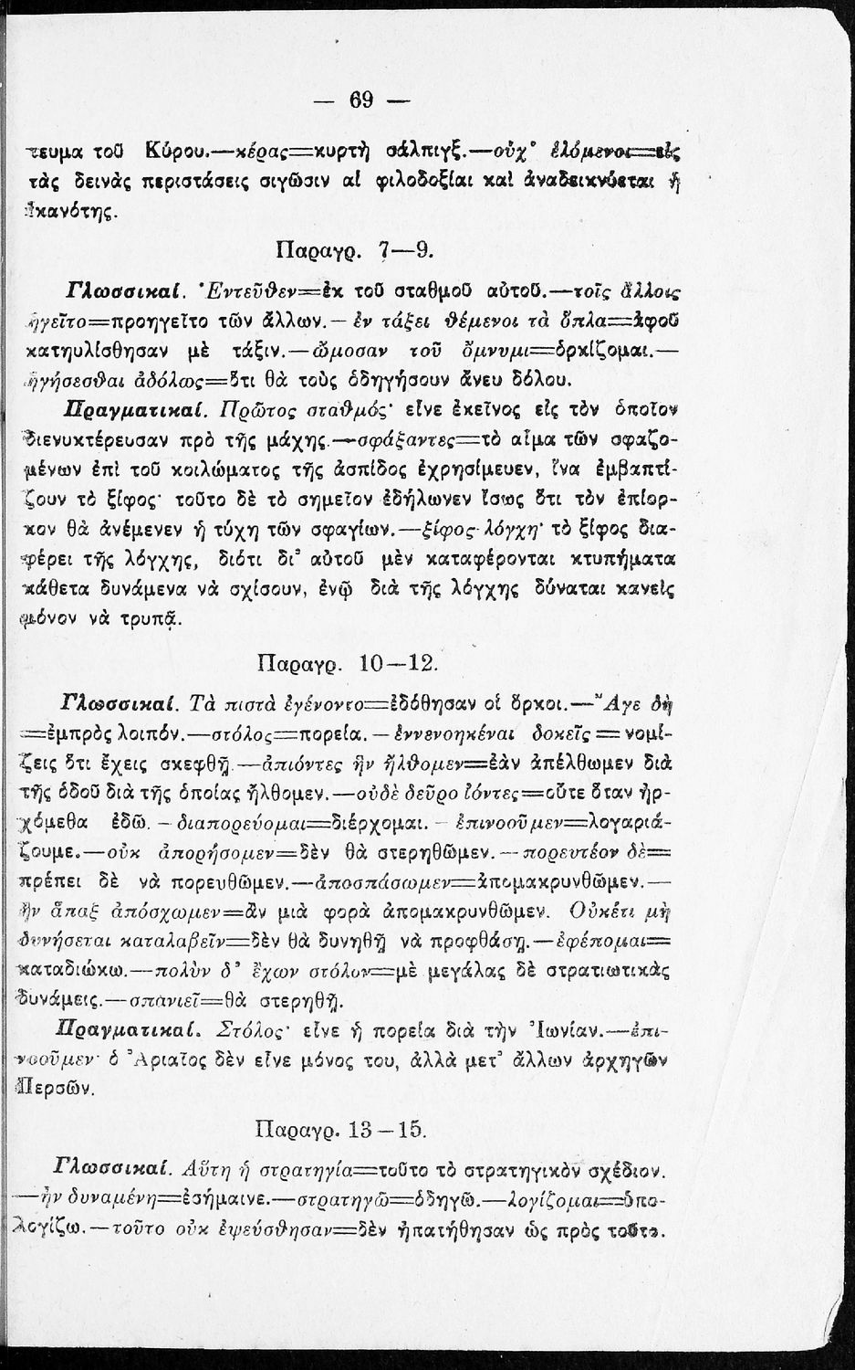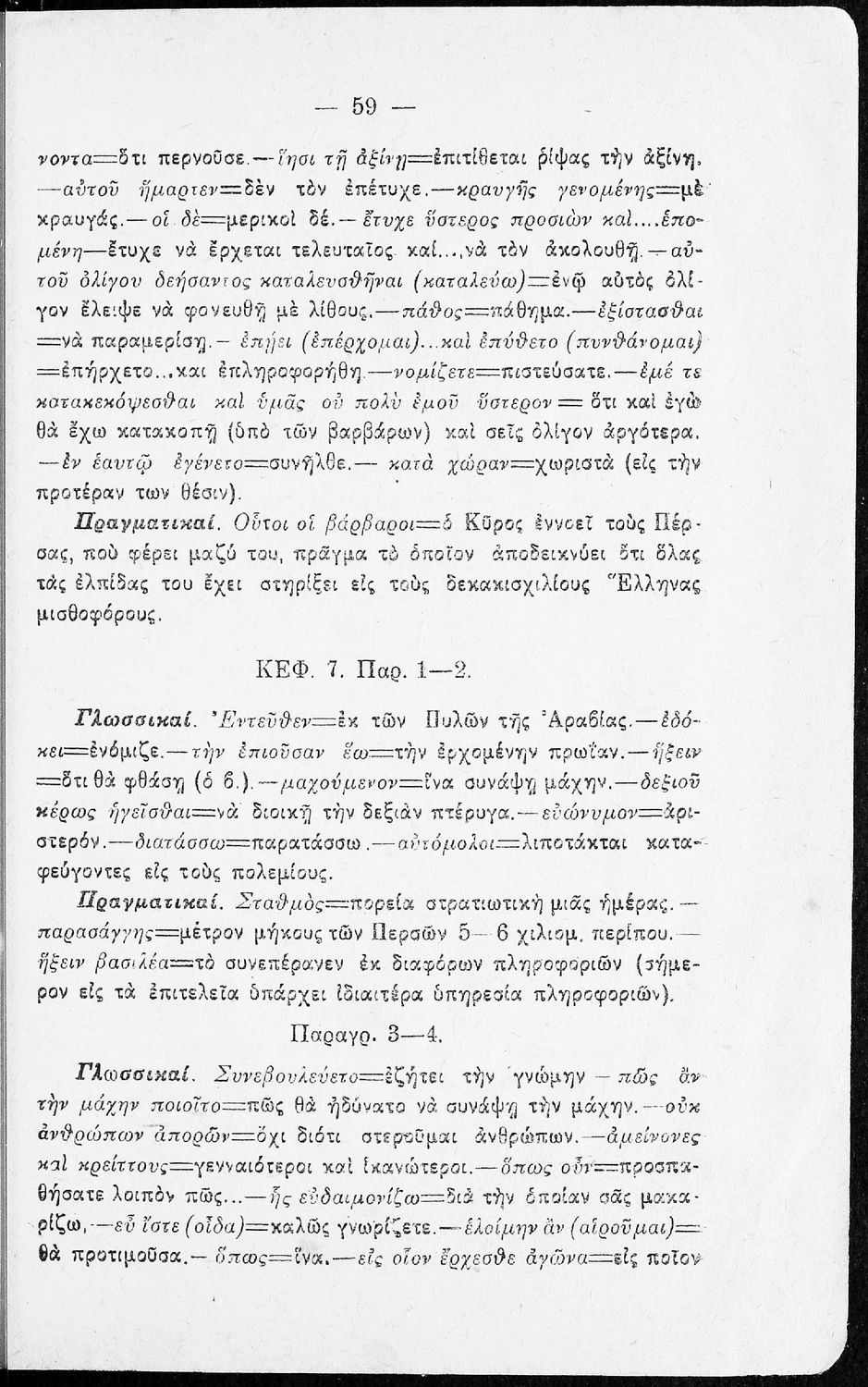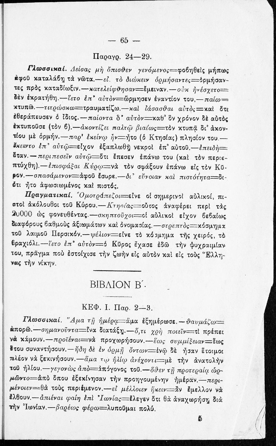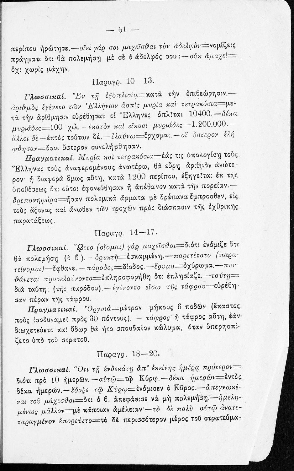 Σχολικό εγχειρίδιο της Β΄ Γυμνασίου για το μάθημα των Αρχαίων. Ήταν εγκεκριμένο για τη δεκαετία 1927-1937. Περιλαμβάνει το έργο του Ξενοφώντα Κύρου Ανάβασις και ερμηνευτικές και λεξιλογικές παρατηρήσεις.