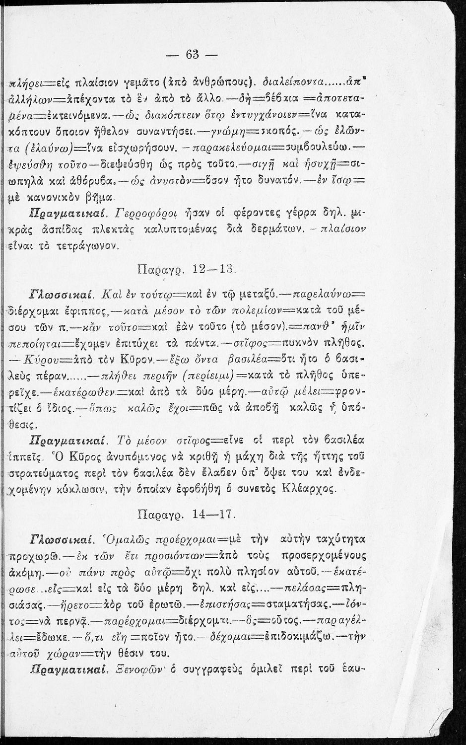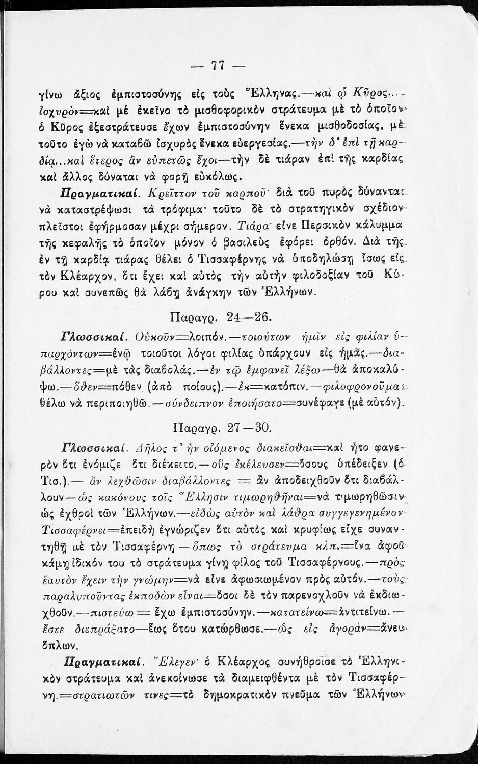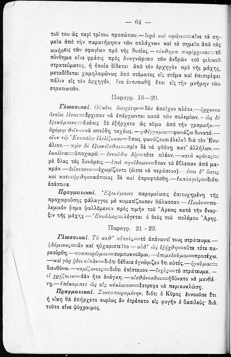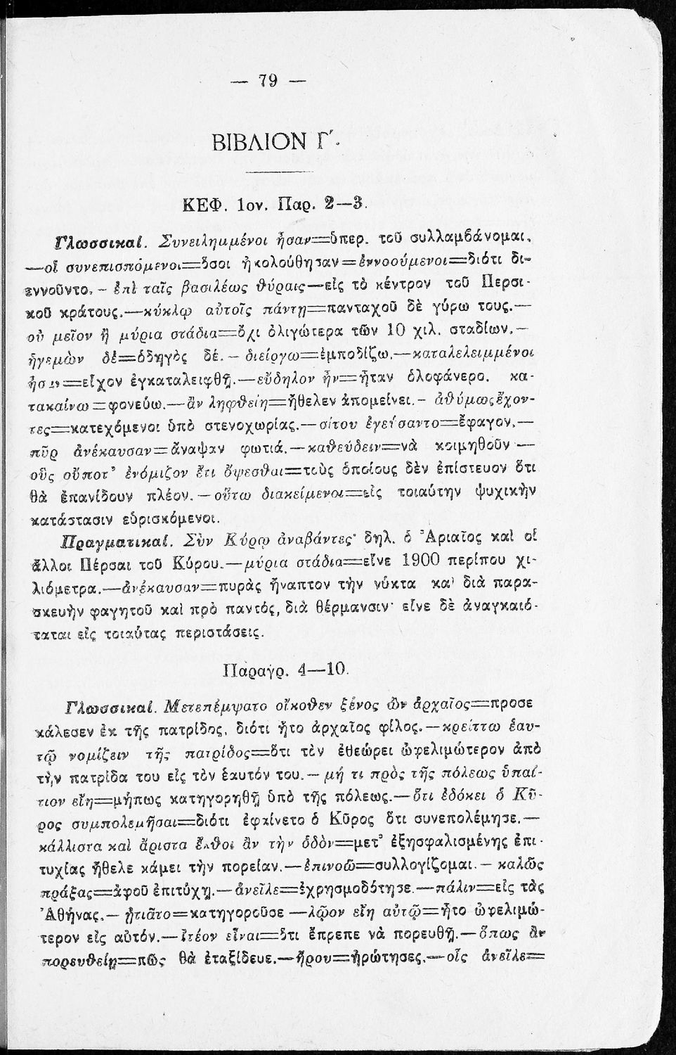 Σχολικό εγχειρίδιο της Β΄ Γυμνασίου για το μάθημα των Αρχαίων. Ήταν εγκεκριμένο για τη δεκαετία 1927-1937. Περιλαμβάνει το έργο του Ξενοφώντα Κύρου Ανάβασις και ερμηνευτικές και λεξιλογικές παρατηρήσεις.