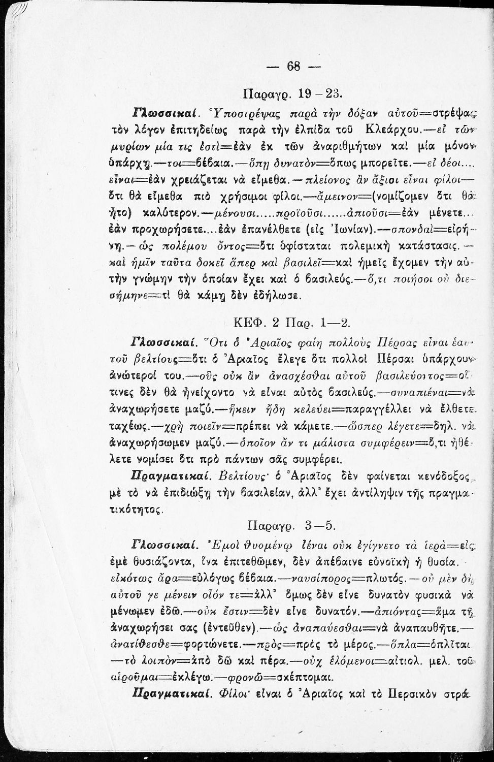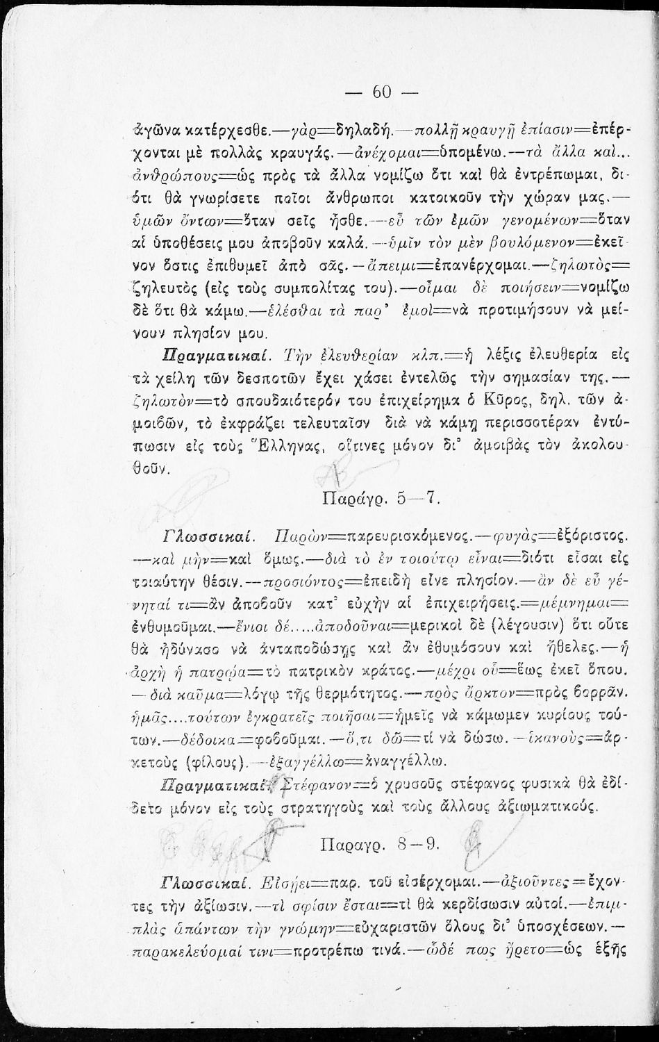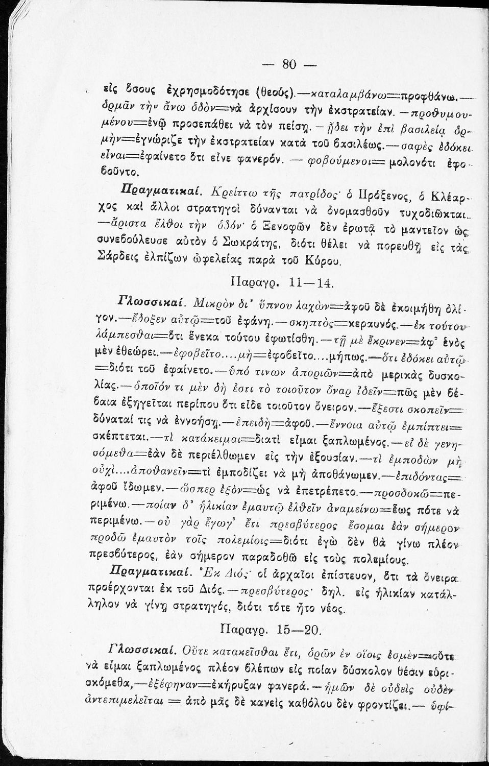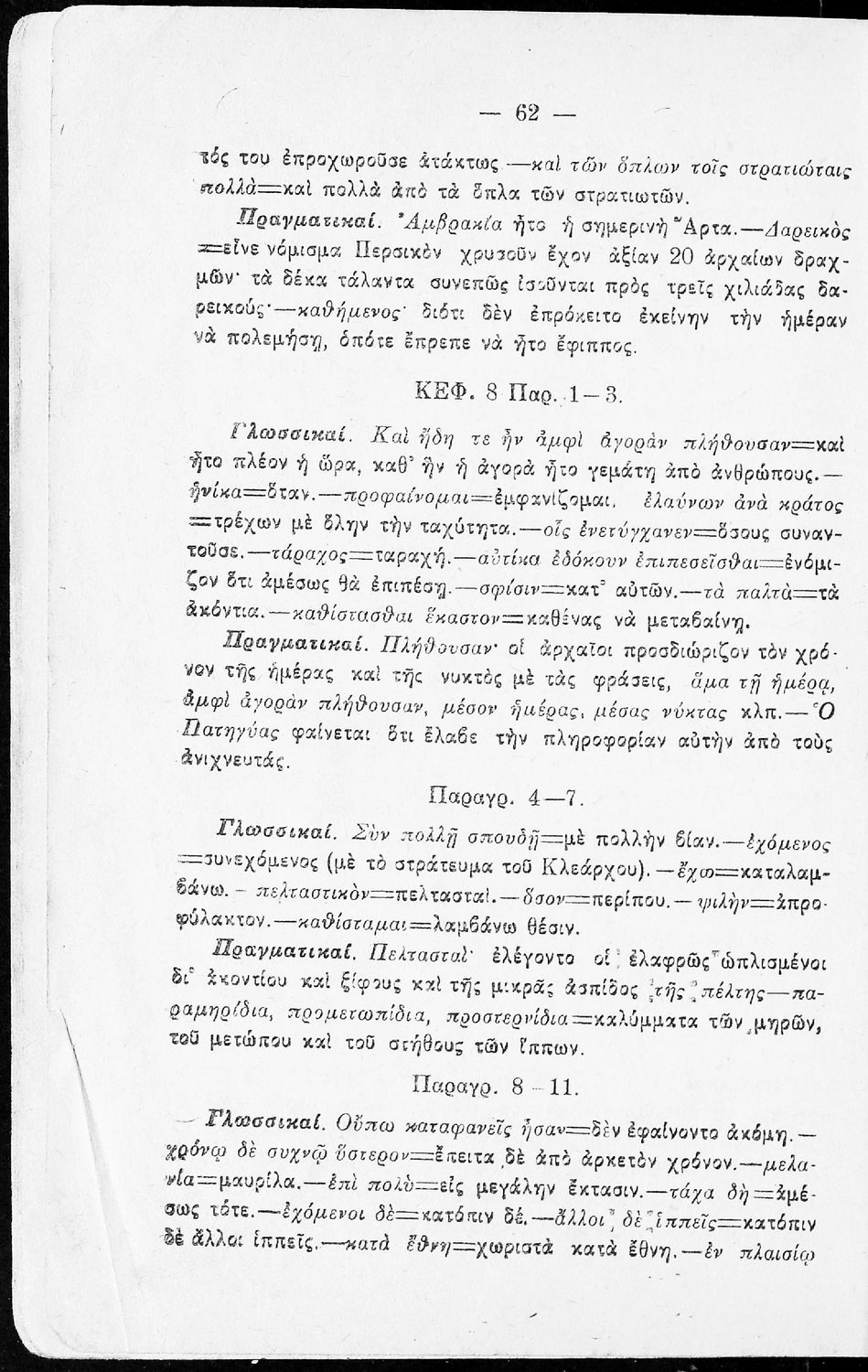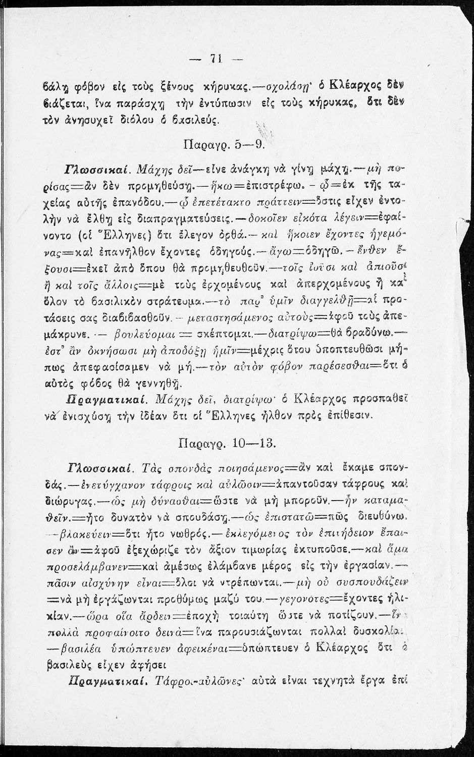 Σχολικό εγχειρίδιο της Β΄ Γυμνασίου για το μάθημα των Αρχαίων. Ήταν εγκεκριμένο για τη δεκαετία 1927-1937. Περιλαμβάνει το έργο του Ξενοφώντα Κύρου Ανάβασις και ερμηνευτικές και λεξιλογικές παρατηρήσεις.