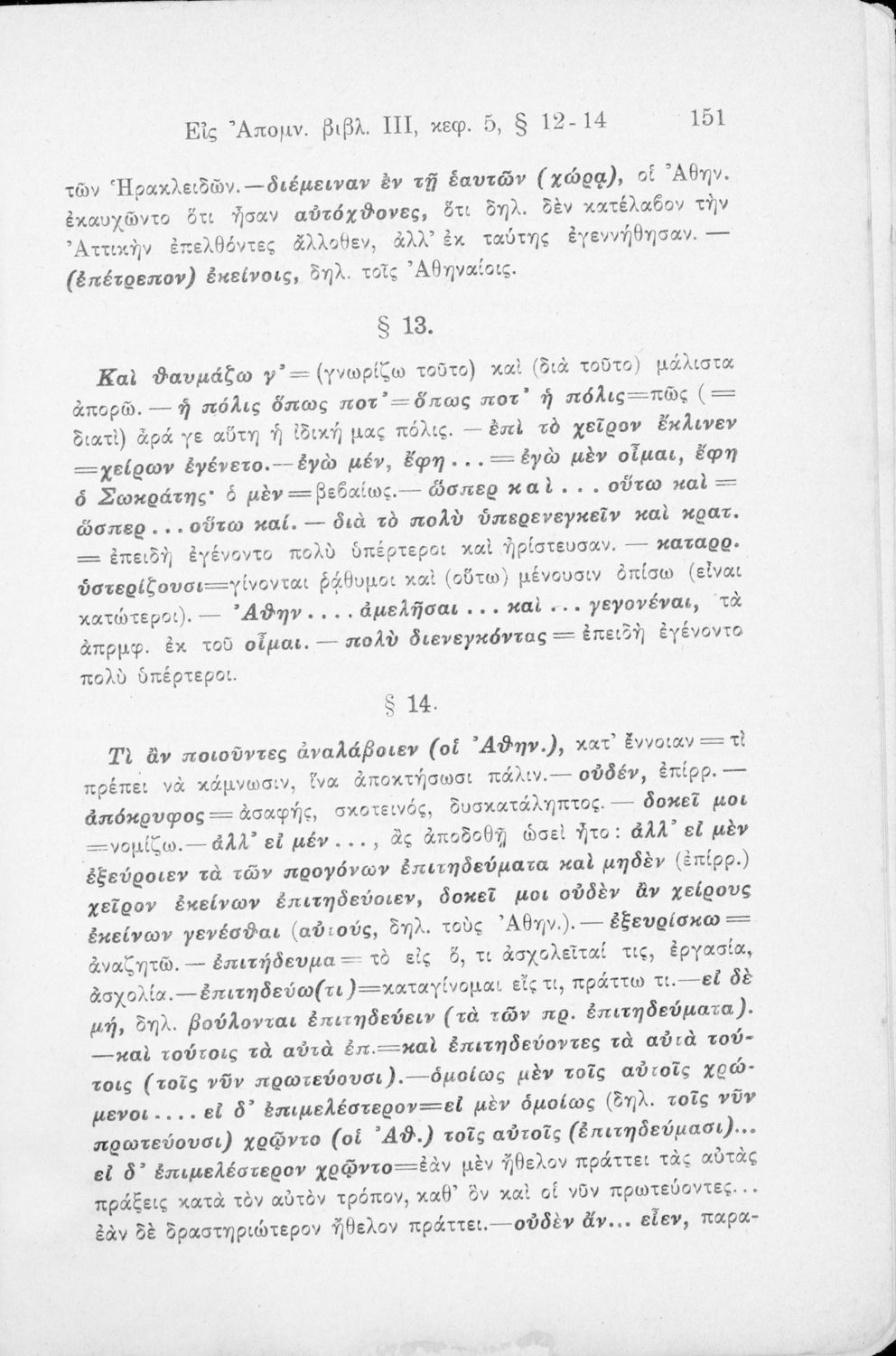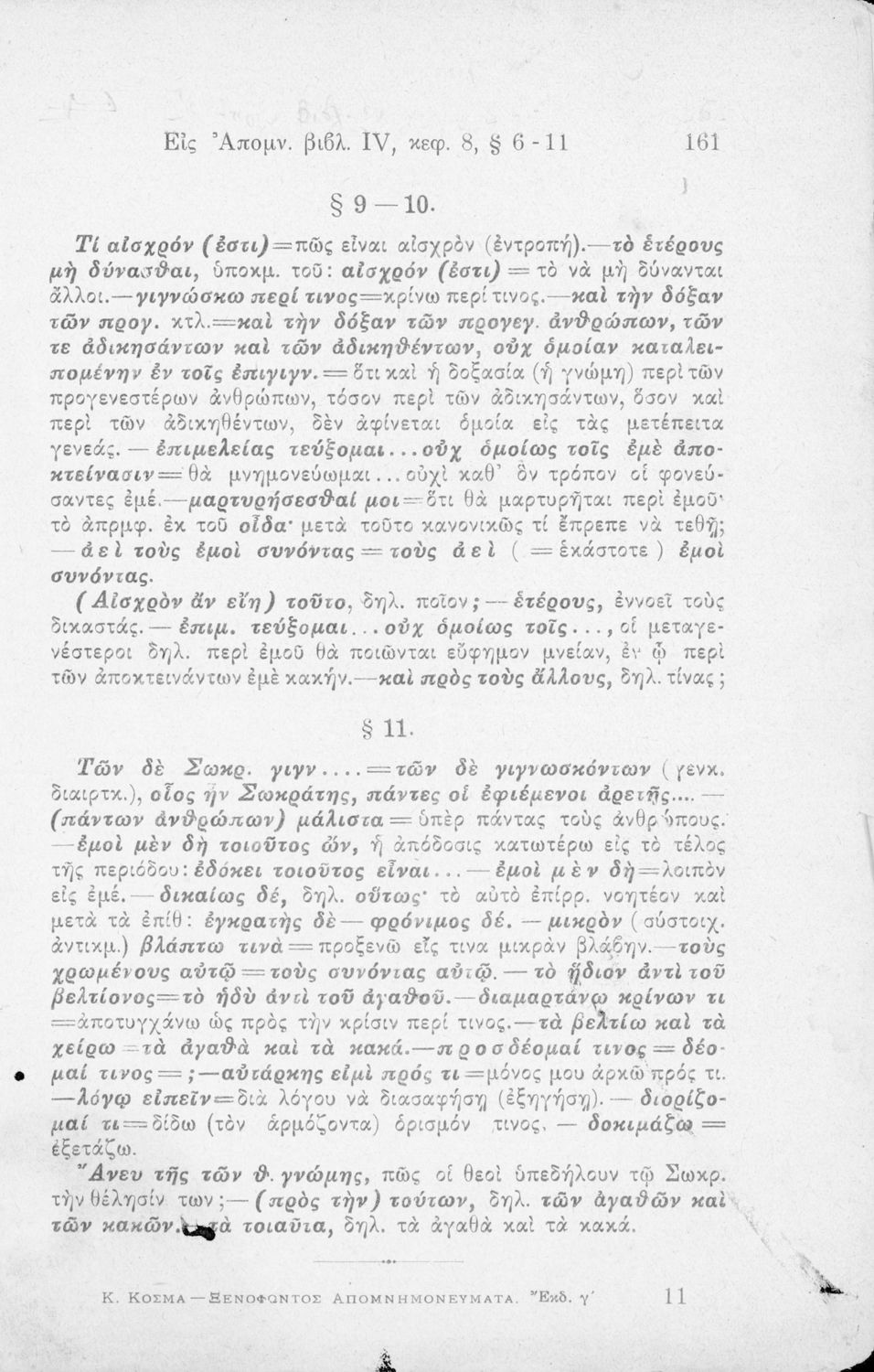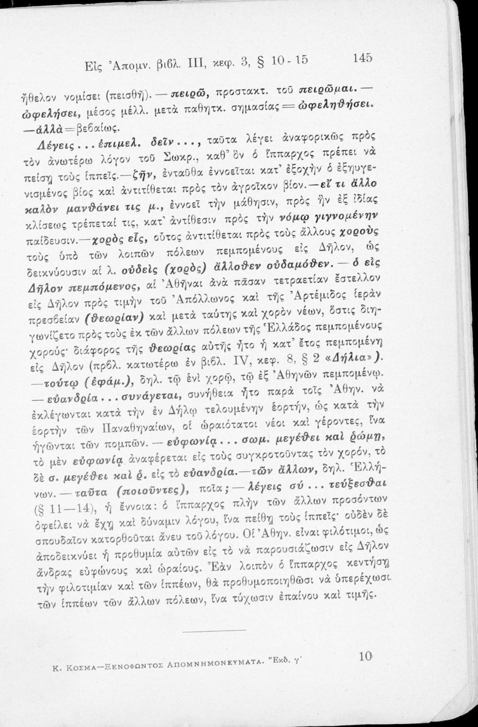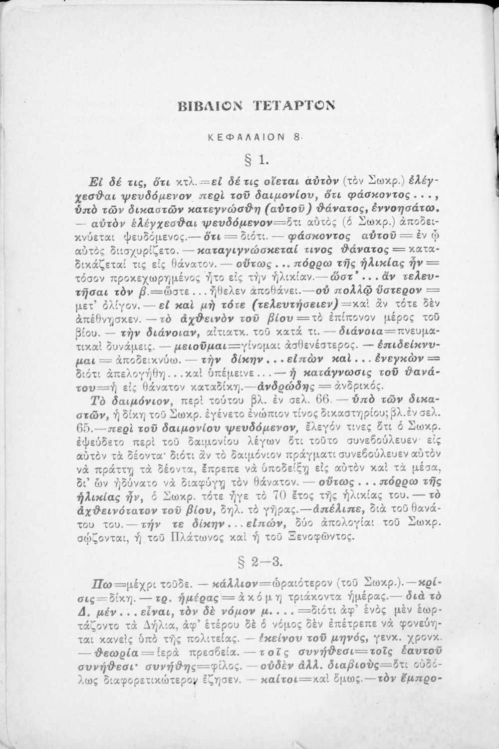 Σχολικό εγχειρίδιο της Β΄ Γυμνασίου για το μάθημα των Αρχαίων Ελληνικών. Περιλαμβάνει αποσπάσματα από τα Απομνημονεύματα του Ξενοφώντα και πραγματολογικές παρατηρήσεις. Ο συγγραφέας ήταν διδάκτωρ Φιλολογίας και Καθηγητής στο Η΄ Γυμνάσιο της Αθήνας.