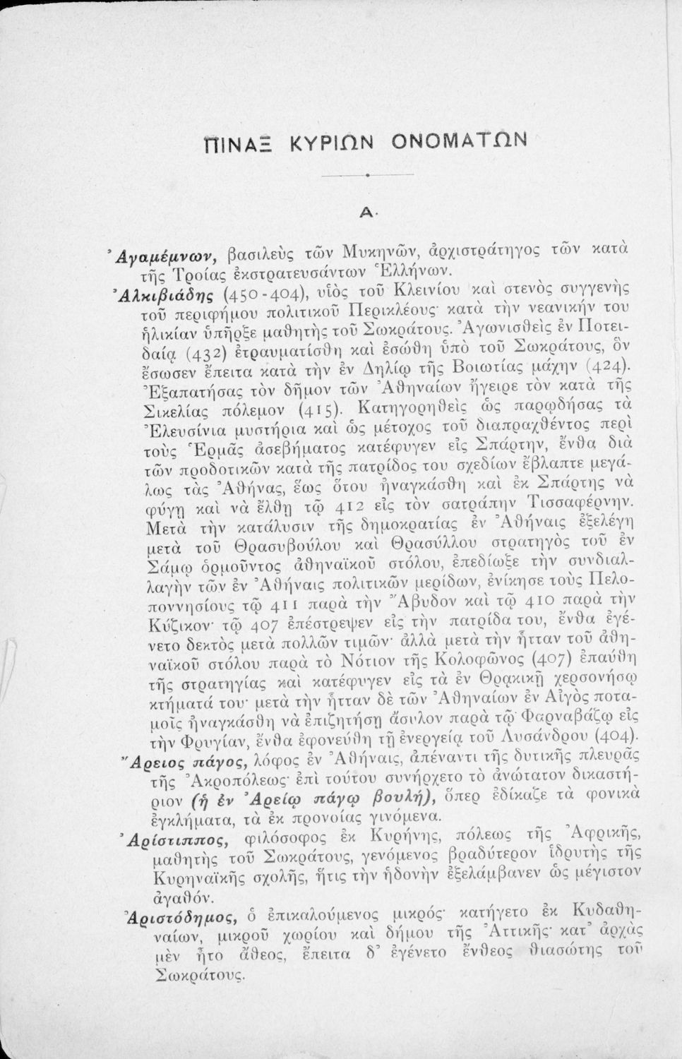 Σχολικό εγχειρίδιο Αρχαίων Ελληνικών για τις Β΄ και Γ΄ Γυμνασίου που περιλαμβάνει σύντομο βιογραφικό σημείωμα του Θουκυδίδη, εισαγωγικά σχόλια στο έργο, κείμενο και ετυμολογικό λεξιλόγιο.