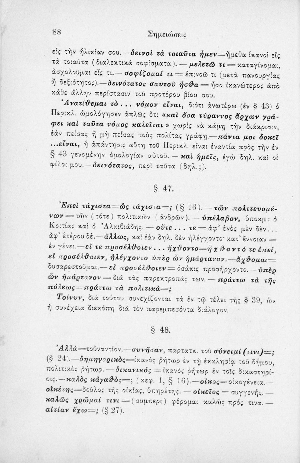 Σχολικό εγχειρίδιο Αρχαίων Ελληνικών Β΄ και Γ΄ Γυμνασίου που περιέχει αποσπάσματα από το έργο του Θουκυδίδη Ιστορία, και ερμηνευτικές και πραγματολογικές παρατηρήσεις.