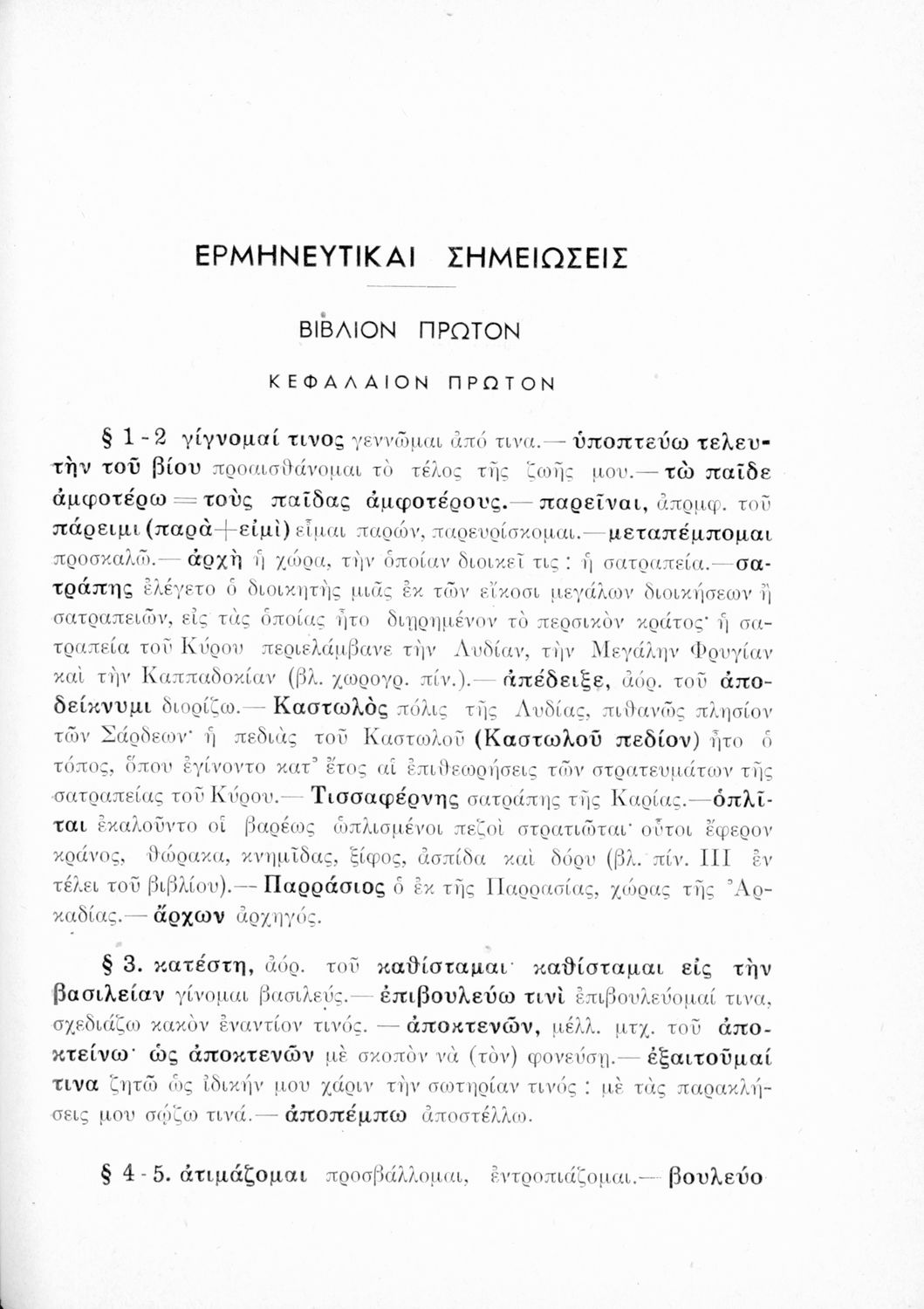 Το σύγγραμμα ήταν σχολικό εγχειρίδιο για το μάθημα των Αρχαίων Ελληνικών στο Γυμνάσιο. Περιλαμβάνει το πρωτότυπο κείμενο από το έργο του Ξενοφώντα, καθώς και ερμηνευτικές και λεξιλογικές παρατηρήσεις του ...