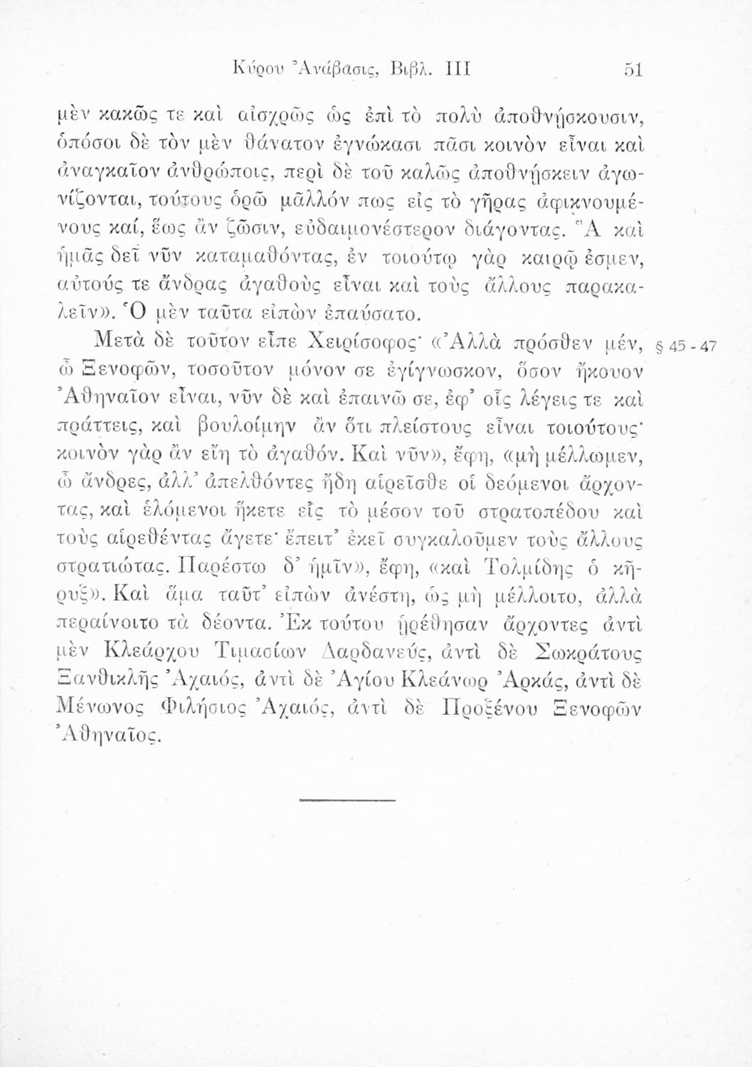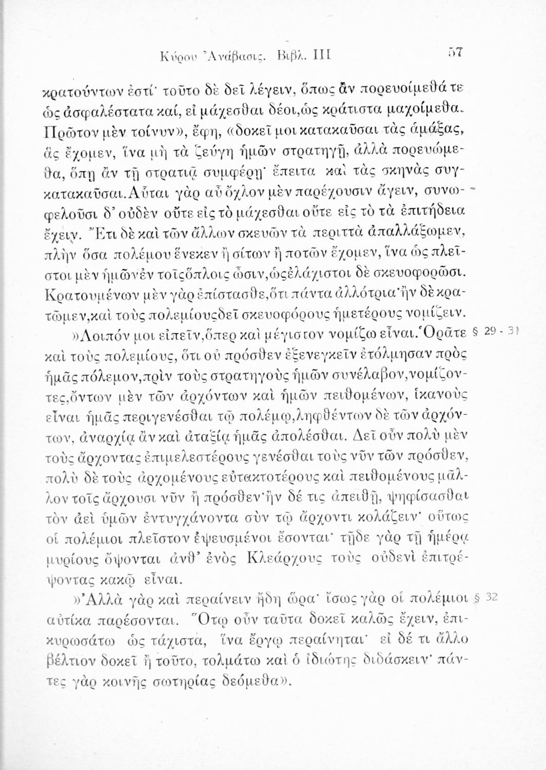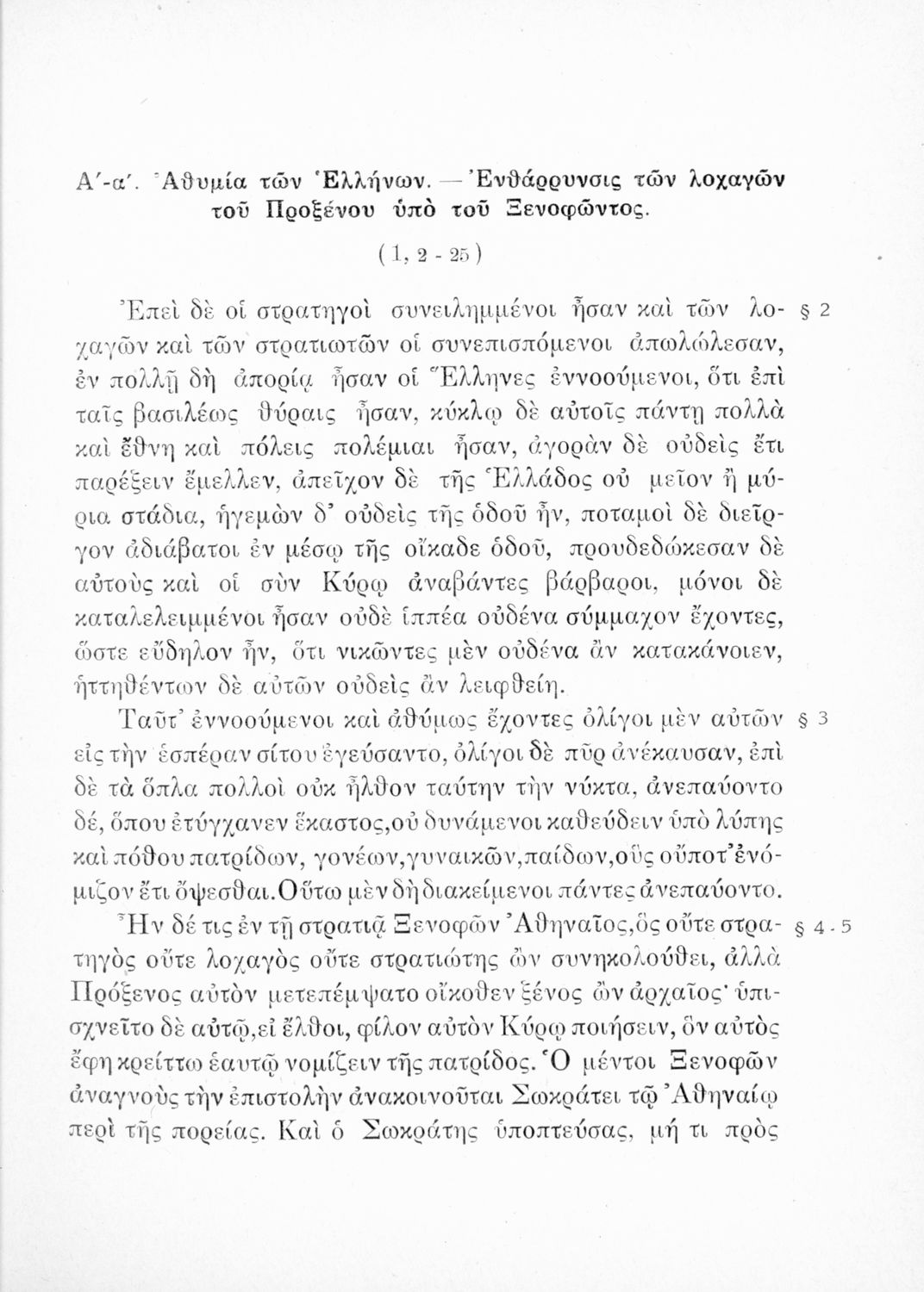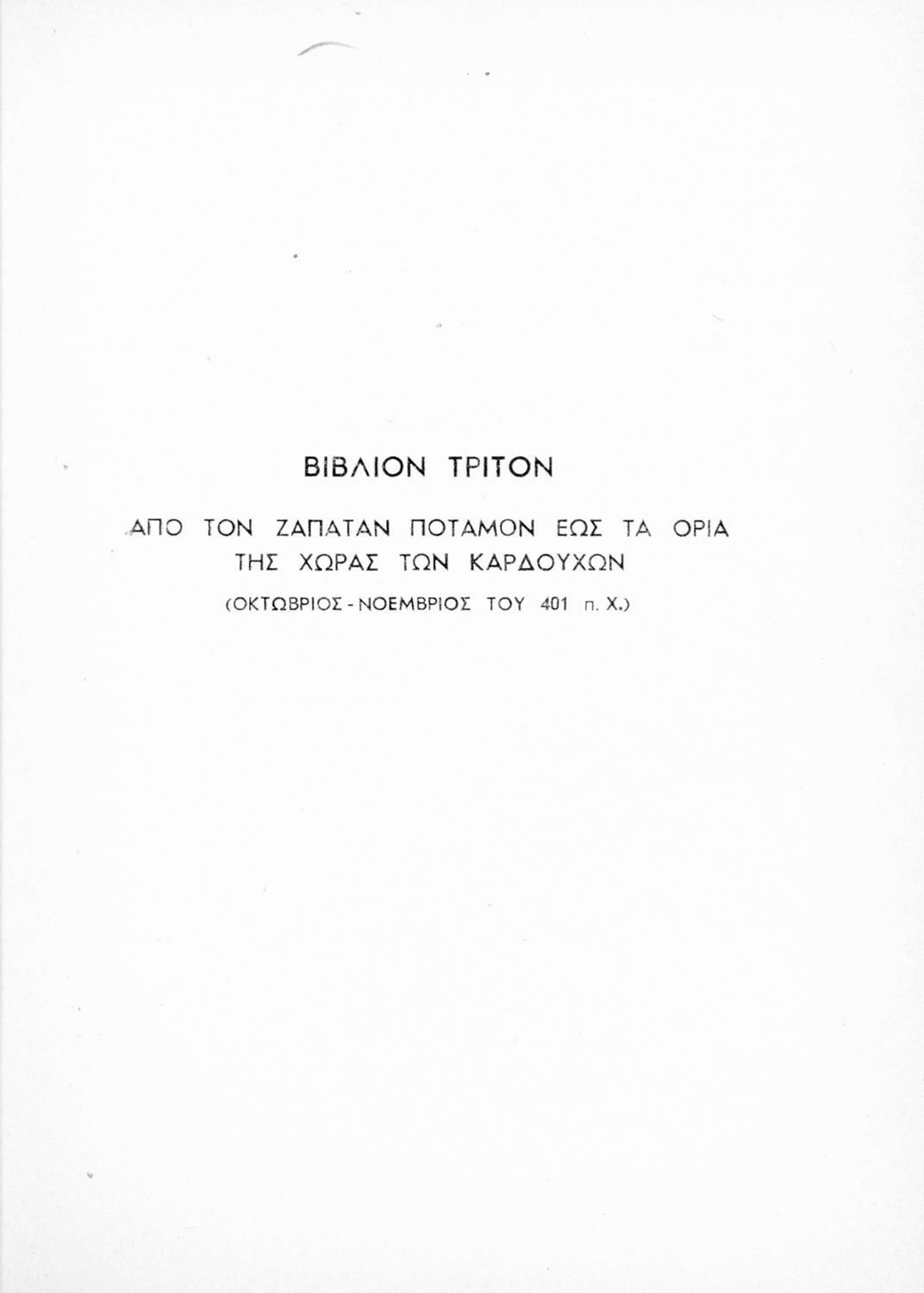 Σχολικό εγχειρίδιο της Γ' Ελληνικού Σχολείου και Αστικών Σχολείων για το μάθημα των Αρχαίων Ελληνικών. Το σύγγραμμα περιλαμβάνει κείμενα κατ΄ επιλογή από τα τέσσερα τελευταία βιβλία του έργου Κύρου Ανάβασις. ...