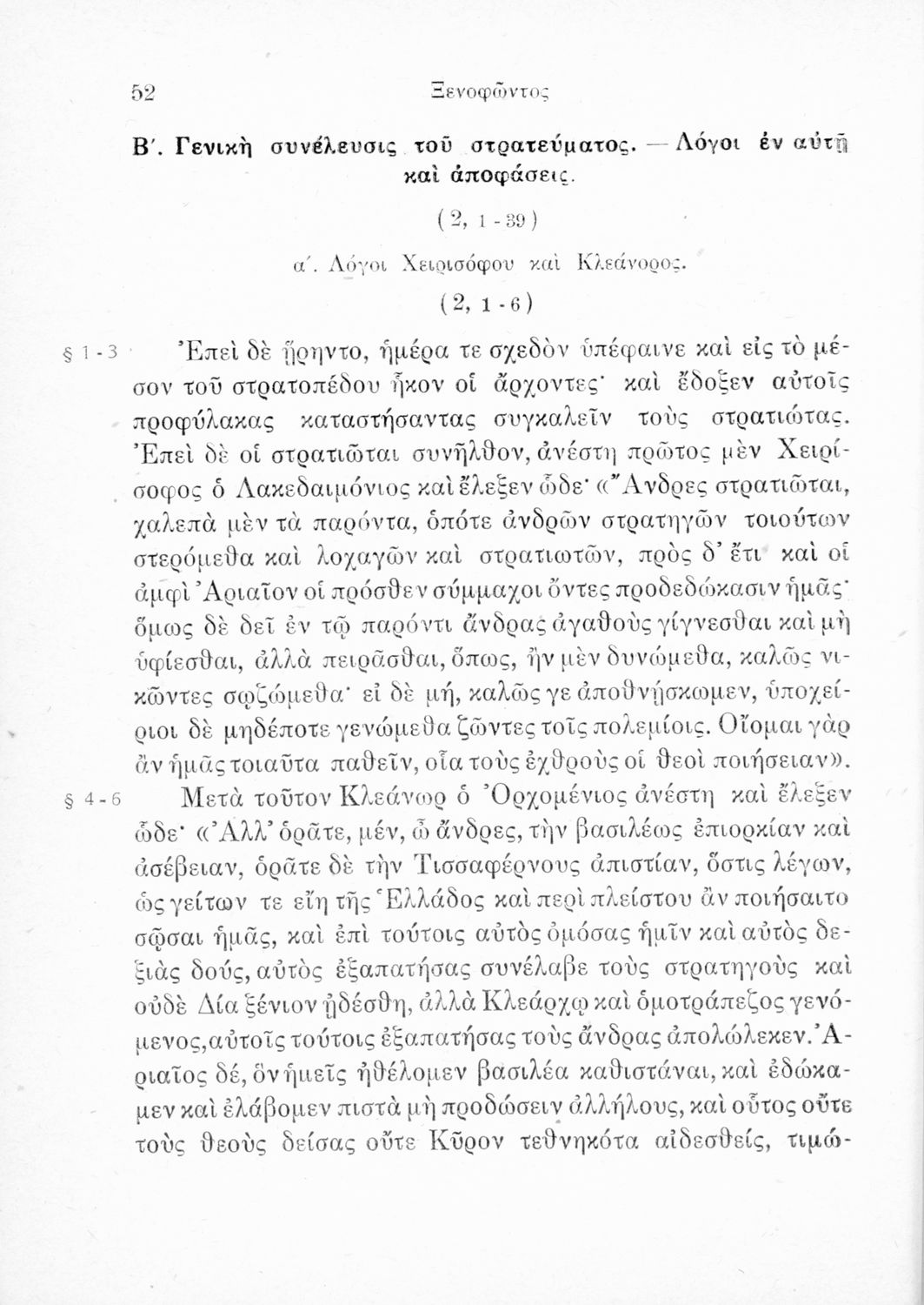 Σχολικό εγχειρίδιο Αρχαίων Ελληνικών για τη Β΄ Γυμνασίου με αποσπάσματα από το έργο του Ξενοφώντα. Το βιβλίο περιέχει ερμηνευτικές σημειώσεις και σχόλια.