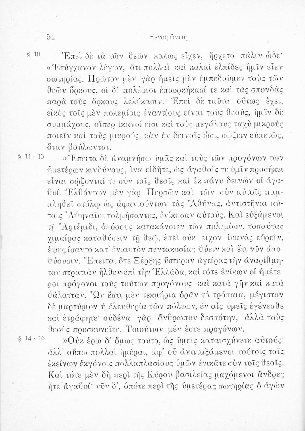 Παρουσίαση περιεχομένου: Σχολικό εγχειρίδιο της Γ΄ Γυμνασίου για το μάθημα των Αρχαίων. Περιέχει αποσπάσματα από το έργο του Ξενοφώντα, ερμηνευτικά και πραγματολογικά σχόλια και λεξιλογικές παρατηρήσεις.