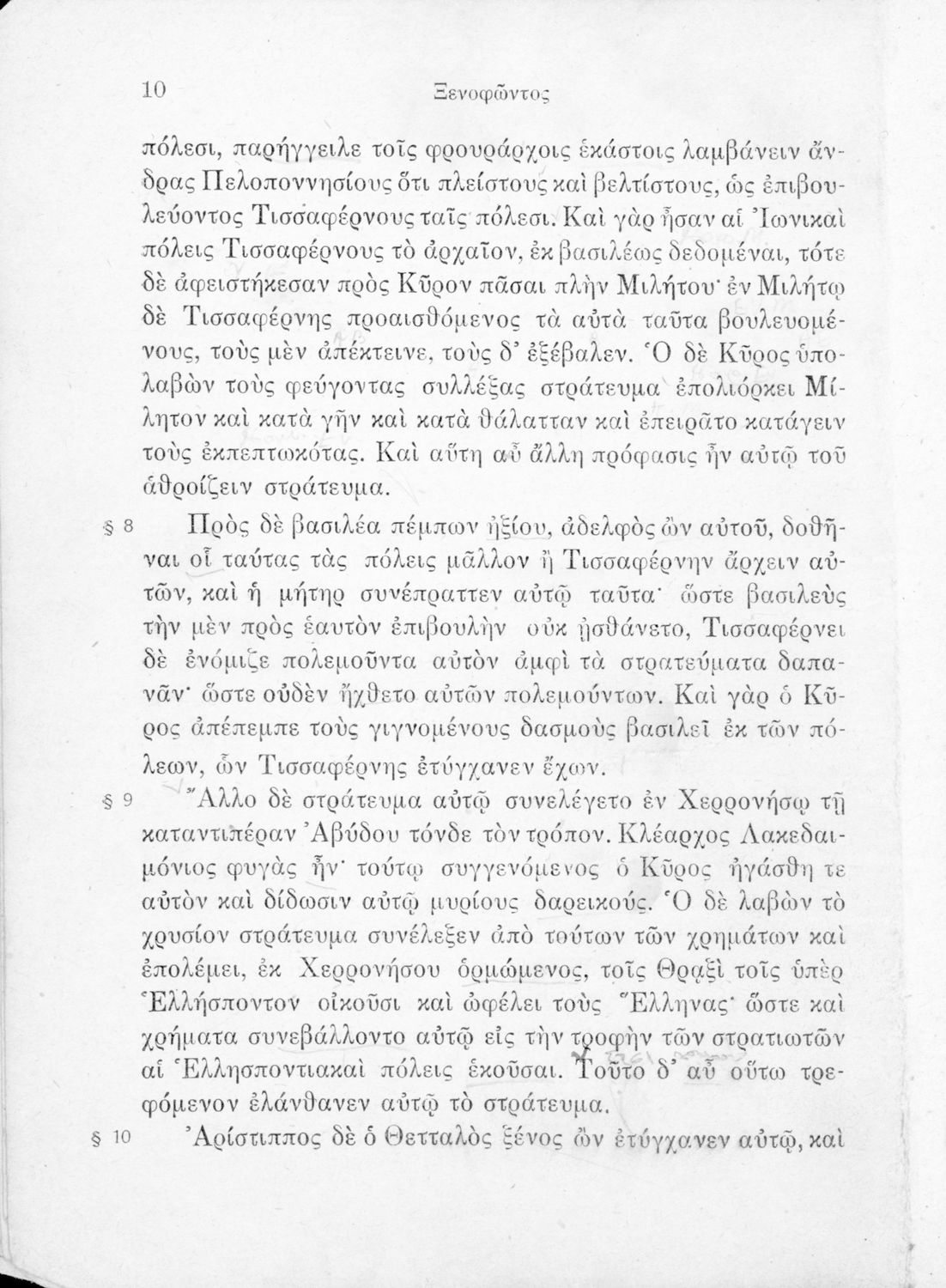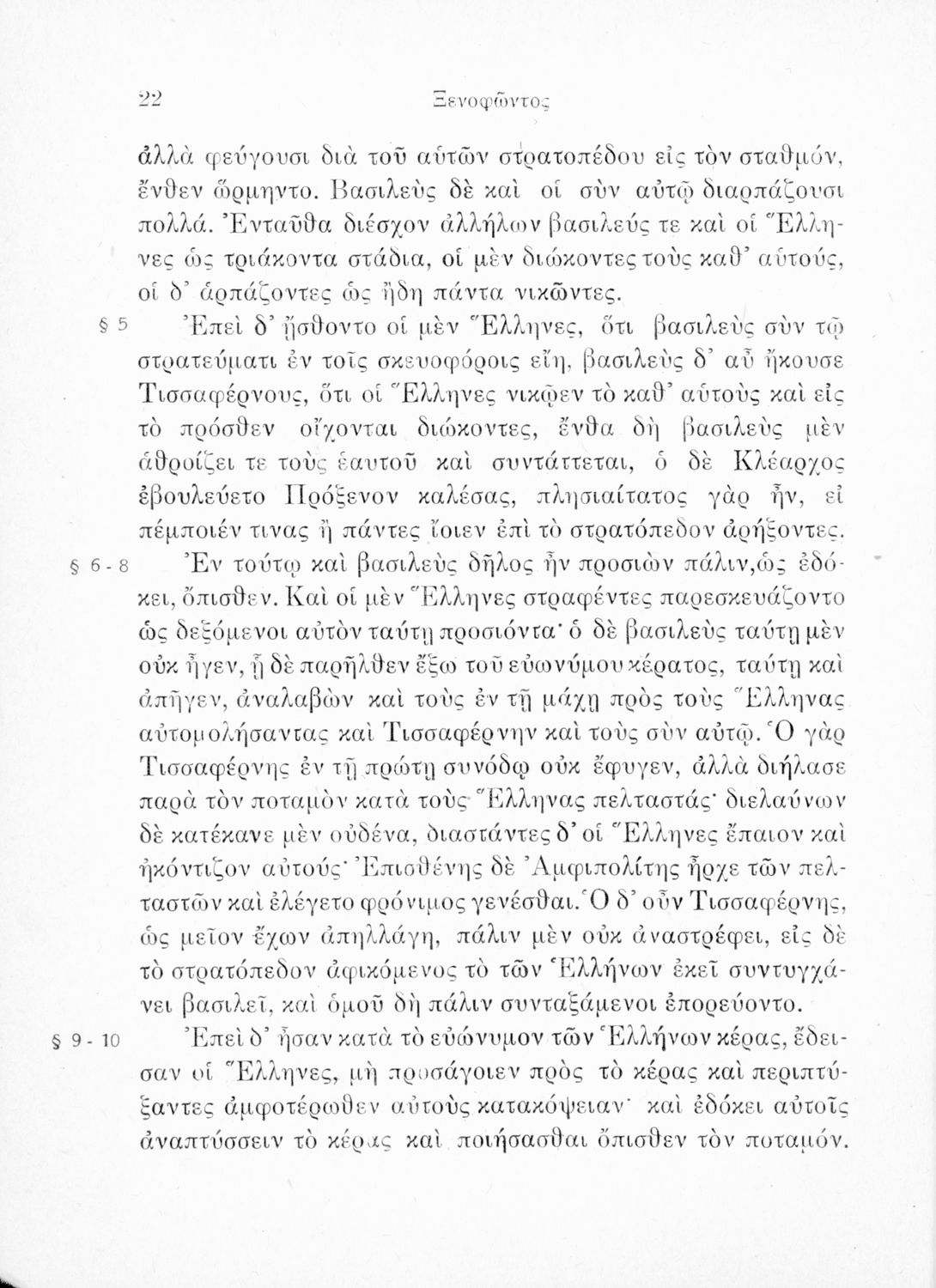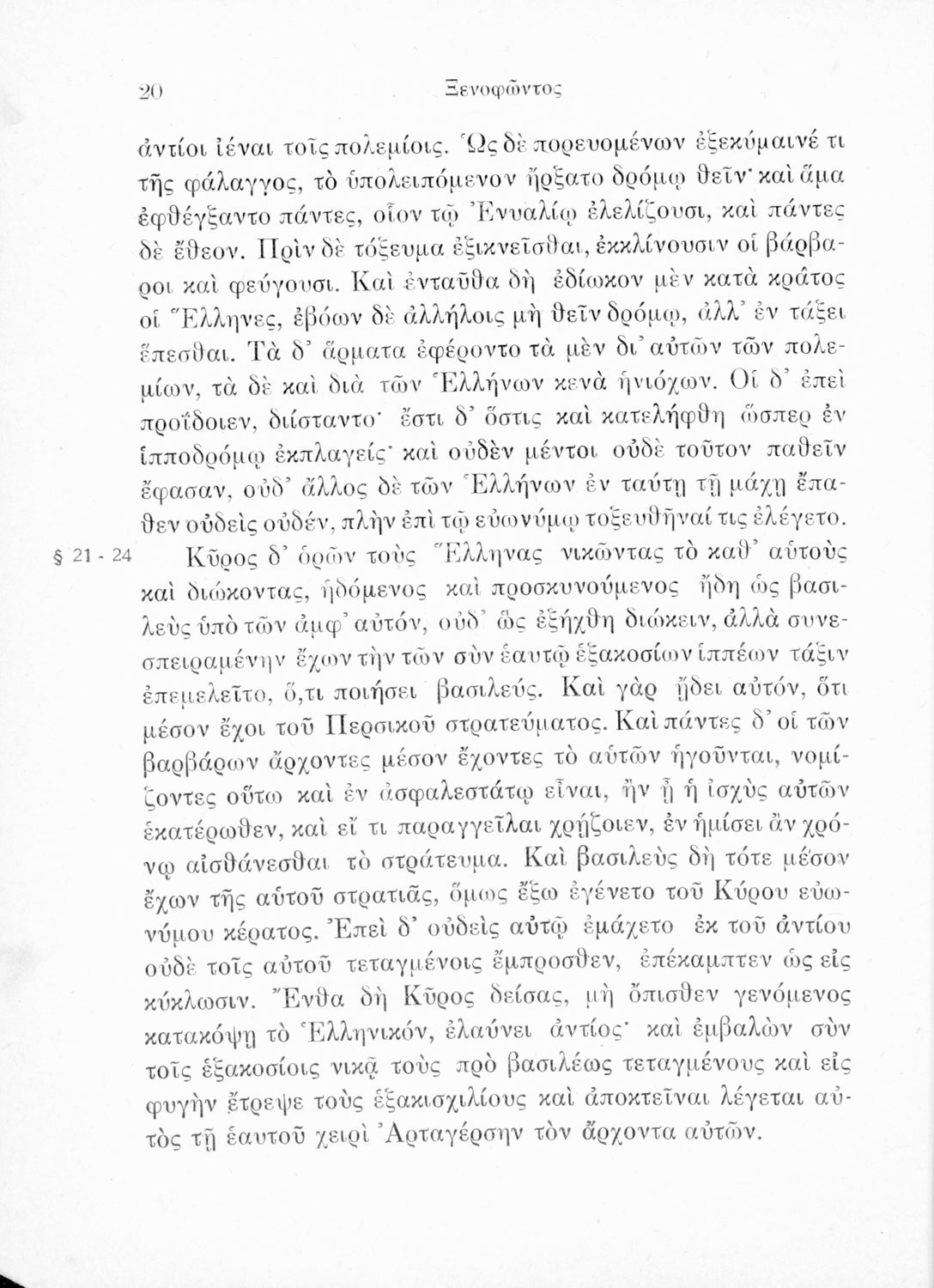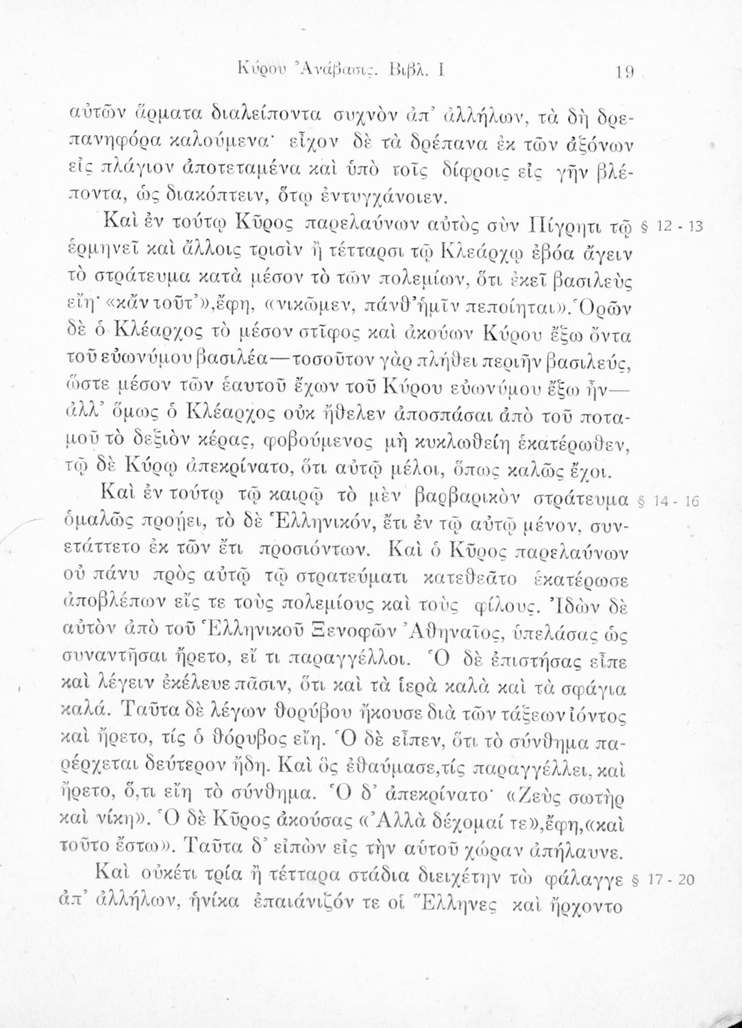 Σχολικό εγχειρίδιο της Γ' Ελληνικού Σχολείου και Αστικών Σχολείων για το μάθημα των Αρχαίων Ελληνικών. Το σύγγραμμα περιλαμβάνει κείμενα κατ΄ επιλογή από τα τέσσερα τελευταία βιβλία του έργου Κύρου Ανάβασις. ...