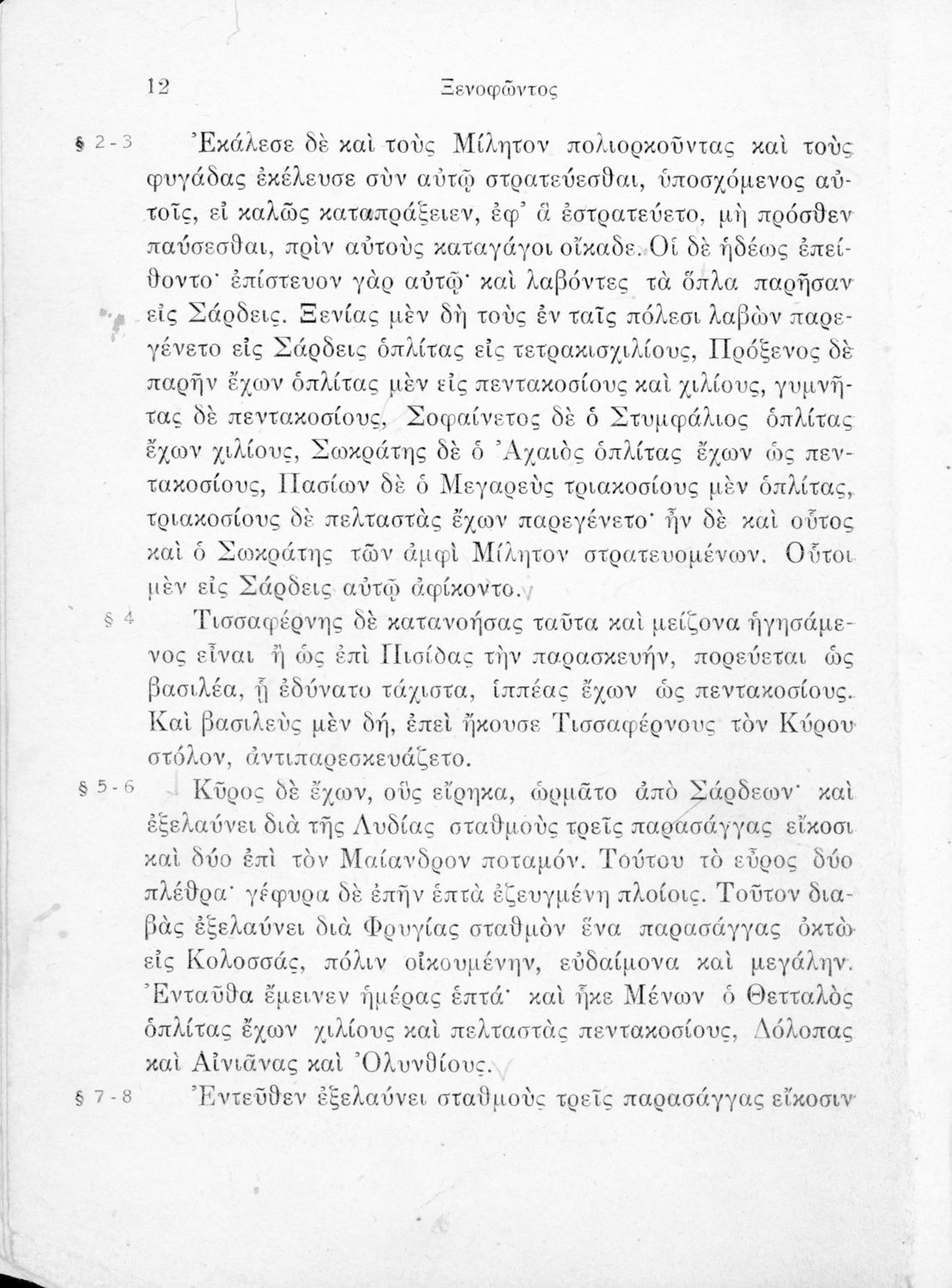 Σχολικό εγχειρίδιο Αρχαίων Ελληνικών για τη Β΄ Γυμνασίου με αποσπάσματα από το έργο του Ξενοφώντα. Το βιβλίο περιέχει ερμηνευτικές σημειώσεις και σχόλια.