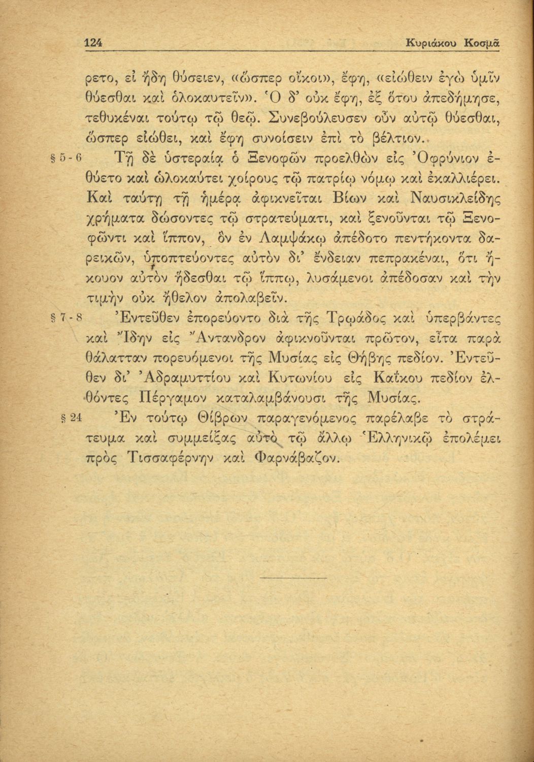 Ξενοφών, Κυριάκος Κοσμάς (σχόλια)