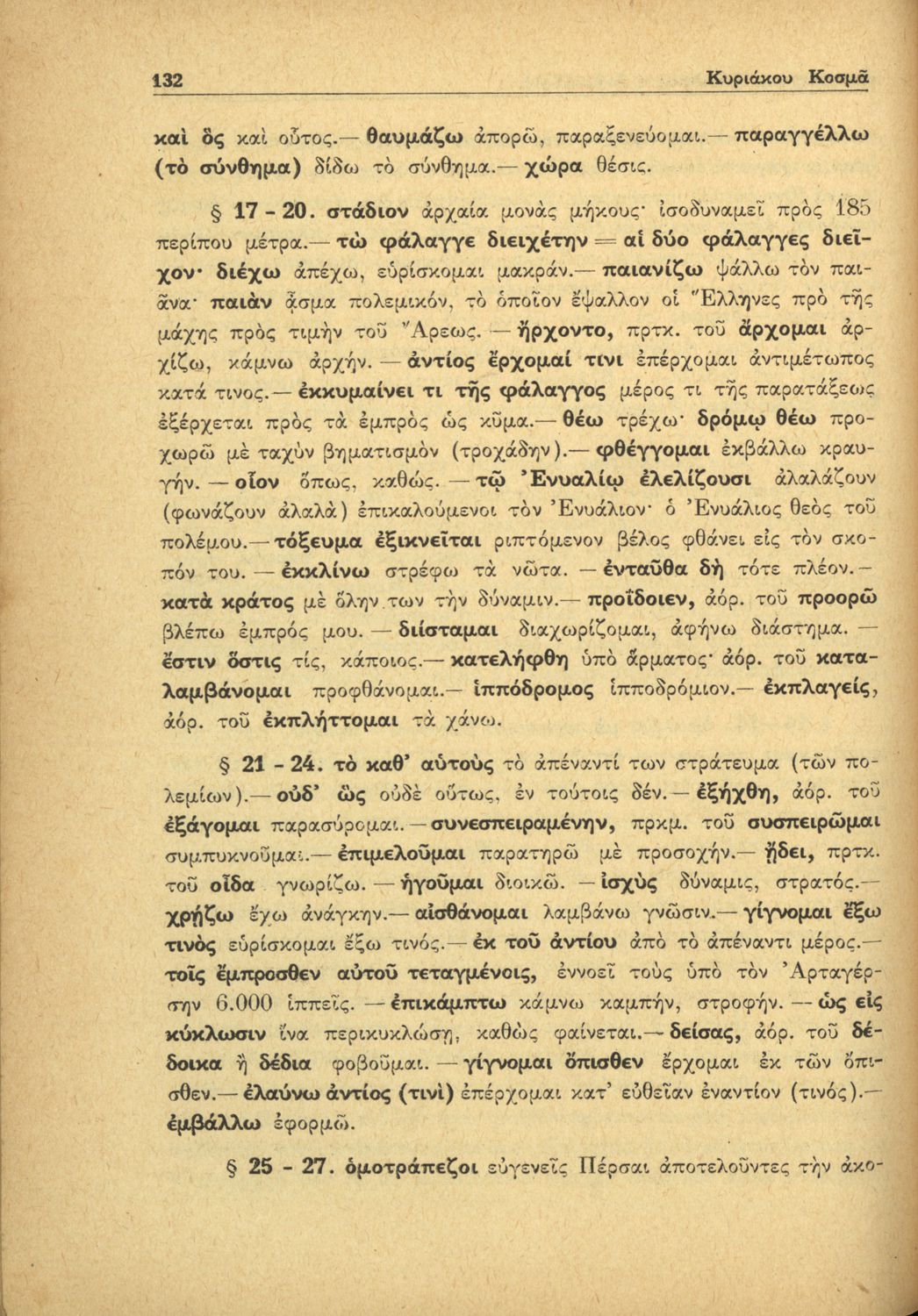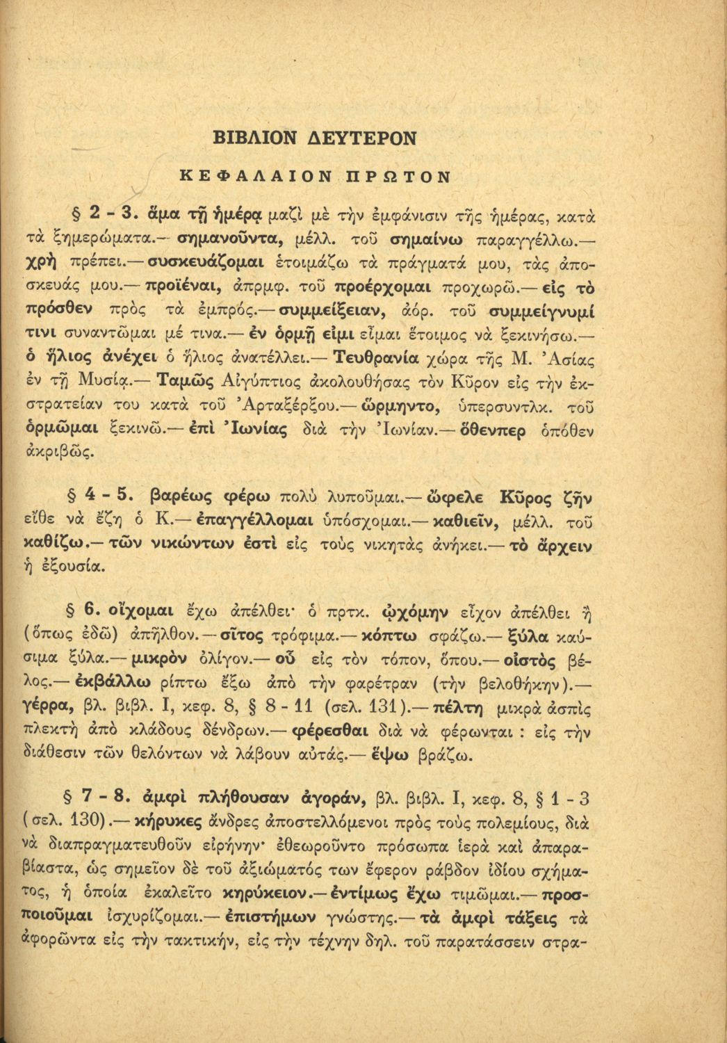 Σχολικό εγχειρίδιο Αρχαίων Ελληνικών Β΄ Γυμνασίου που περιέχει αποσπάσματα από το έργο Κύρου Ανάβασις του Ξενοφώντα, λεξιλογικές παρατηρήσεις, ερμηνευτικά, πραγματολογικά σχόλια και γραμματικές παρατηρήσεις.
