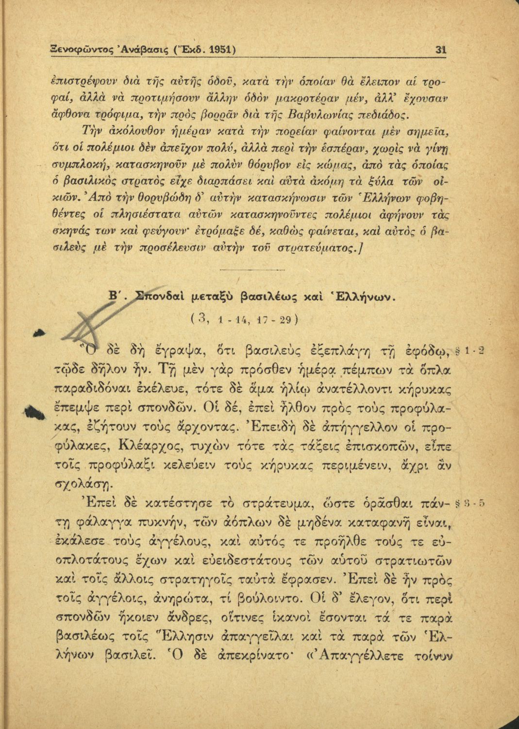 Ξενοφώντος Ανάβασις (Εκλογαί) δια την Β΄ Τάξιν των Γυμνασίων