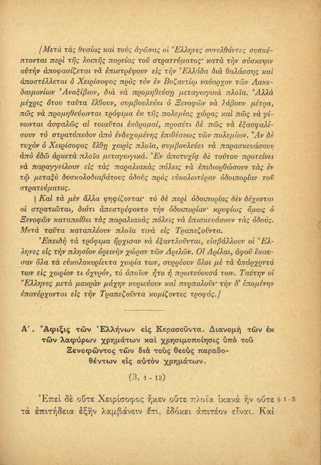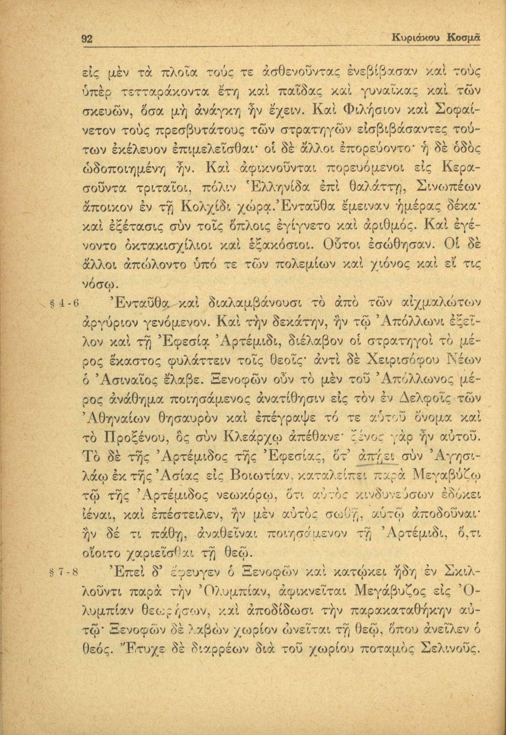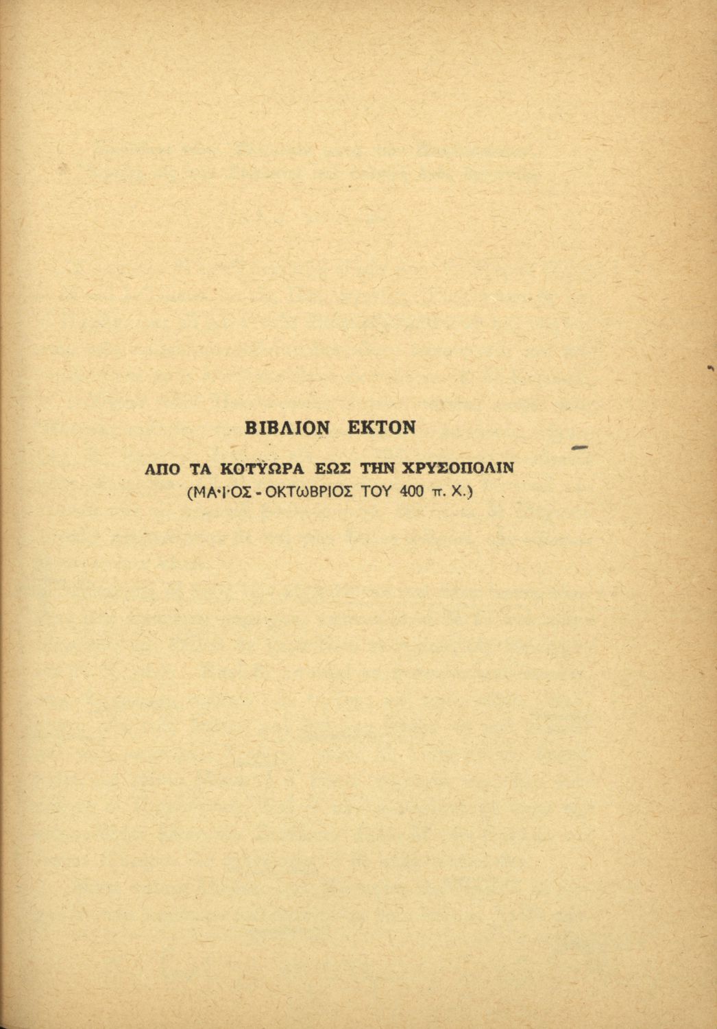 Σχολικό εγχειρίδιο της Β΄ Γυμνασίου για το μάθημα των Αρχαίων Ελληνικών. Περιέχει το αρχαίο κείμενο από το έργο Ανάβασις του Ξενοφώντα. Επίσης, περιλαμβάνει λεξιλογικές παρατηρήσεις, ερμηνευτικά, πραγματολογικά σχόλια και γραμματικές παρατηρήσεις του συγγραφέα.