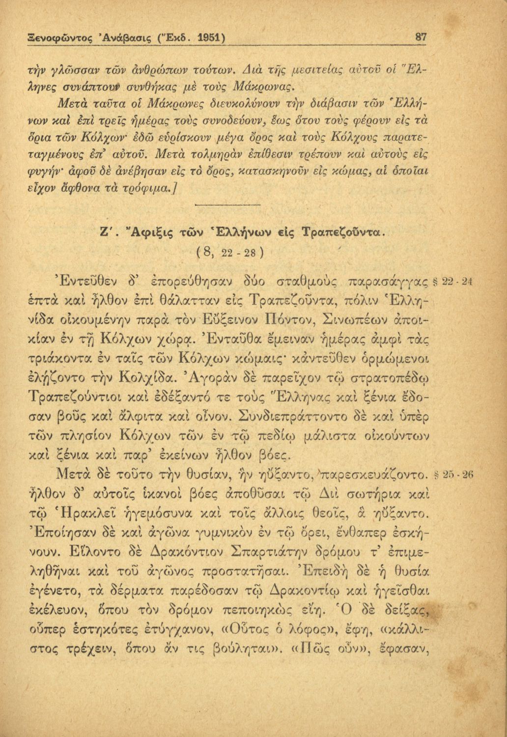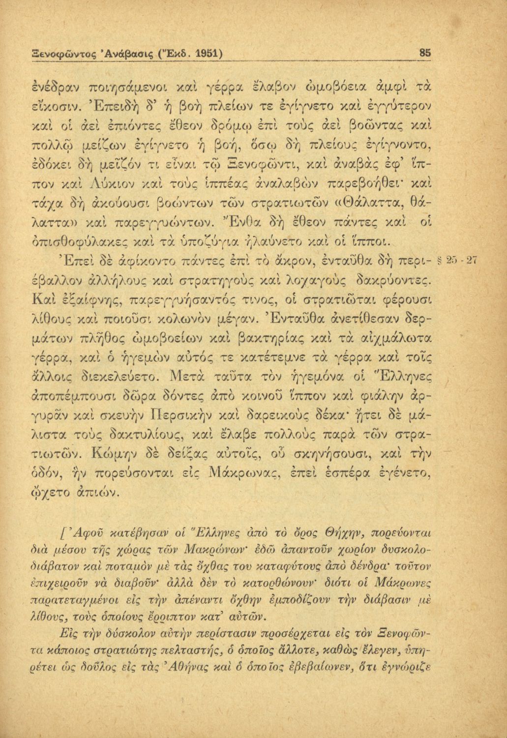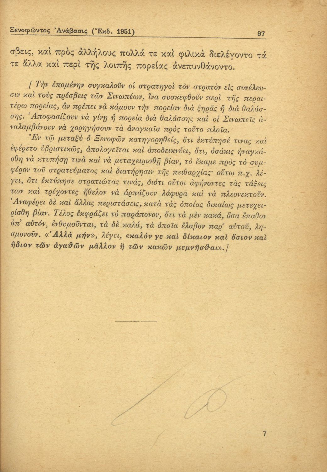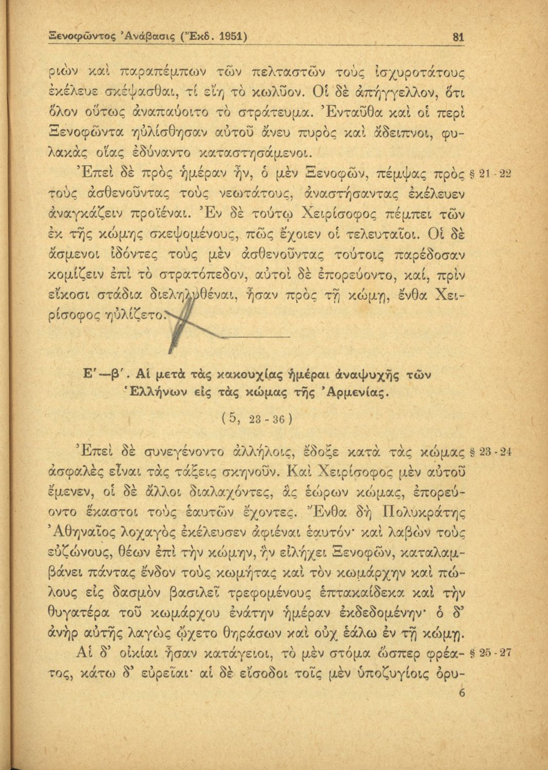 Σχολικό εγχειρίδιο της Β΄ Γυμνασίου για το μάθημα των Αρχαίων Ελληνικών. Περιέχει το αρχαίο κείμενο από το έργο Ανάβασις του Ξενοφώντα. Επίσης, περιλαμβάνει λεξιλογικές παρατηρήσεις, ερμηνευτικά, πραγματολογικά σχόλια και γραμματικές παρατηρήσεις του συγγραφέα.