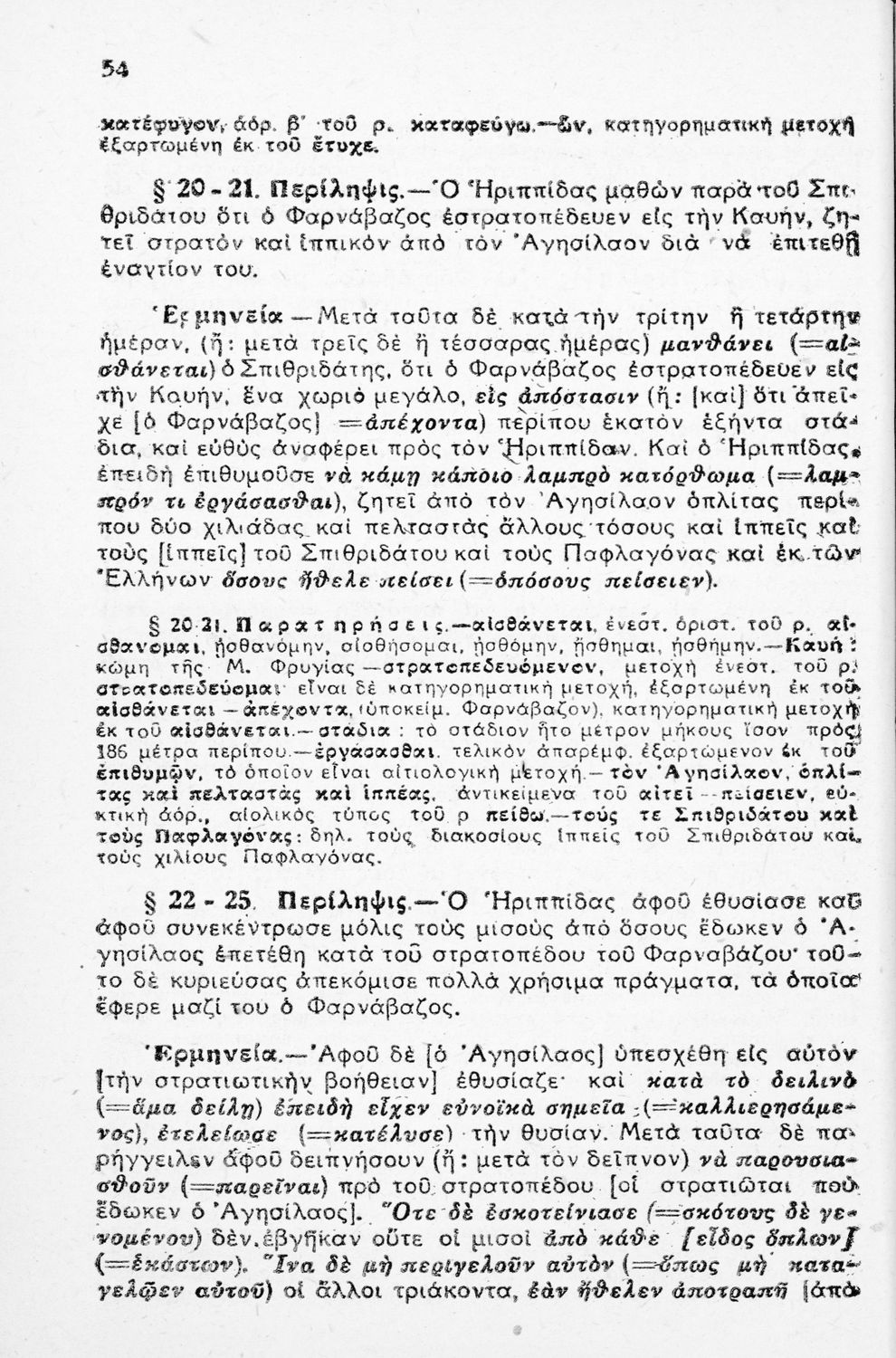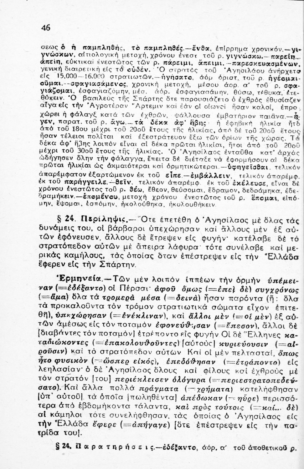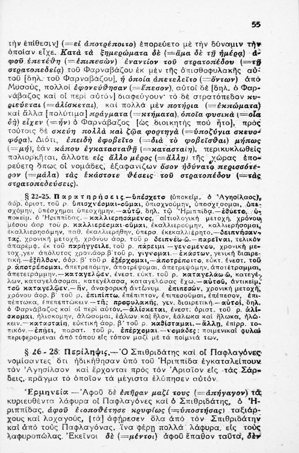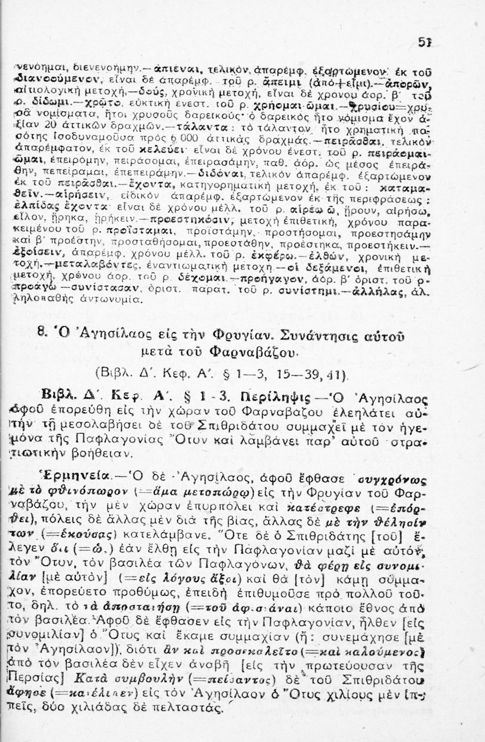 Μαθητικό βοήθημα Αρχαίων Ελληνικών για τους μαθητές των Γυμνασίων. Περιέχει μετάφραση, γραμματικά και συντακτικά σχόλια.