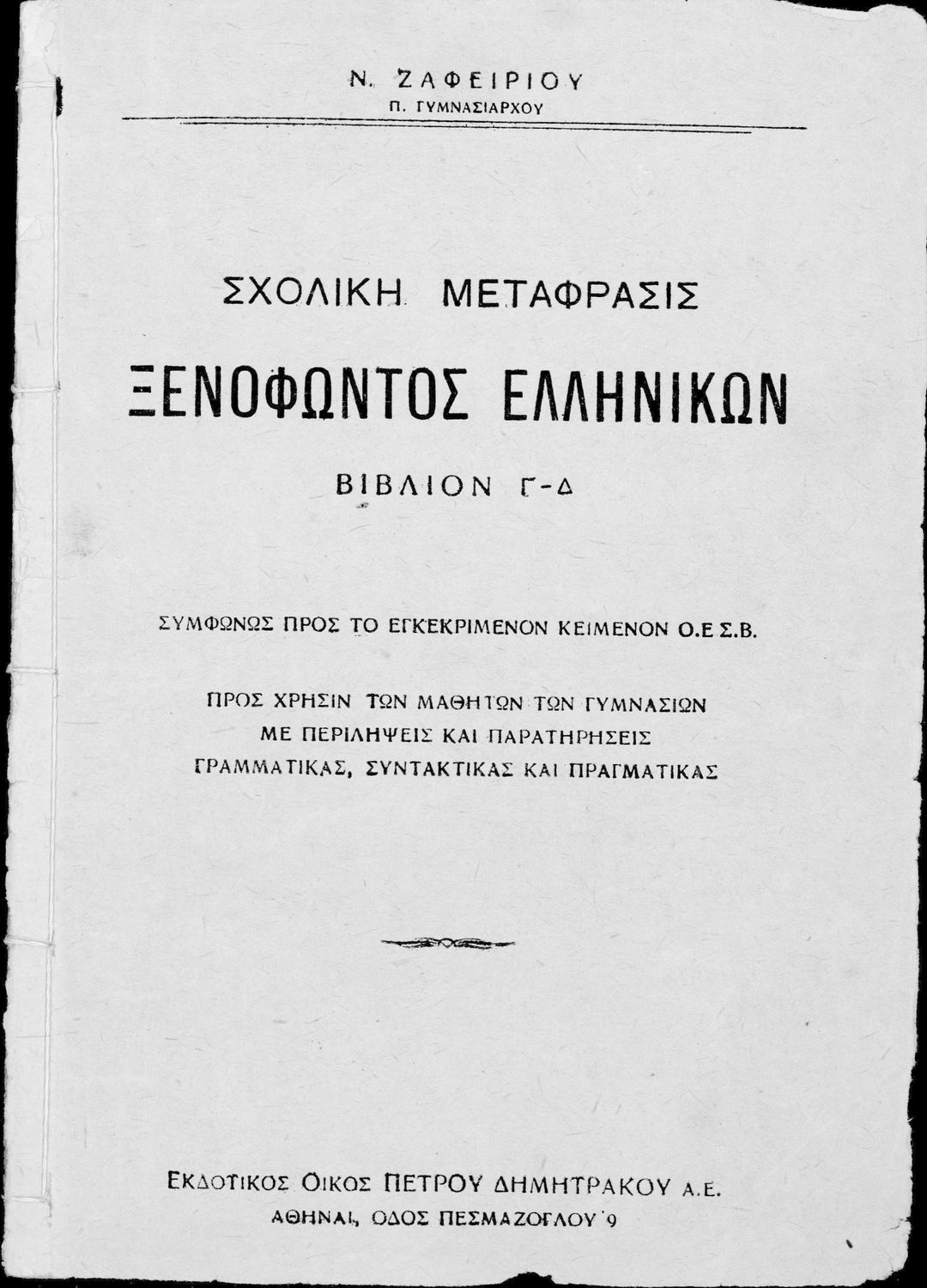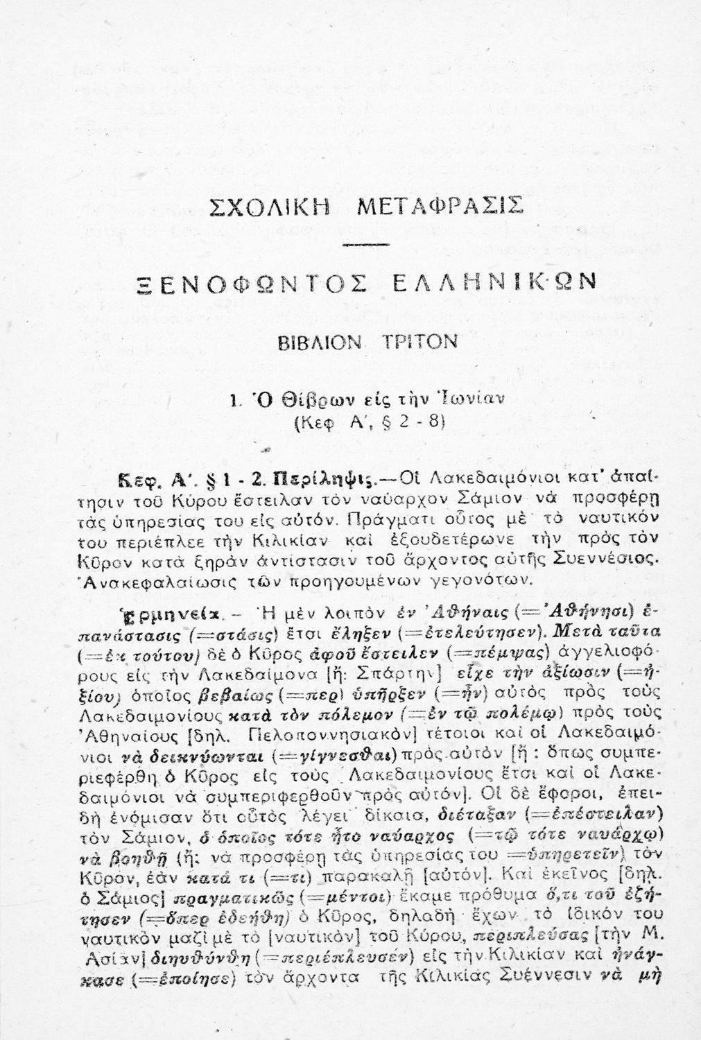 Σχολική μετάφρασις Ξενοφώντος Ελληνικών βιβλίον Γ- Δ, προς χρήσιν των μαθητών των Γυμνασίων με περιλήψεις και παρατηρήσεις γραμματικάς, συντακτικάς και πραγματικάς