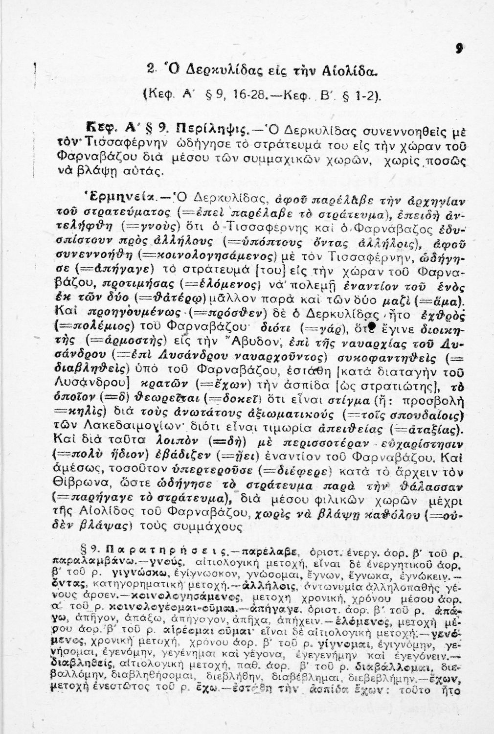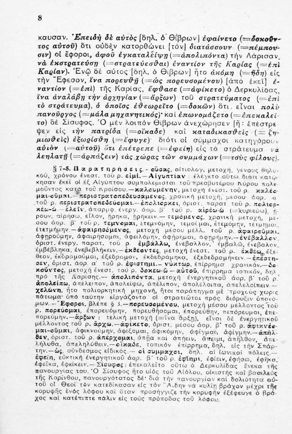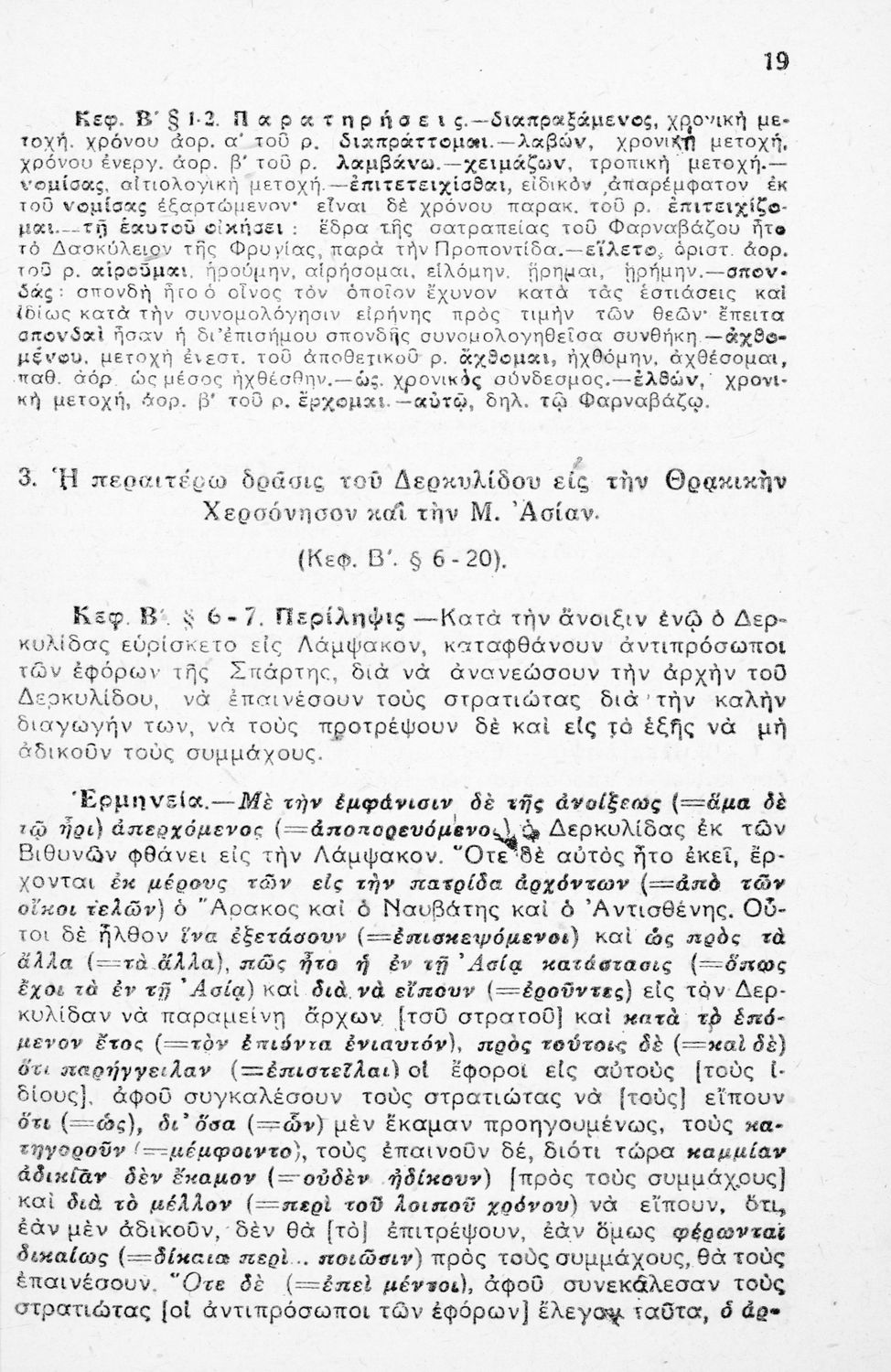 Μαθητικό βοήθημα Αρχαίων Ελληνικών για τους μαθητές των Γυμνασίων. Περιέχει μετάφραση, γραμματικά και συντακτικά σχόλια.