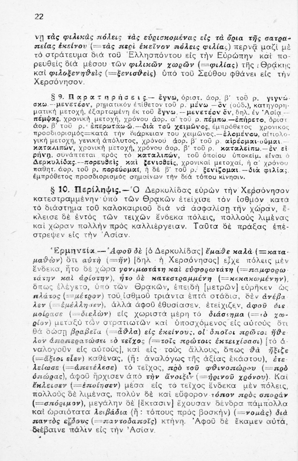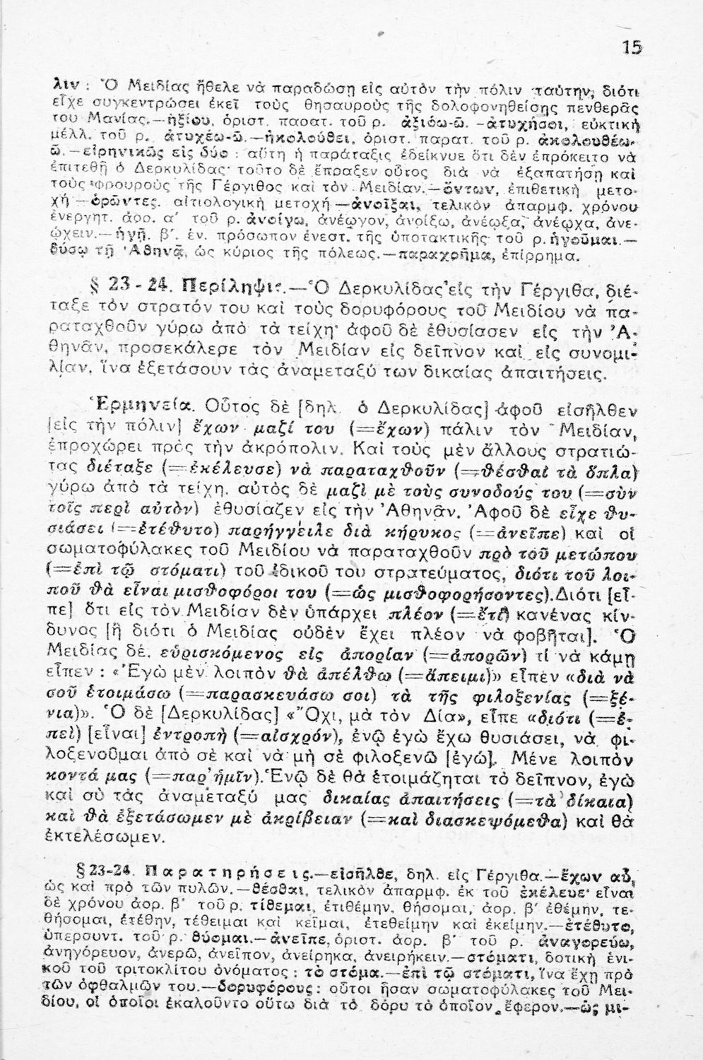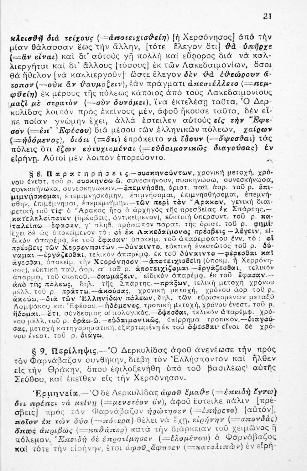 Μαθητικό βοήθημα Αρχαίων Ελληνικών για τους μαθητές των Γυμνασίων. Περιέχει μετάφραση, γραμματικά και συντακτικά σχόλια.