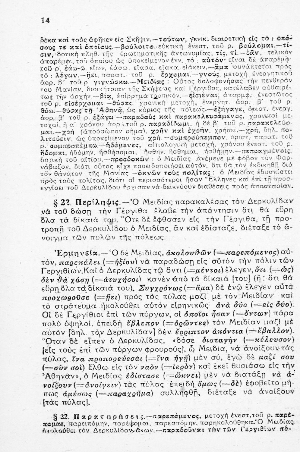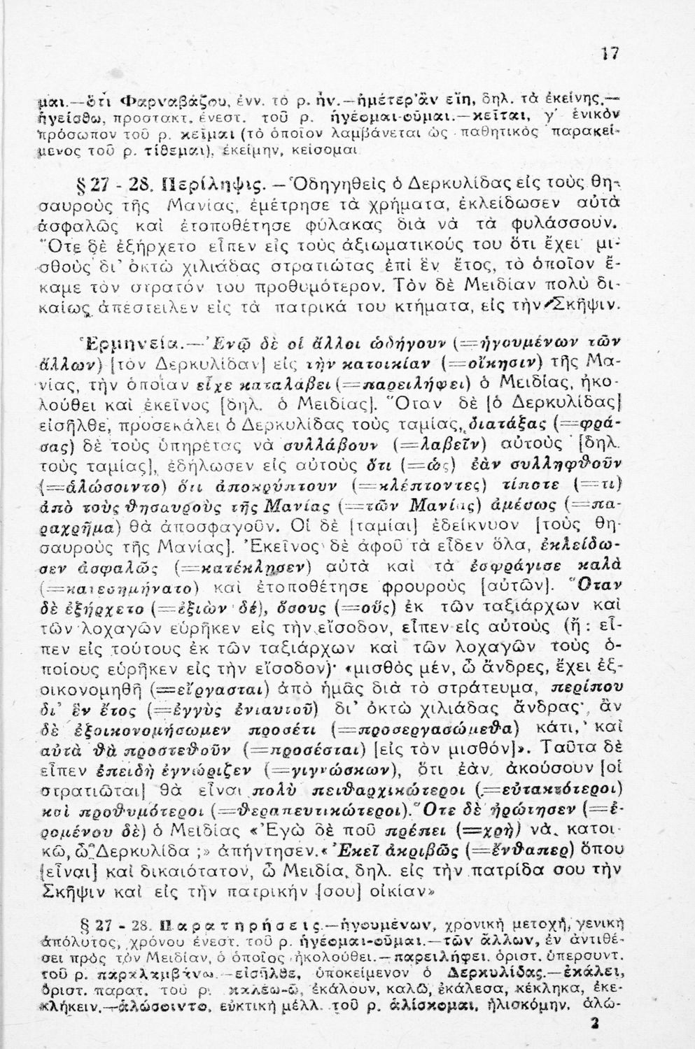 Μαθητικό βοήθημα Αρχαίων Ελληνικών για τη Δευτεροβάθμια Εκπαίδευση. Περιλαμβάνει μετάφραση, ερμηνευτικά, γραμματικά και συντακτικά σχόλια.