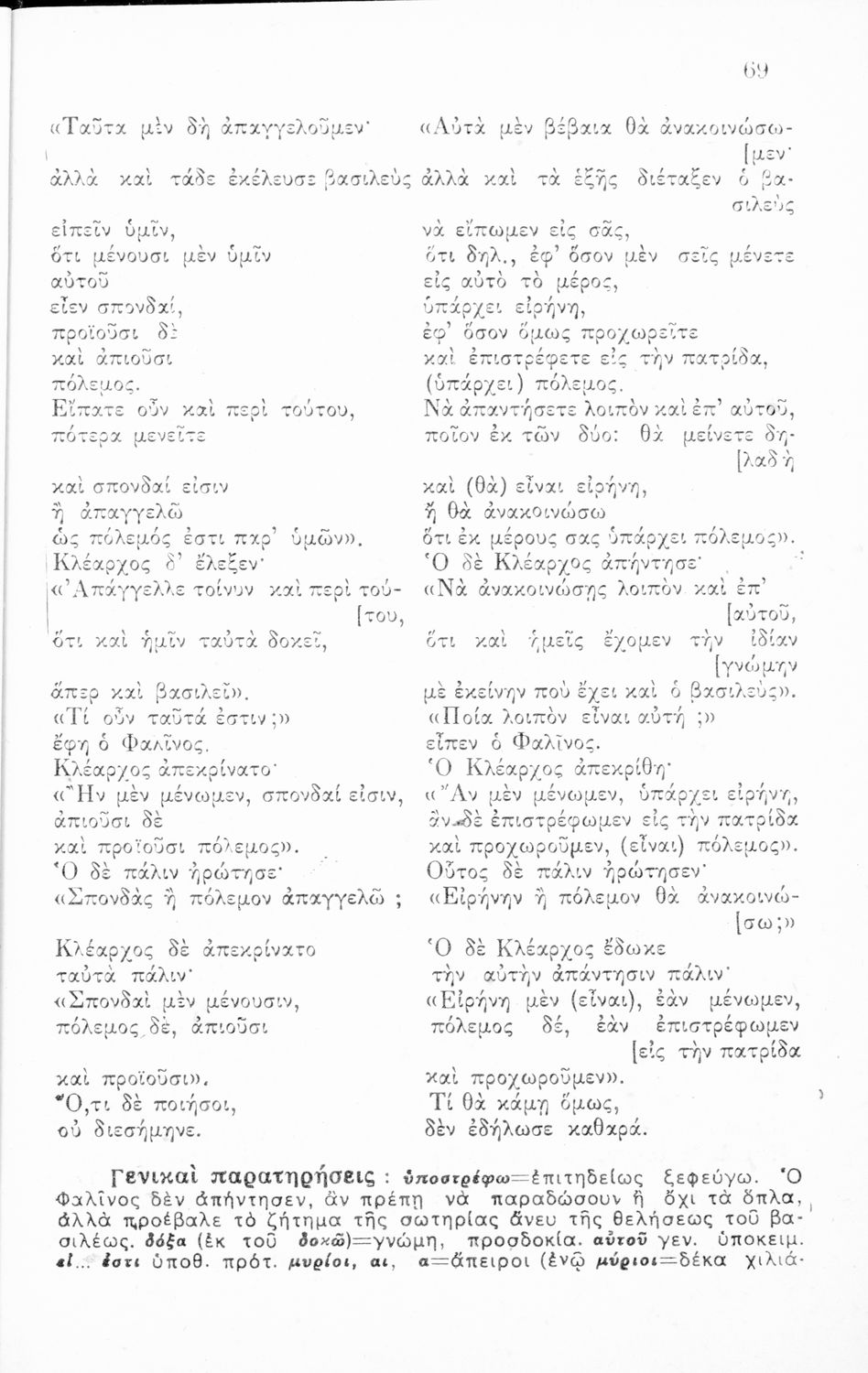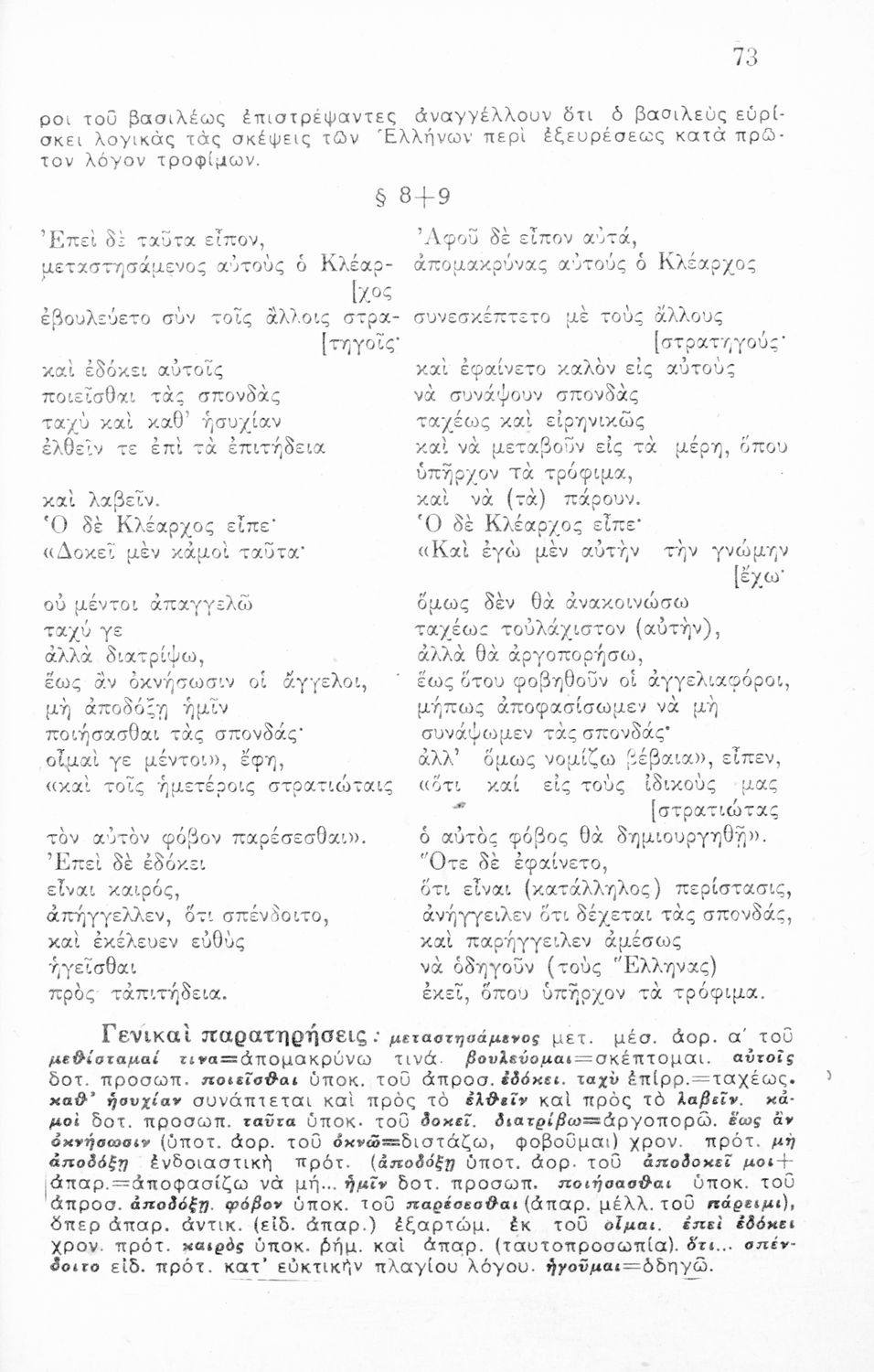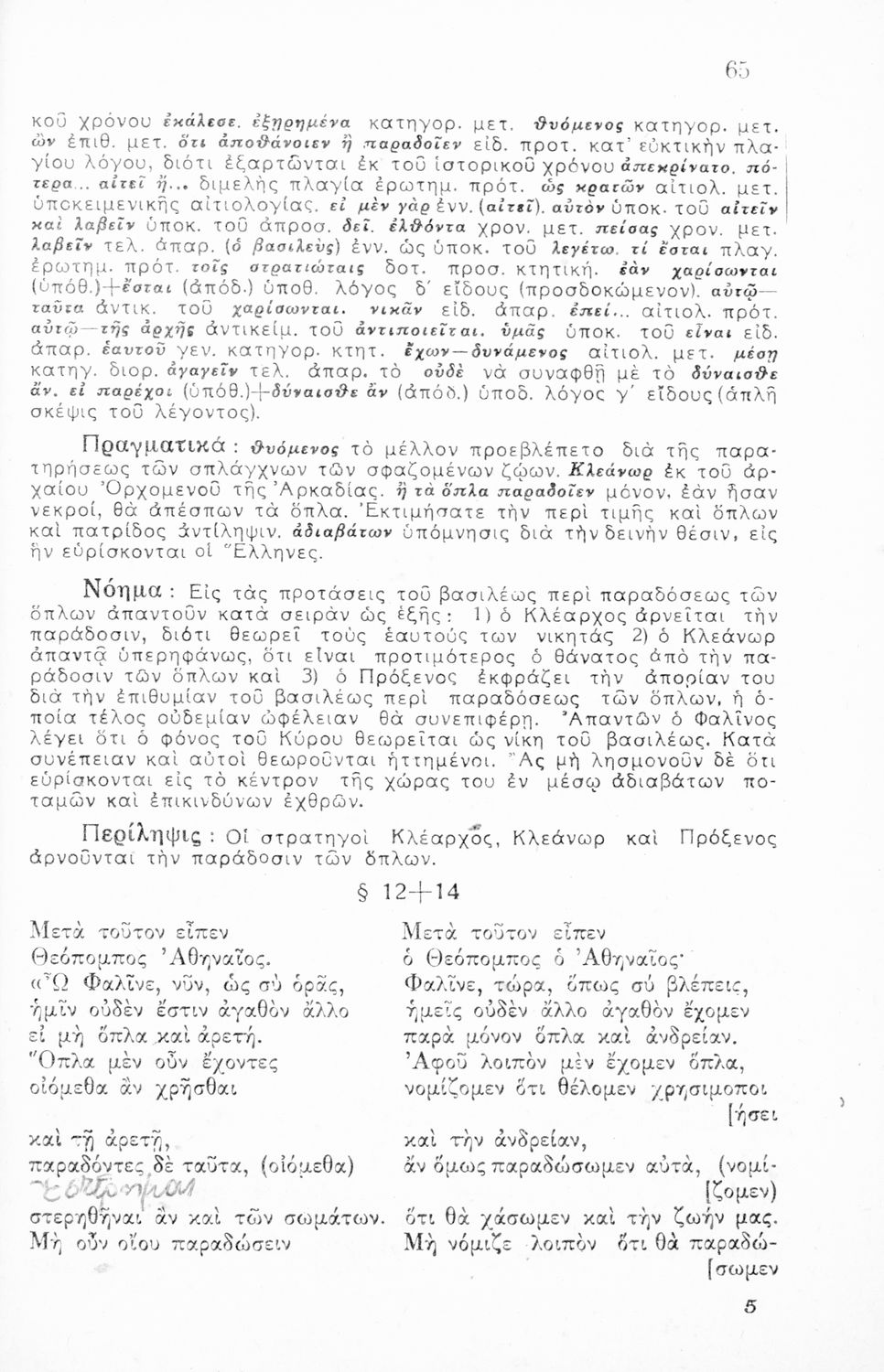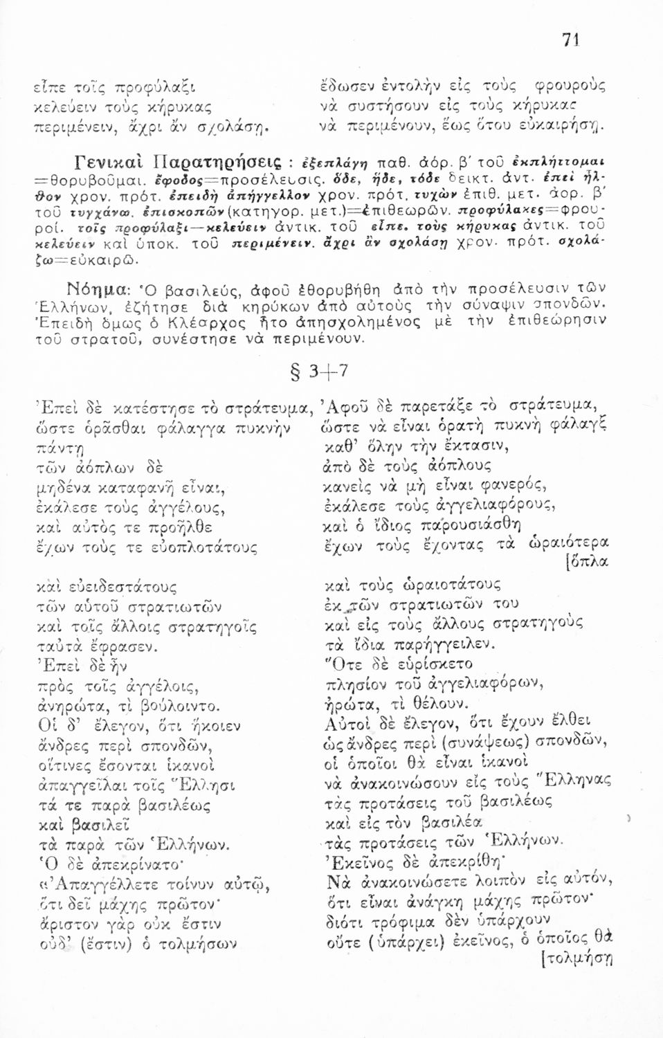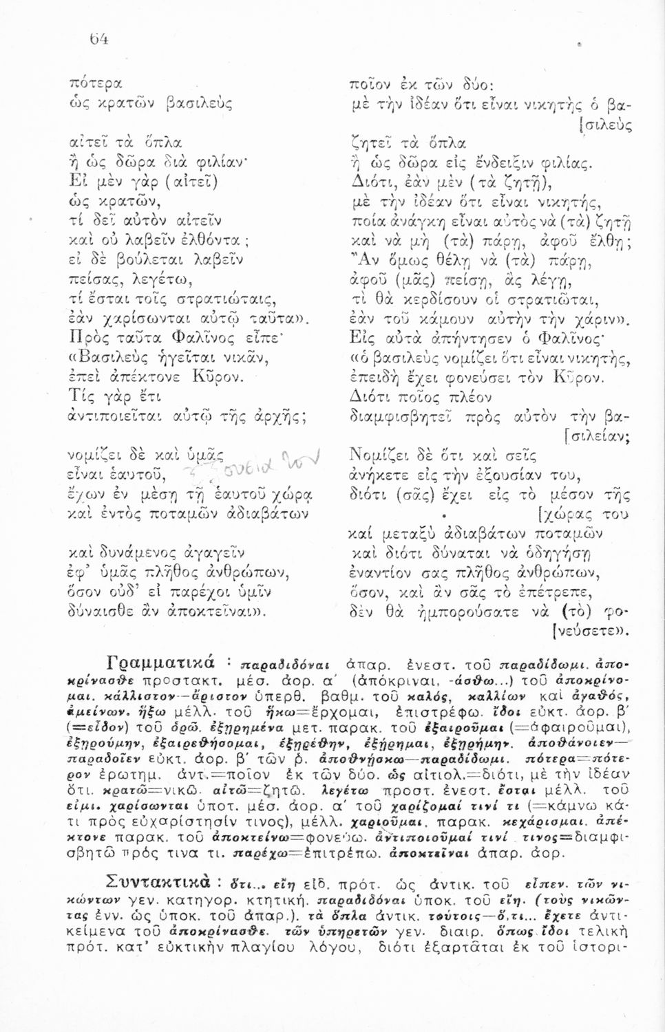 Μαθητικό βοήθημα Αρχαίων Ελληνικών για την Δ' Γυμνασίου. Περιλαμβάνει μετάφραση, ερμηνευτικά, γραμματικά και συντακτικά σχόλια.