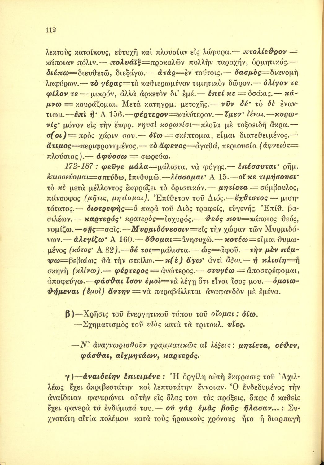 Σχολικό εγχειρίδιο της ΣΤ΄ Γυμνασίου για το μάθημα των Αρχαίων Ελληνικών. Περιέχει ραψωδίες της Ιλιάδας. Περιλαμβάνει το αρχαίο κείμενο, λεξιλογικές παρατηρήσεις, ερμηνευτικά, πραγματολογικά σχόλια και γραμματικές παρατηρήσεις του συγγραφέα. Ο συγγραφέας ήταν Καθηγητής στο Κολέγιο Αθηνών. Η συγγραφέας ήταν Καθηγήτρια Φιλόλογος.
