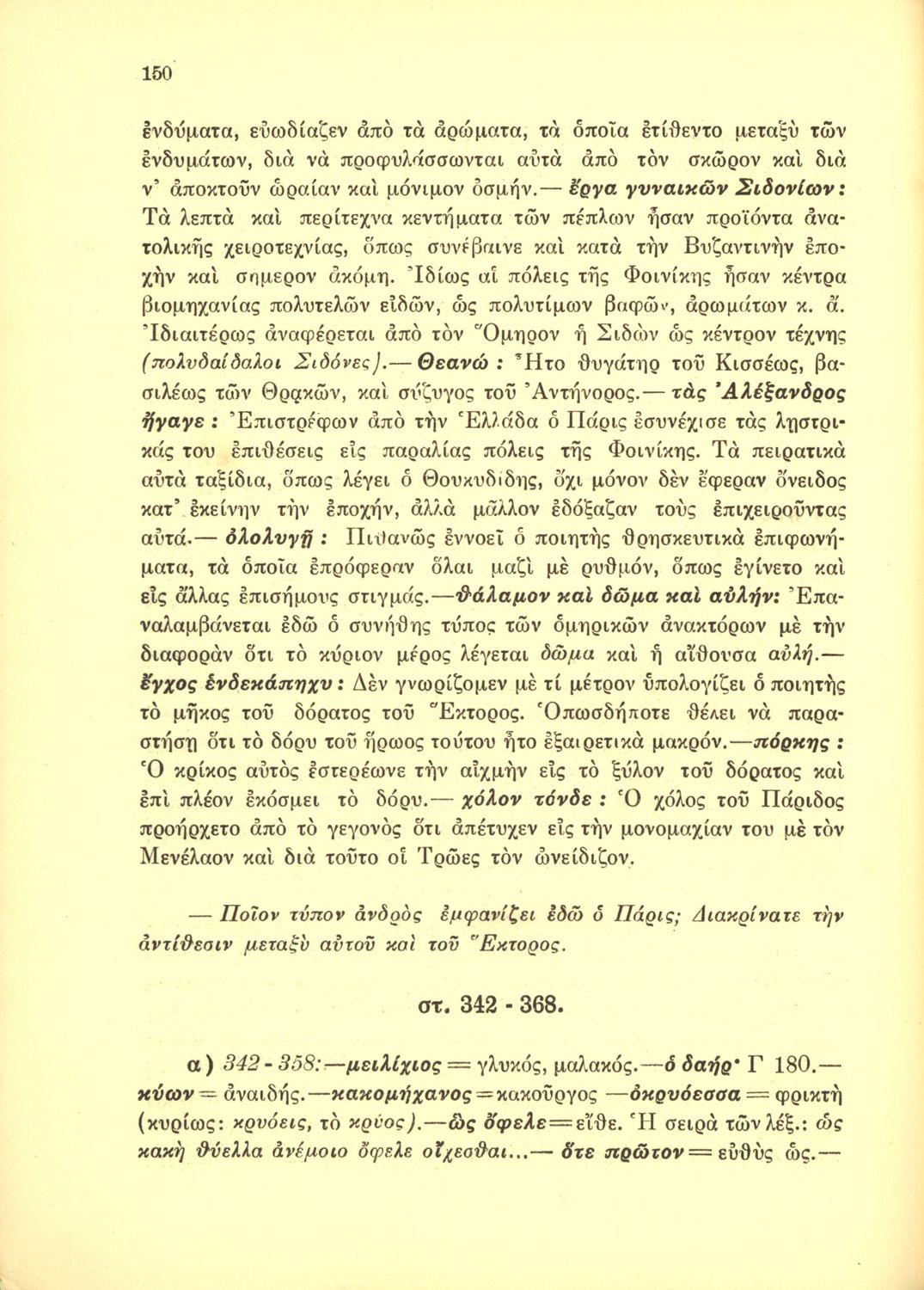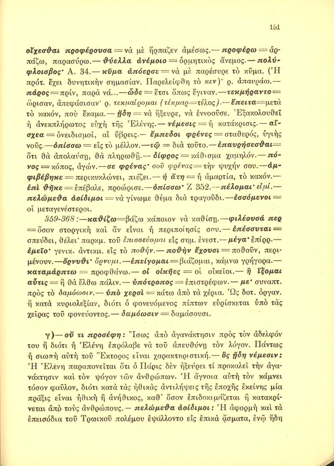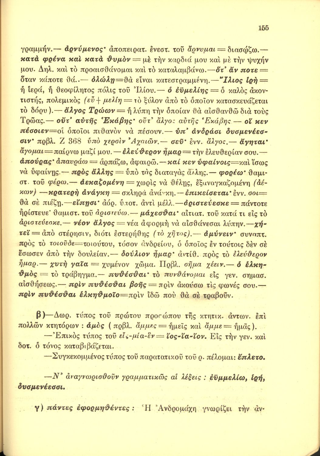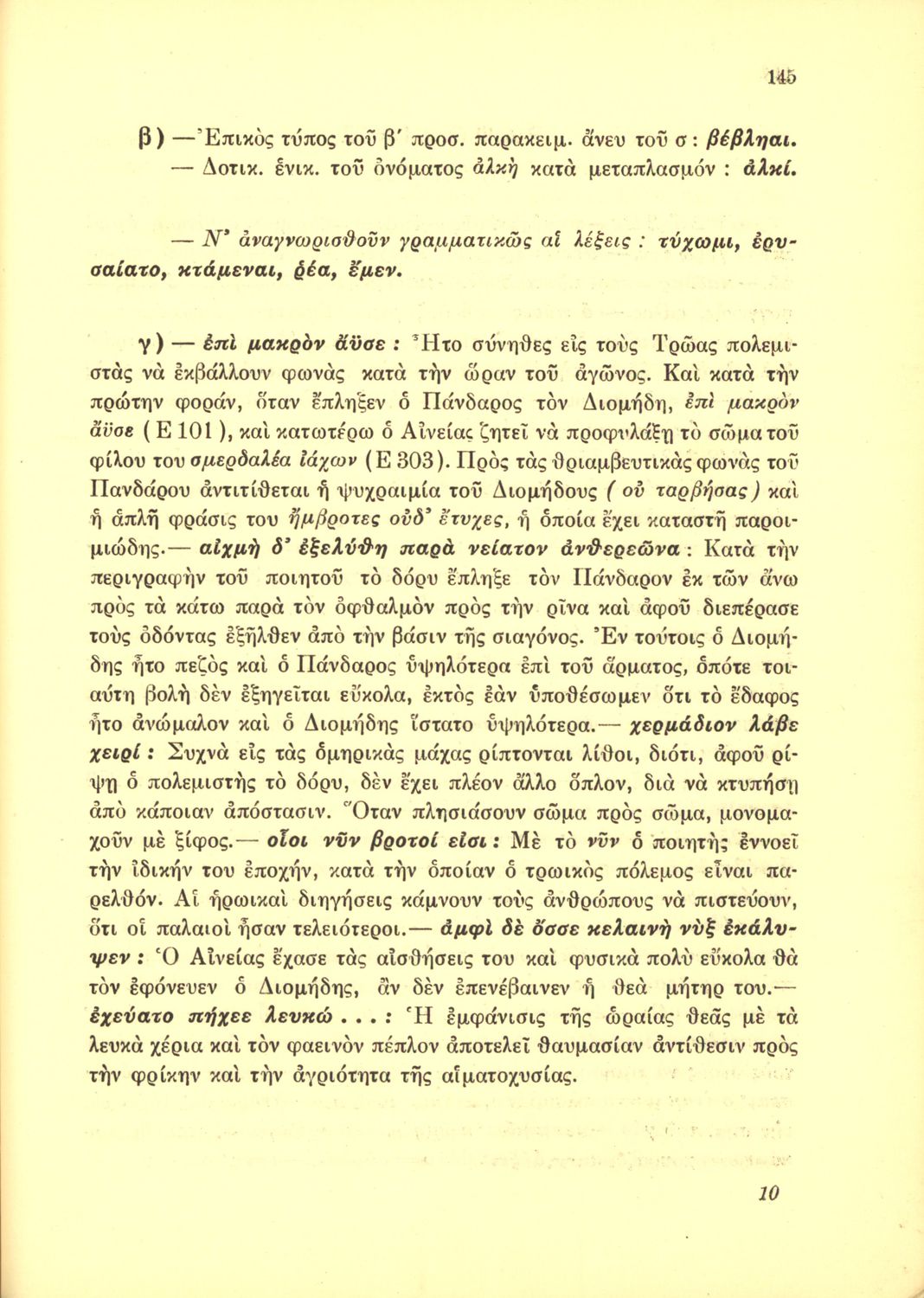 Σχολικό εγχειρίδιο της ΣΤ΄ Γυμνασίου για το μάθημα των Αρχαίων Ελληνικών. Περιέχει ραψωδίες της Ιλιάδας. Περιλαμβάνει το αρχαίο κείμενο, λεξιλογικές παρατηρήσεις, ερμηνευτικά, πραγματολογικά σχόλια και γραμματικές παρατηρήσεις του συγγραφέα. Ο συγγραφέας ήταν Καθηγητής στο Κολέγιο Αθηνών. Η συγγραφέας ήταν Καθηγήτρια Φιλόλογος.