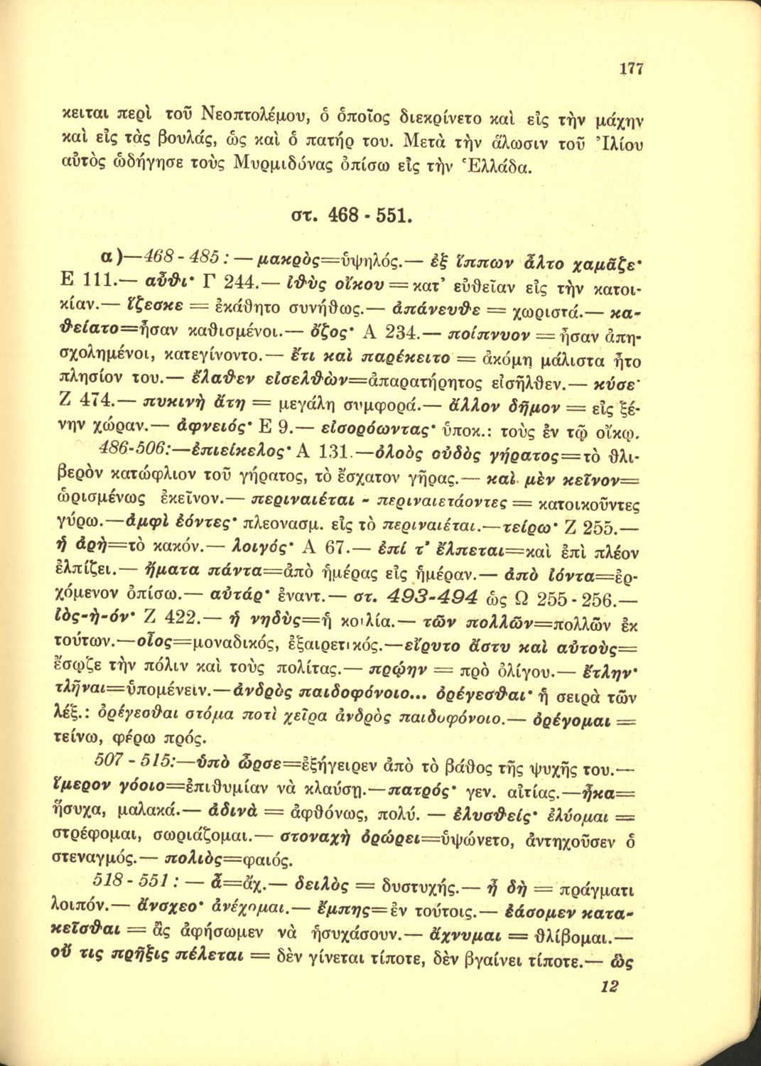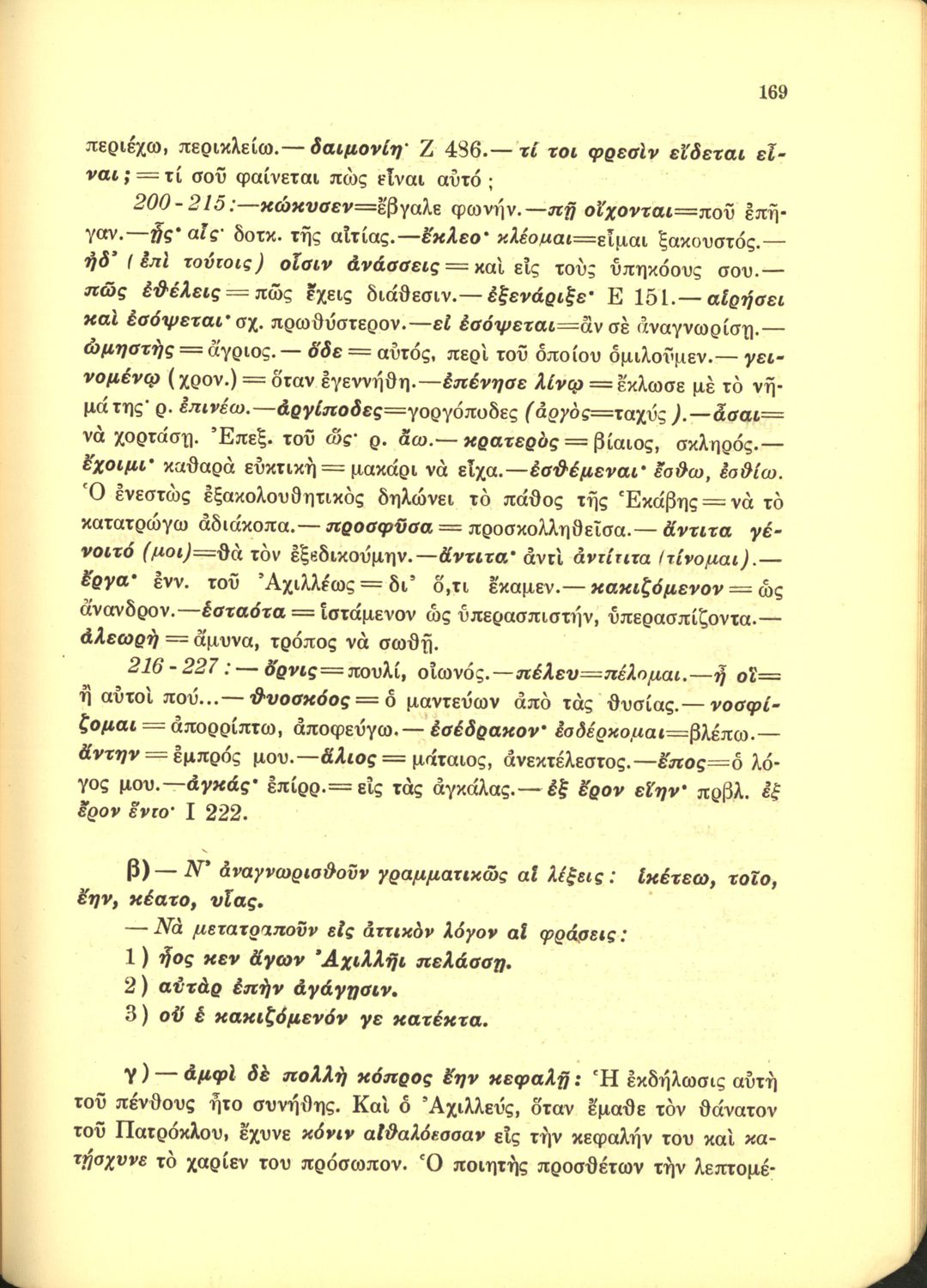 Σχολικό εγχειρίδιο της ΣΤ΄ Γυμνασίου για το μάθημα των Αρχαίων Ελληνικών. Περιέχει ραψωδίες της Ιλιάδας. Περιλαμβάνει το αρχαίο κείμενο, λεξιλογικές παρατηρήσεις, ερμηνευτικά, πραγματολογικά σχόλια και γραμματικές παρατηρήσεις του συγγραφέα. Ο συγγραφέας ήταν Καθηγητής στο Κολέγιο Αθηνών. Η συγγραφέας ήταν Καθηγήτρια Φιλόλογος.