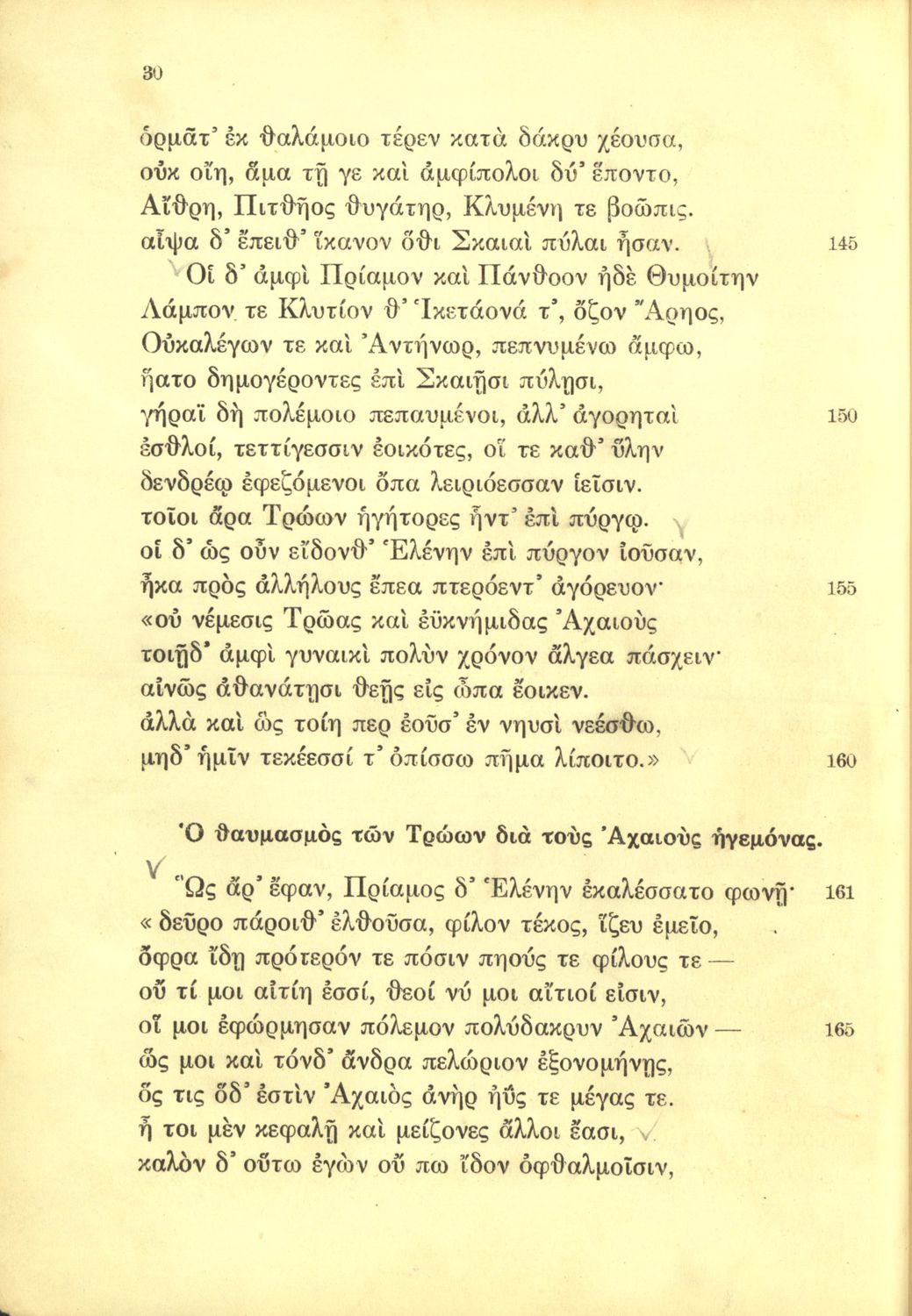 Σχολικό εγχειρίδιο της ΣΤ΄ Γυμνασίου για το μάθημα των Αρχαίων Ελληνικών. Περιέχει ραψωδίες της Ιλιάδας. Περιλαμβάνει το αρχαίο κείμενο, λεξιλογικές παρατηρήσεις, ερμηνευτικά, πραγματολογικά σχόλια και γραμματικές παρατηρήσεις του συγγραφέα. Ο συγγραφέας ήταν Καθηγητής στο Κολέγιο Αθηνών. Η συγγραφέας ήταν Καθηγήτρια Φιλόλογος.