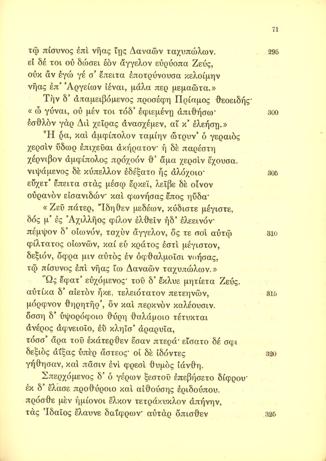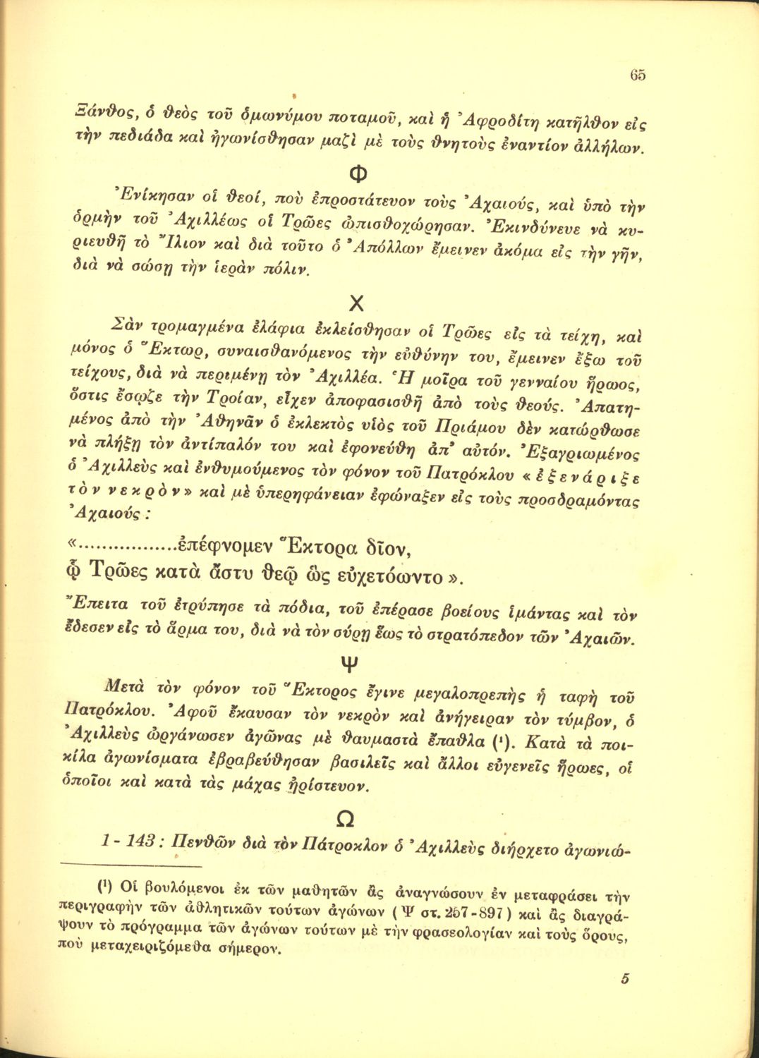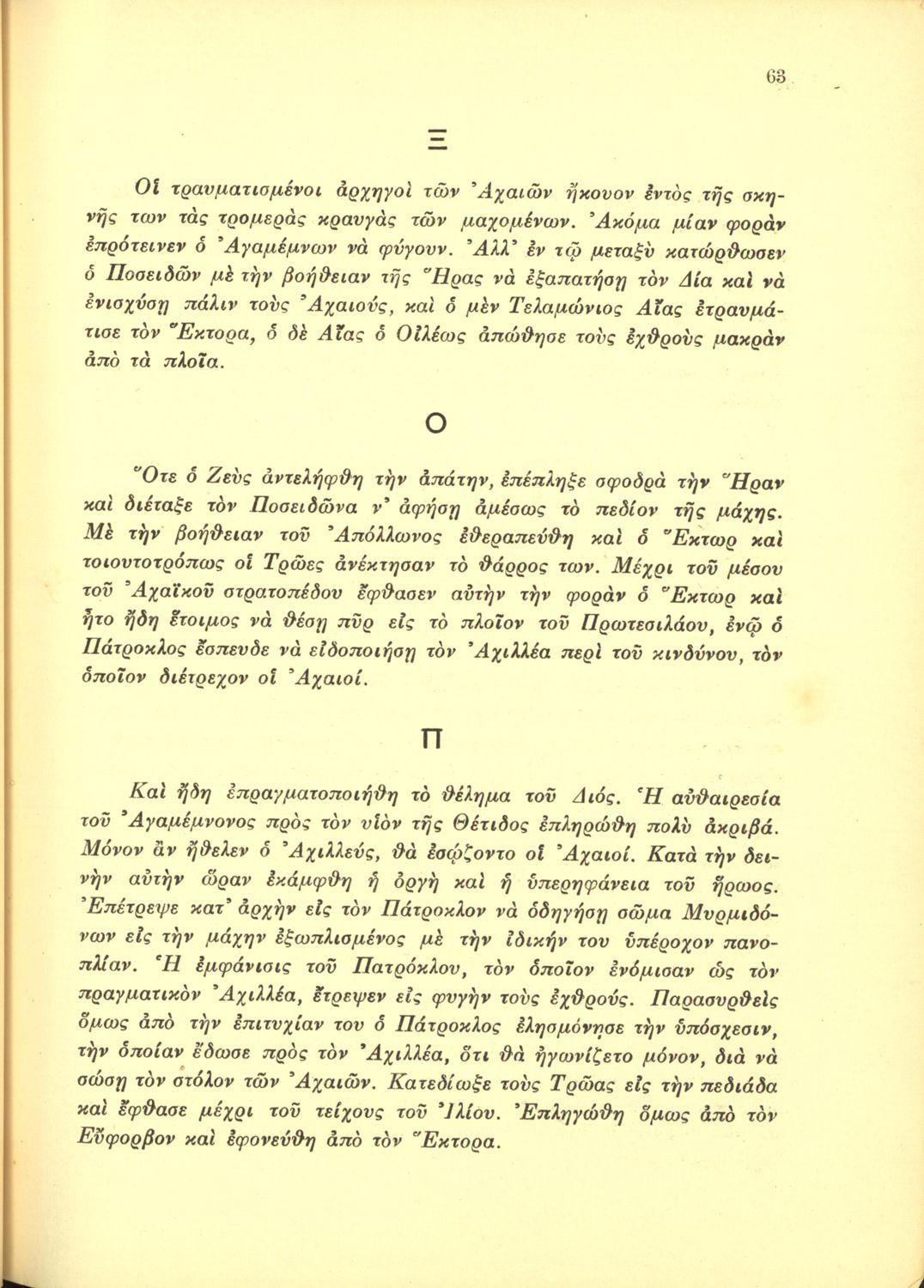 Σχολικό εγχειρίδιο της ΣΤ΄ Γυμνασίου για το μάθημα των Αρχαίων Ελληνικών. Περιέχει ραψωδίες της Ιλιάδας. Περιλαμβάνει το αρχαίο κείμενο, λεξιλογικές παρατηρήσεις, ερμηνευτικά, πραγματολογικά σχόλια και γραμματικές παρατηρήσεις του συγγραφέα. Ο συγγραφέας ήταν Καθηγητής στο Κολέγιο Αθηνών. Η συγγραφέας ήταν Καθηγήτρια Φιλόλογος.