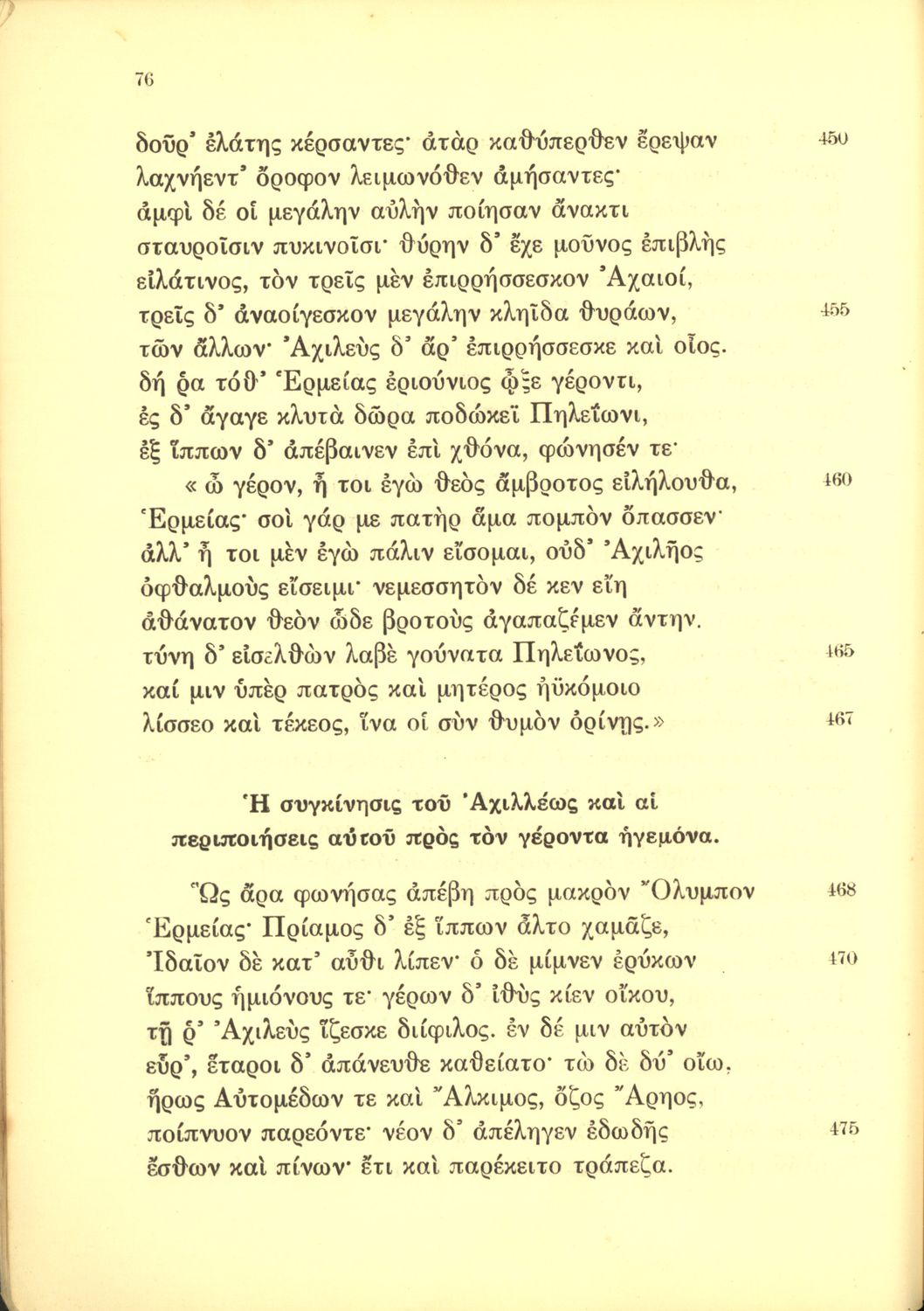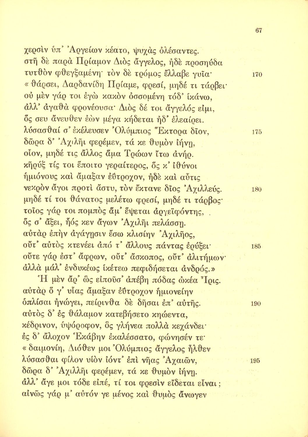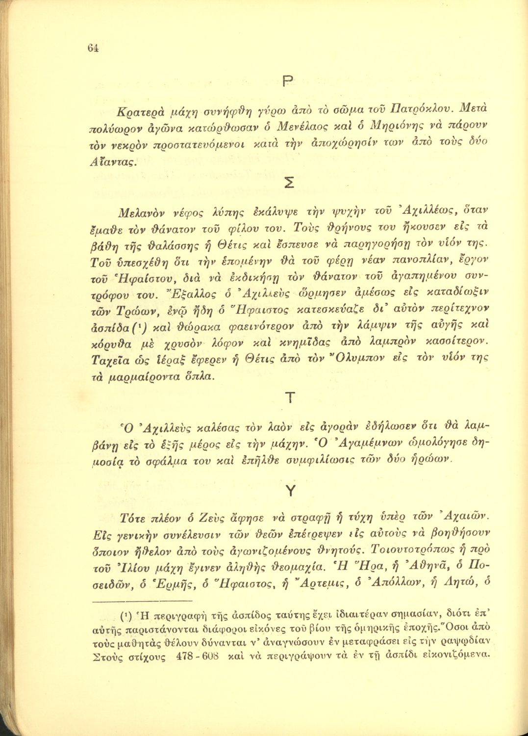 Σχολικό εγχειρίδιο της ΣΤ΄ Γυμνασίου για το μάθημα των Αρχαίων Ελληνικών. Περιέχει ραψωδίες της Ιλιάδας. Περιλαμβάνει το αρχαίο κείμενο, λεξιλογικές παρατηρήσεις, ερμηνευτικά, πραγματολογικά σχόλια και γραμματικές παρατηρήσεις του συγγραφέα. Ο συγγραφέας ήταν Καθηγητής στο Κολέγιο Αθηνών. Η συγγραφέας ήταν Καθηγήτρια Φιλόλογος.