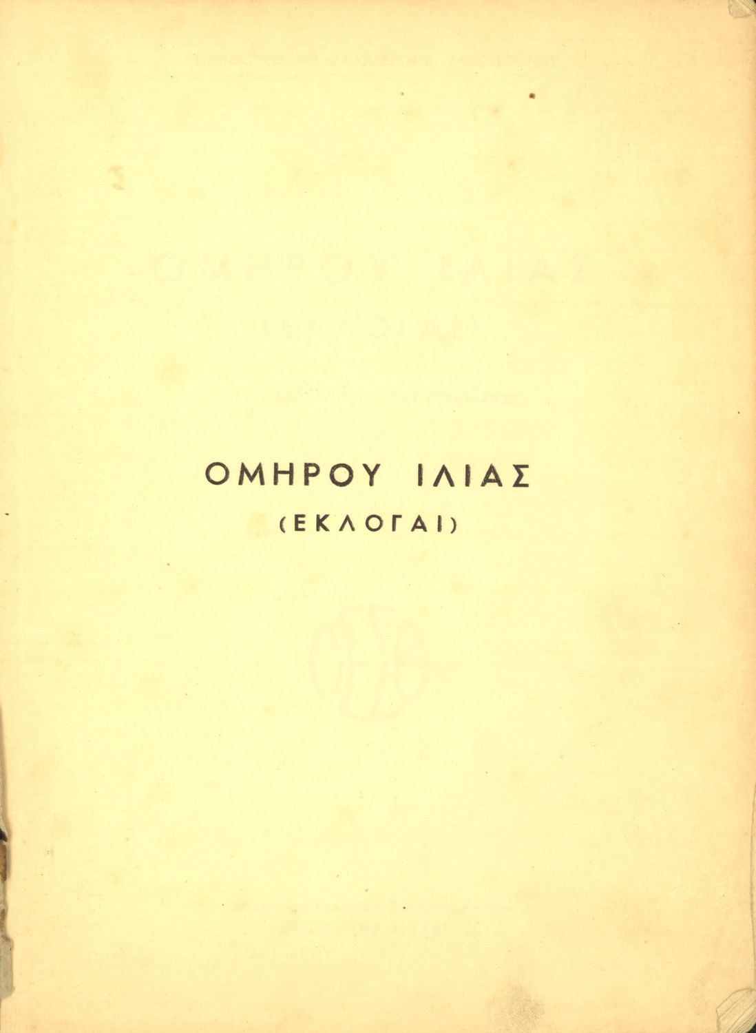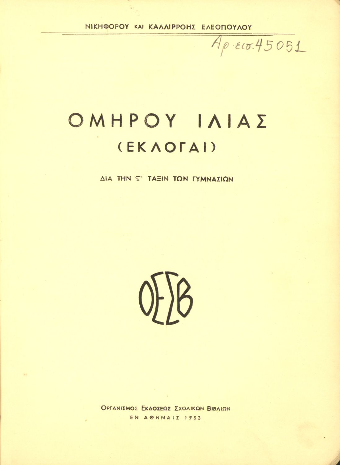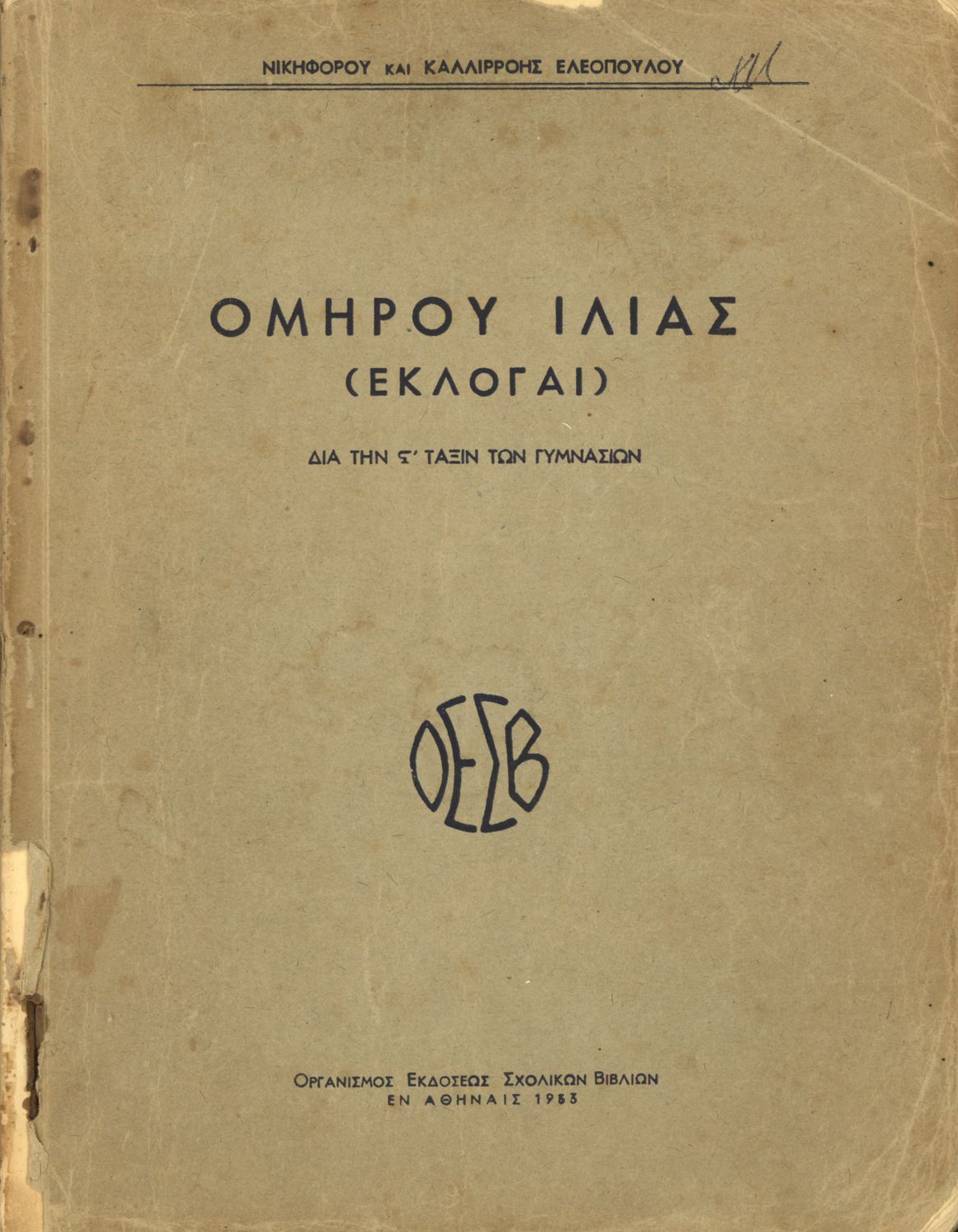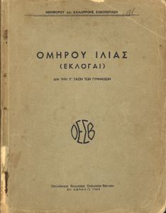Σχολικό εγχειρίδιο της ΣΤ΄ Γυμνασίου για το μάθημα των Αρχαίων Ελληνικών. Περιέχει ραψωδίες της Ιλιάδας. Περιλαμβάνει το αρχαίο κείμενο, λεξιλογικές παρατηρήσεις, ερμηνευτικά, πραγματολογικά σχόλια και γραμματικές παρατηρήσεις του συγγραφέα. Ο συγγραφέας ήταν Καθηγητής στο Κολέγιο Αθηνών. Η συγγραφέας ήταν Καθηγήτρια Φιλόλογος.