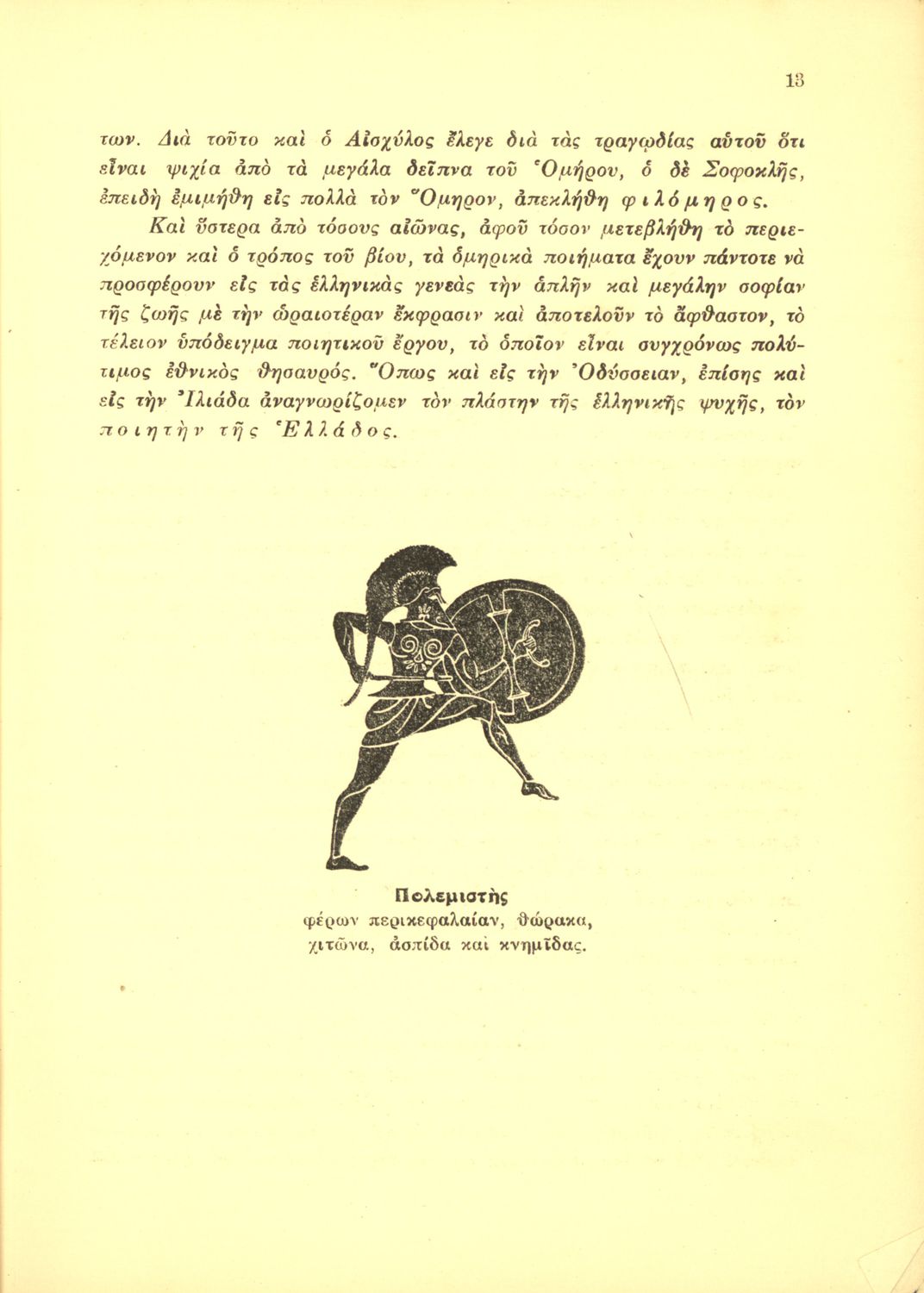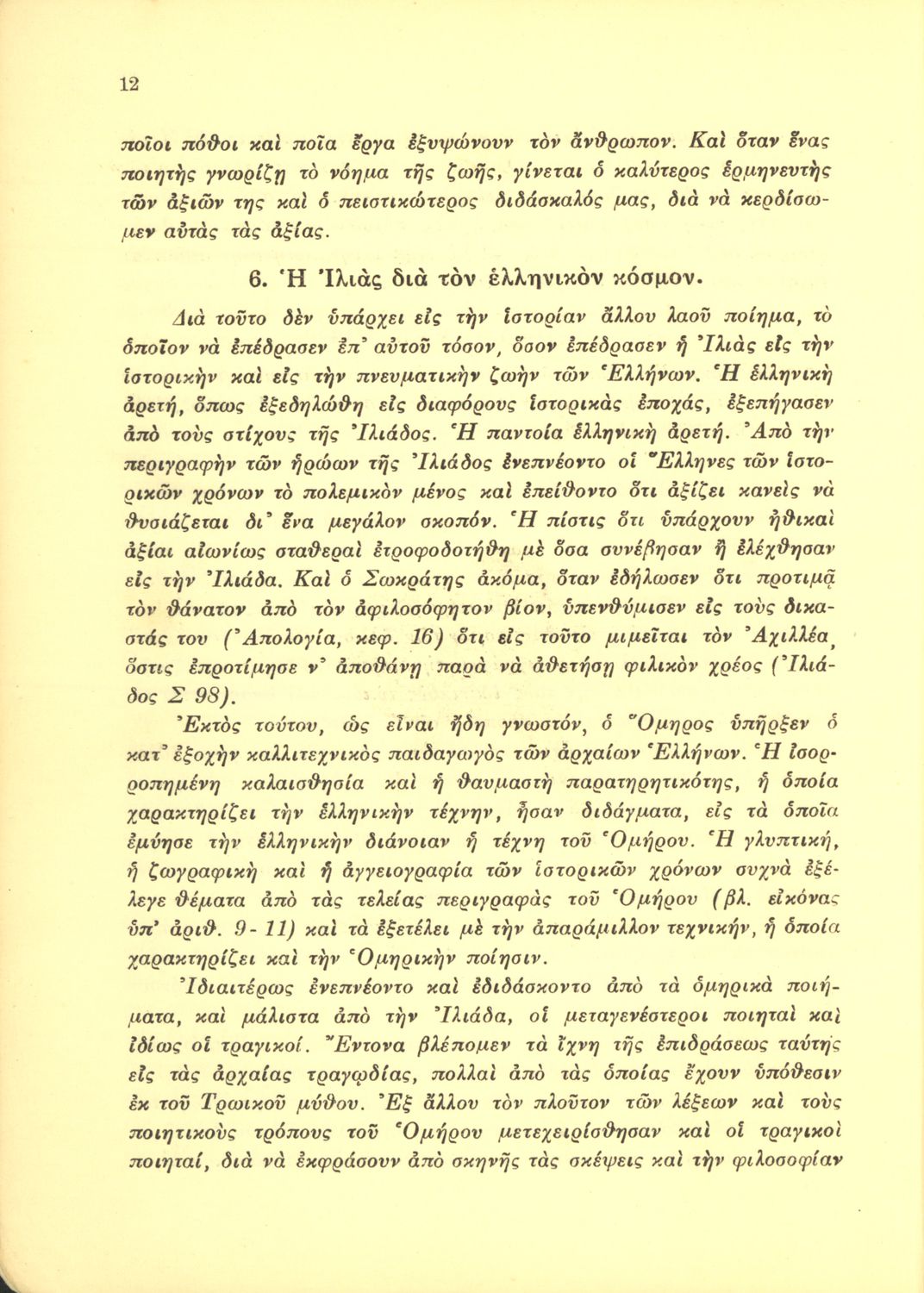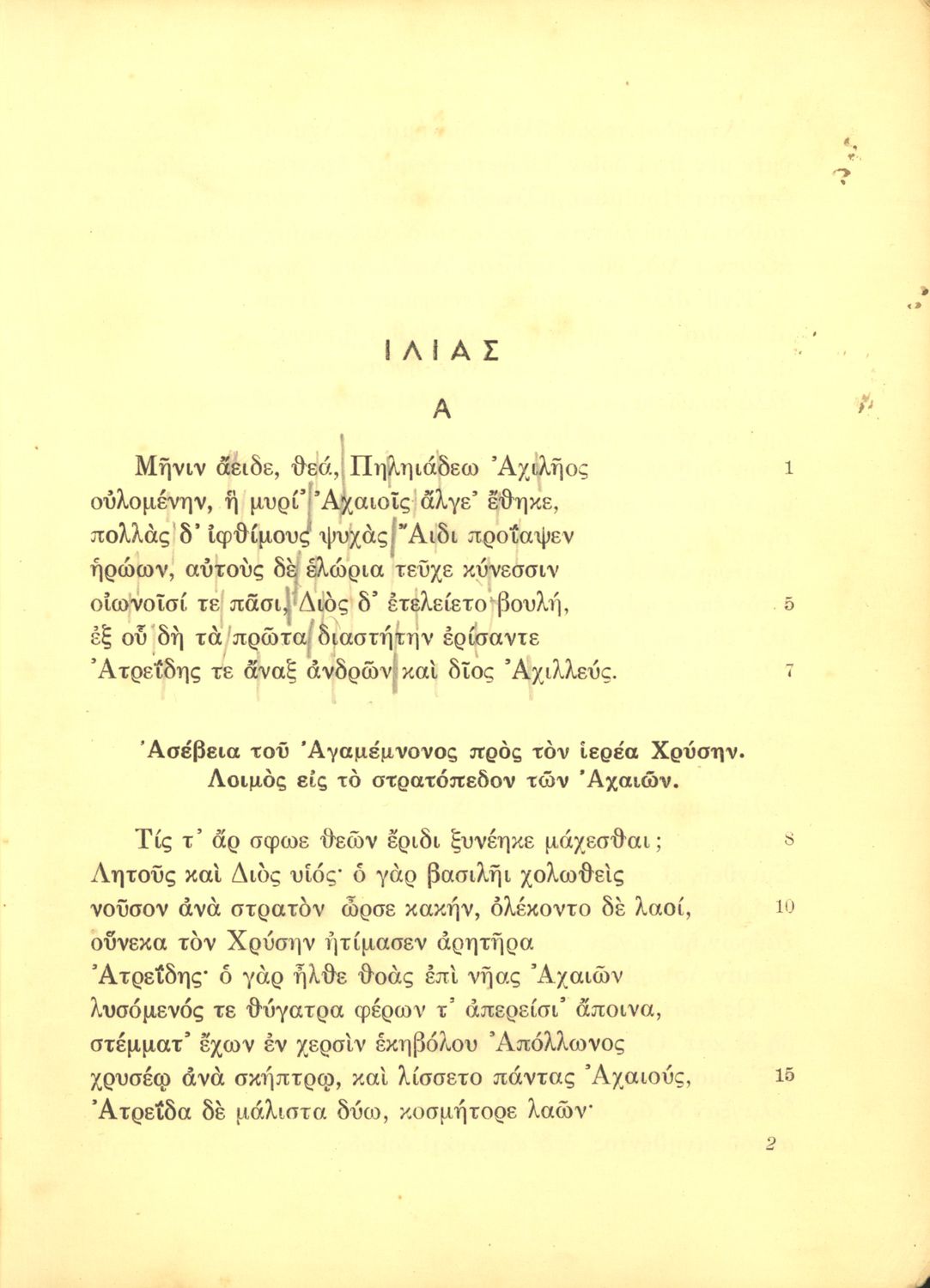 Σχολικό εγχειρίδιο της ΣΤ΄ Γυμνασίου για το μάθημα των Αρχαίων Ελληνικών. Περιέχει ραψωδίες της Ιλιάδας. Περιλαμβάνει το αρχαίο κείμενο, λεξιλογικές παρατηρήσεις, ερμηνευτικά, πραγματολογικά σχόλια και γραμματικές παρατηρήσεις του συγγραφέα. Ο συγγραφέας ήταν Καθηγητής στο Κολέγιο Αθηνών. Η συγγραφέας ήταν Καθηγήτρια Φιλόλογος.