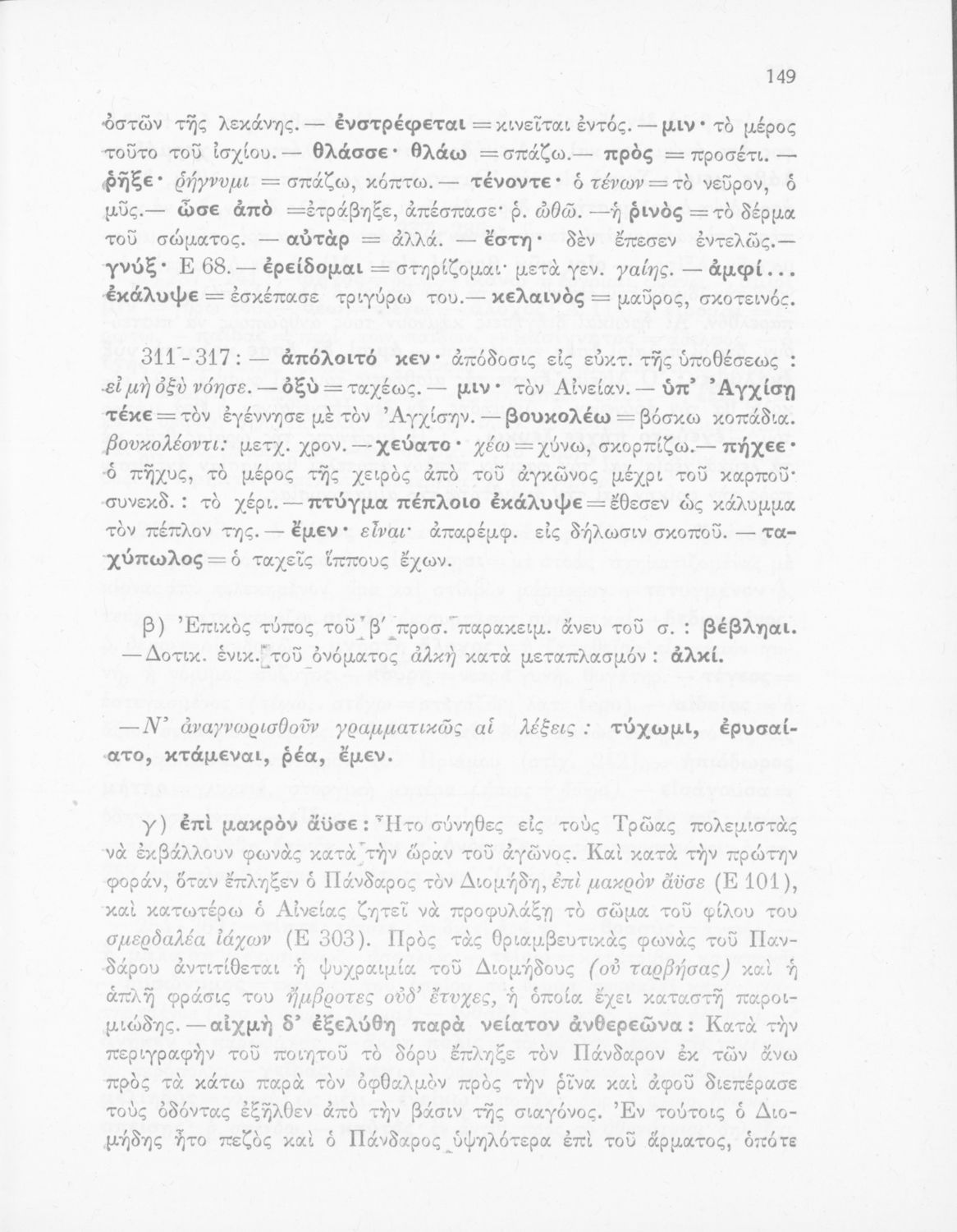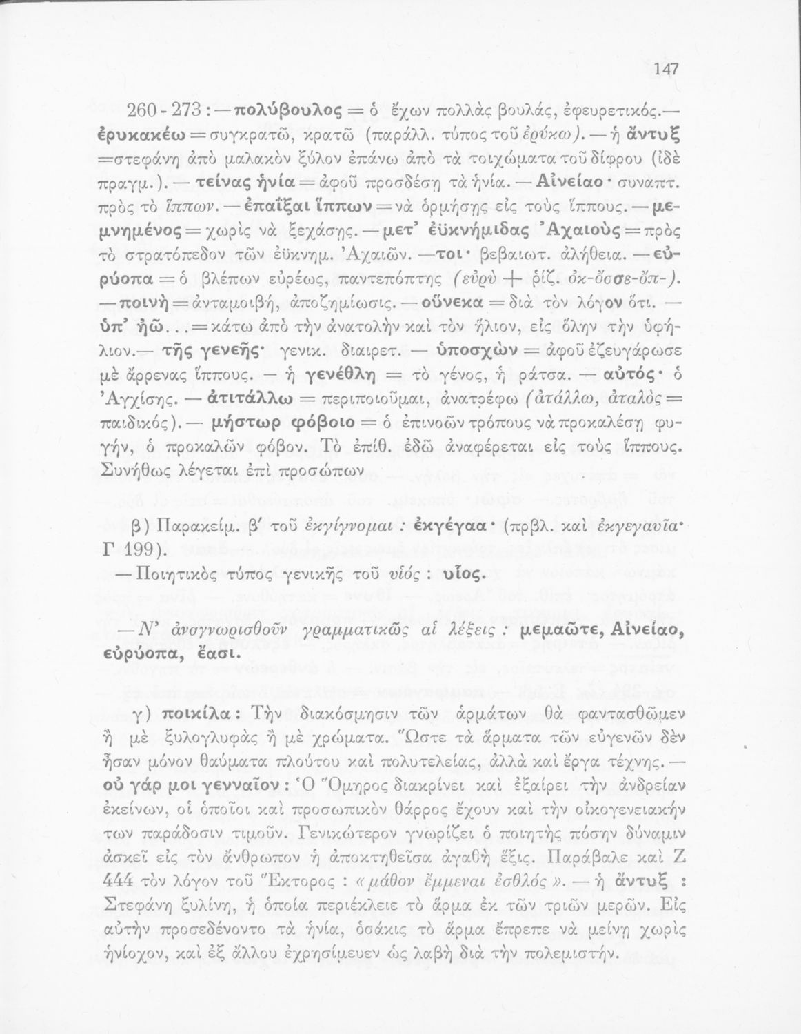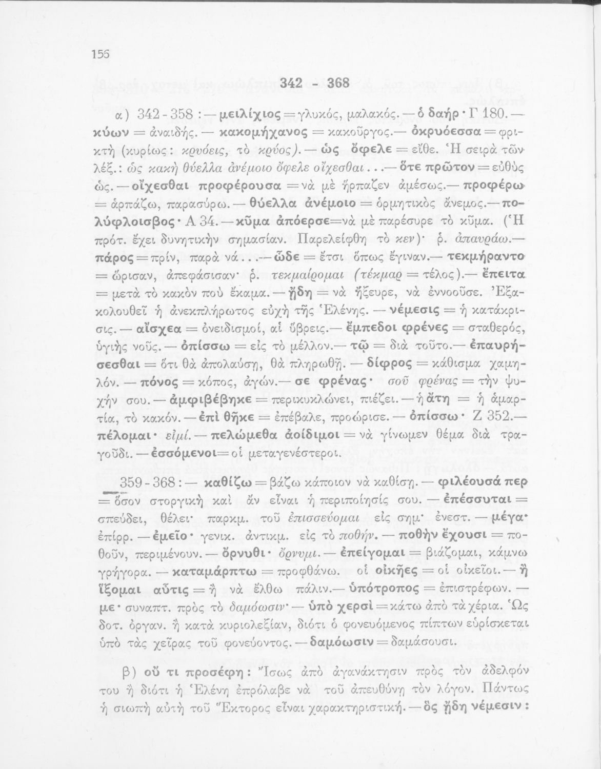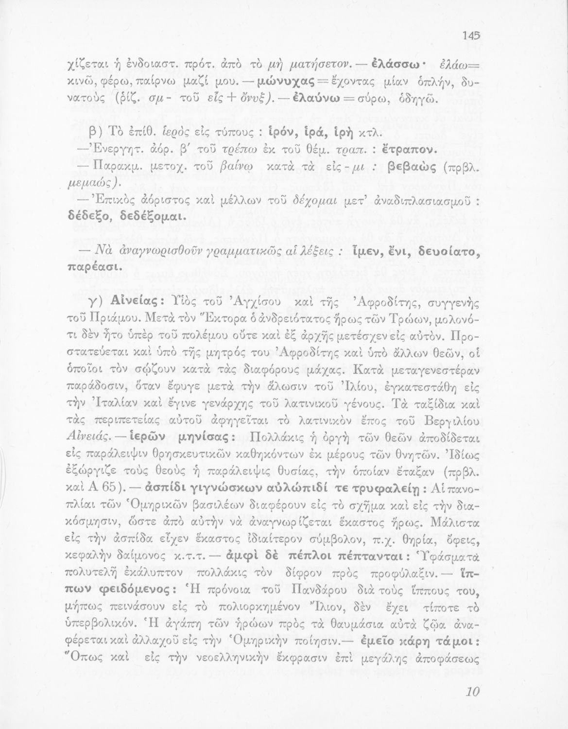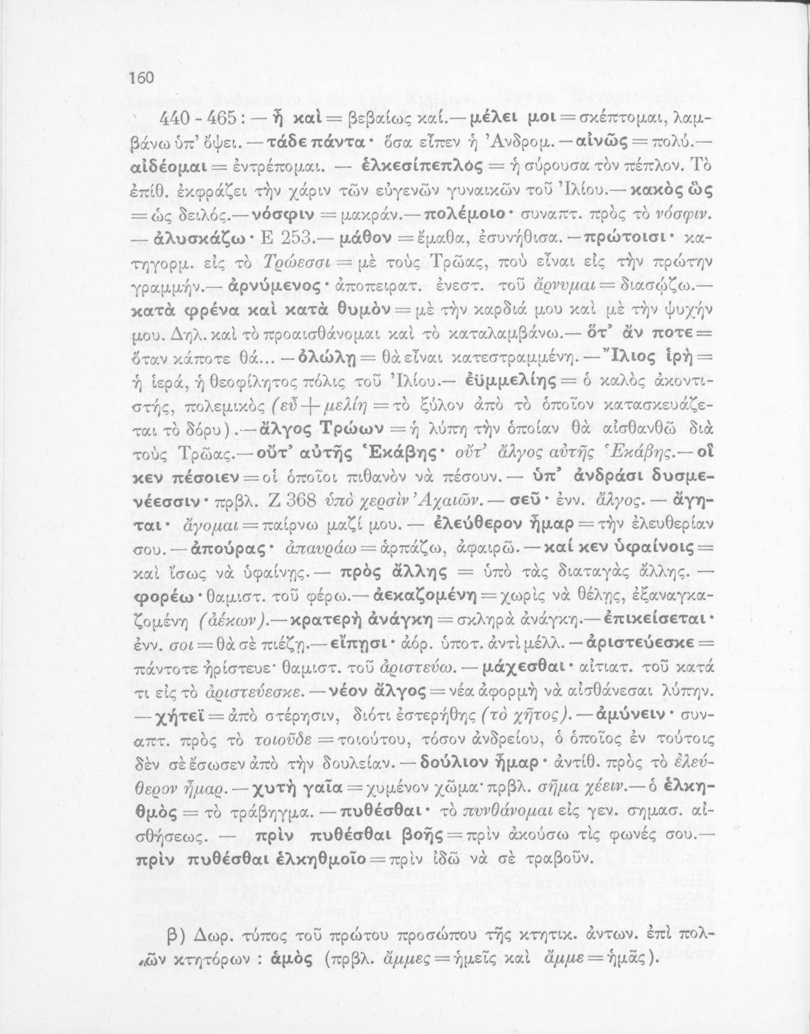 Μαθητικό βοήθημα του Ελληνικού Σχολείου, των Παρθεναγωγείων και του Γυμνασίου για το μάθημα των Αρχαίων Ελληνικών. Περιέχει τις ραψωδίες Ο, Π, Ρ, Σ, Τ, Χ, ψ, Ω από το πρωτότυπο με σχόλια και ερμηνευτικές ...