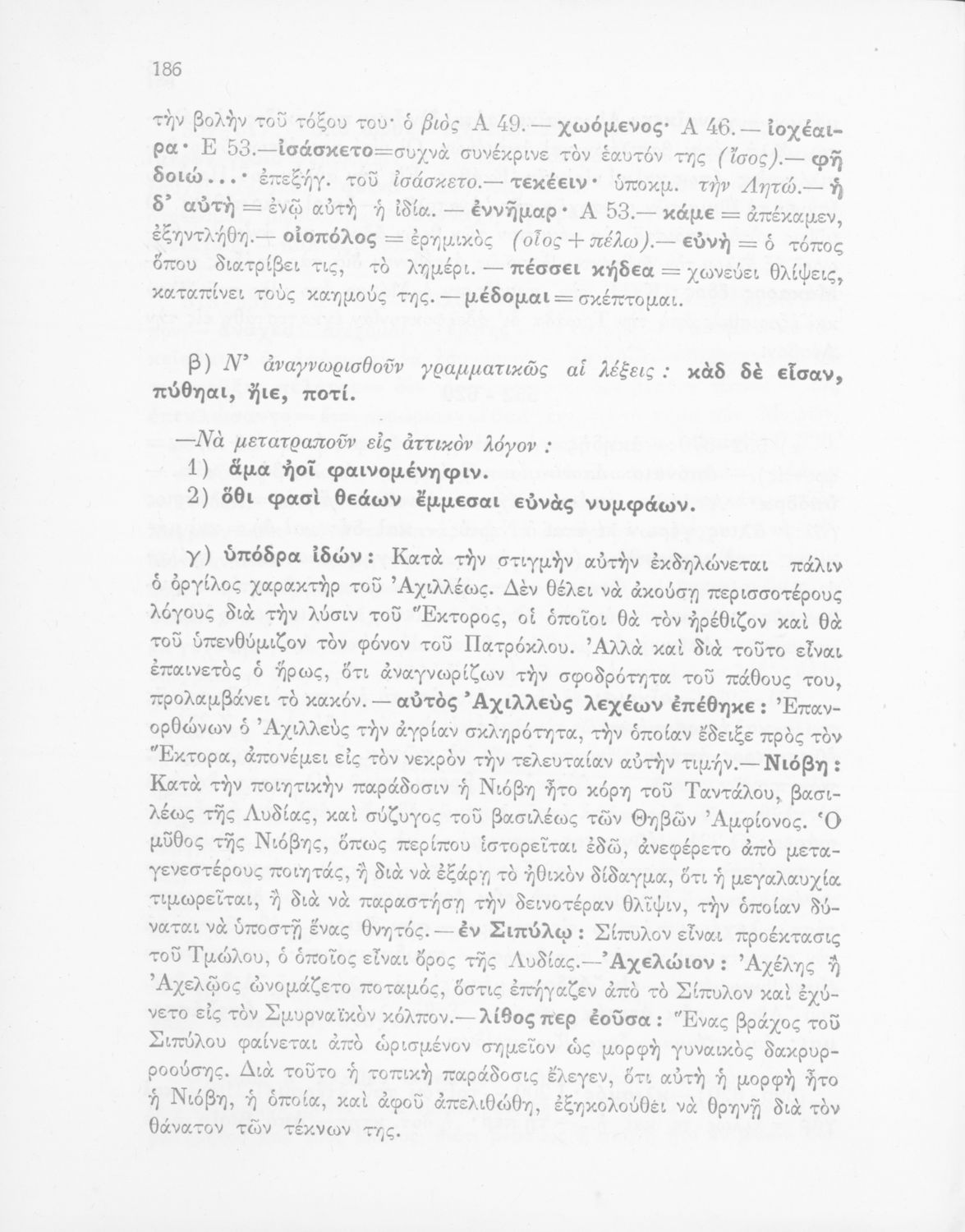 Βαθμίδα εκπαίδευσης: Δευτεροβάθμια Τάξη: Γυμνάσιο Μάθημα: Αρχαία Ελληνικά Γλώσσα: Απλή καθαρεύουσα Παρουσίαση περιεχομένου: Σχολικό εγχειρίδιο για τις Τάξεις του Γυμνασίου για το μάθημα των Αρχαίων Ελληνικών. Περιλαμβάνει αποσπάσματα τις ραψωδίες της Ιλιάδας. Περιέχει ερμηνευτικά και πραγματολογικά σχόλια και λεξιλογικές παρατηρήσεις του συγγραφέα. |