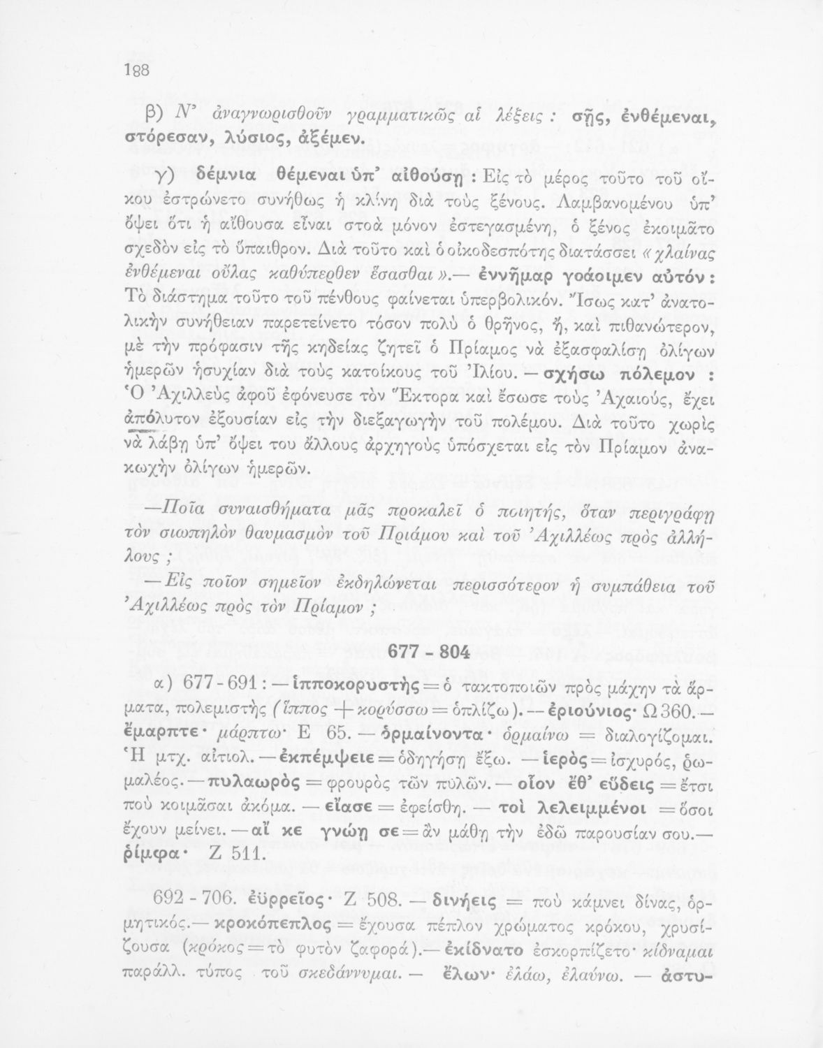Σχολικό εγχειρίδιο για τις Τάξεις του Γυμνασίου για το μάθημα των Αρχαίων Ελληνικών. Περιλαμβάνει αποσπάσματα τις ραψωδίες της Ιλιάδας. Περιέχει ερμηνευτικά και πραγματολογικά σχόλια και λεξιλογικές παρατηρήσεις του συγγραφέα.