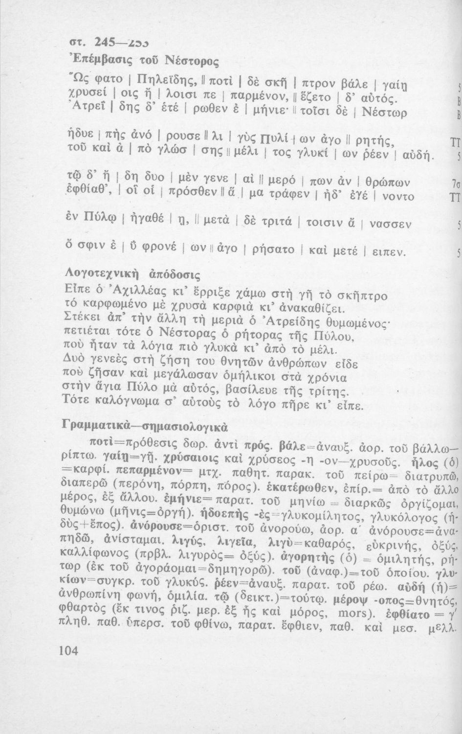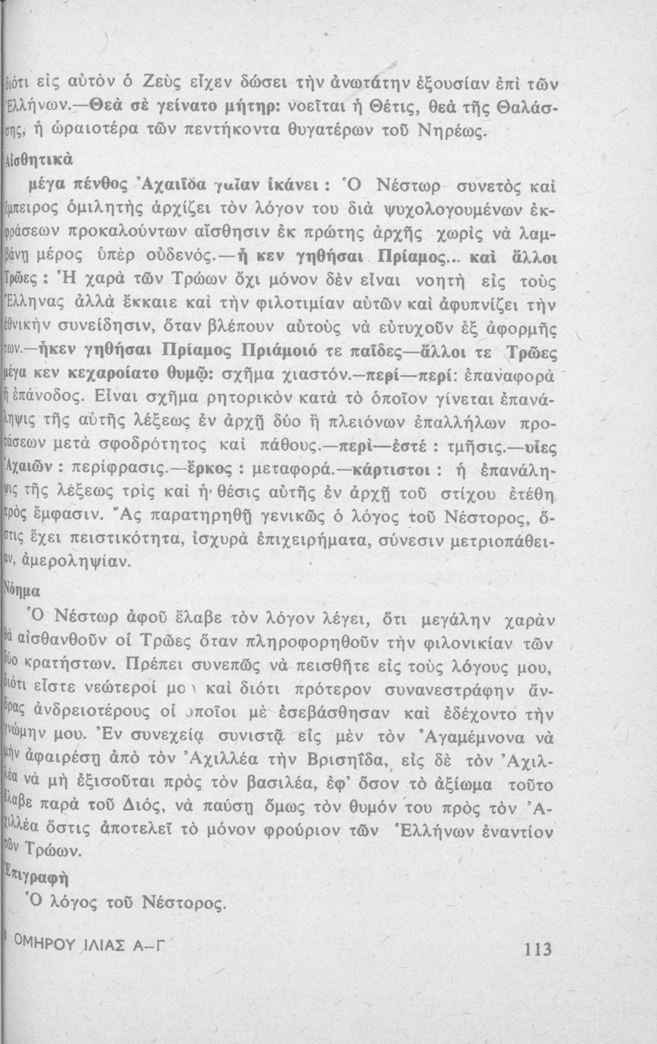 Ομήρου Ιλιάς, Ραψωδία Α' και Γ' δια τους μαθητάς της Ε΄ τάξεως των Γυμνασίων
