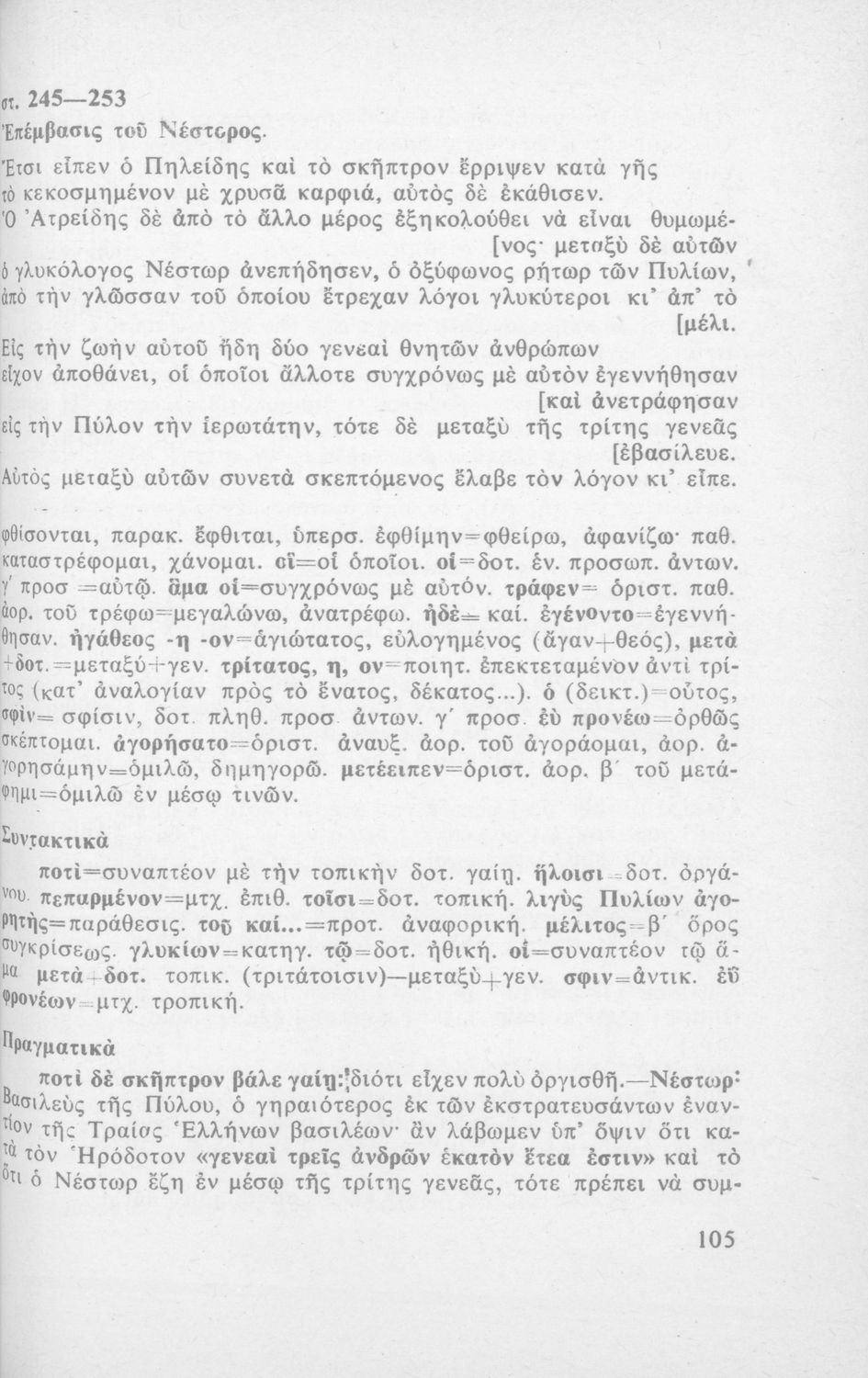 Μαθητικό βοήθημα Αρχαίων Ελληνικών για τους μαθητές της Ε' τάξης των Γυμνασίων. Περιέχει το κείμενο, μετάφραση, γραμματικά και συντακτικά σχόλια.