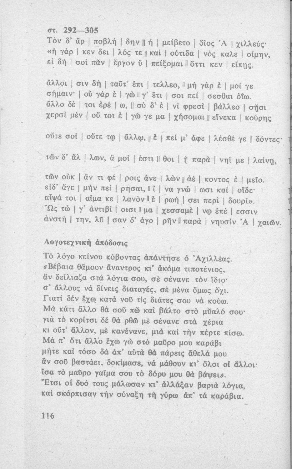 Μαθητικό βοήθημα Αρχαίων Ελληνικών της Γ΄ τάξης των τετρατάξιων Γυμνασίων το οποίο περιέχει σε μετάφραση τη ραψωδία Α΄ από την 'Ιλιάδα' του Ομήρου.