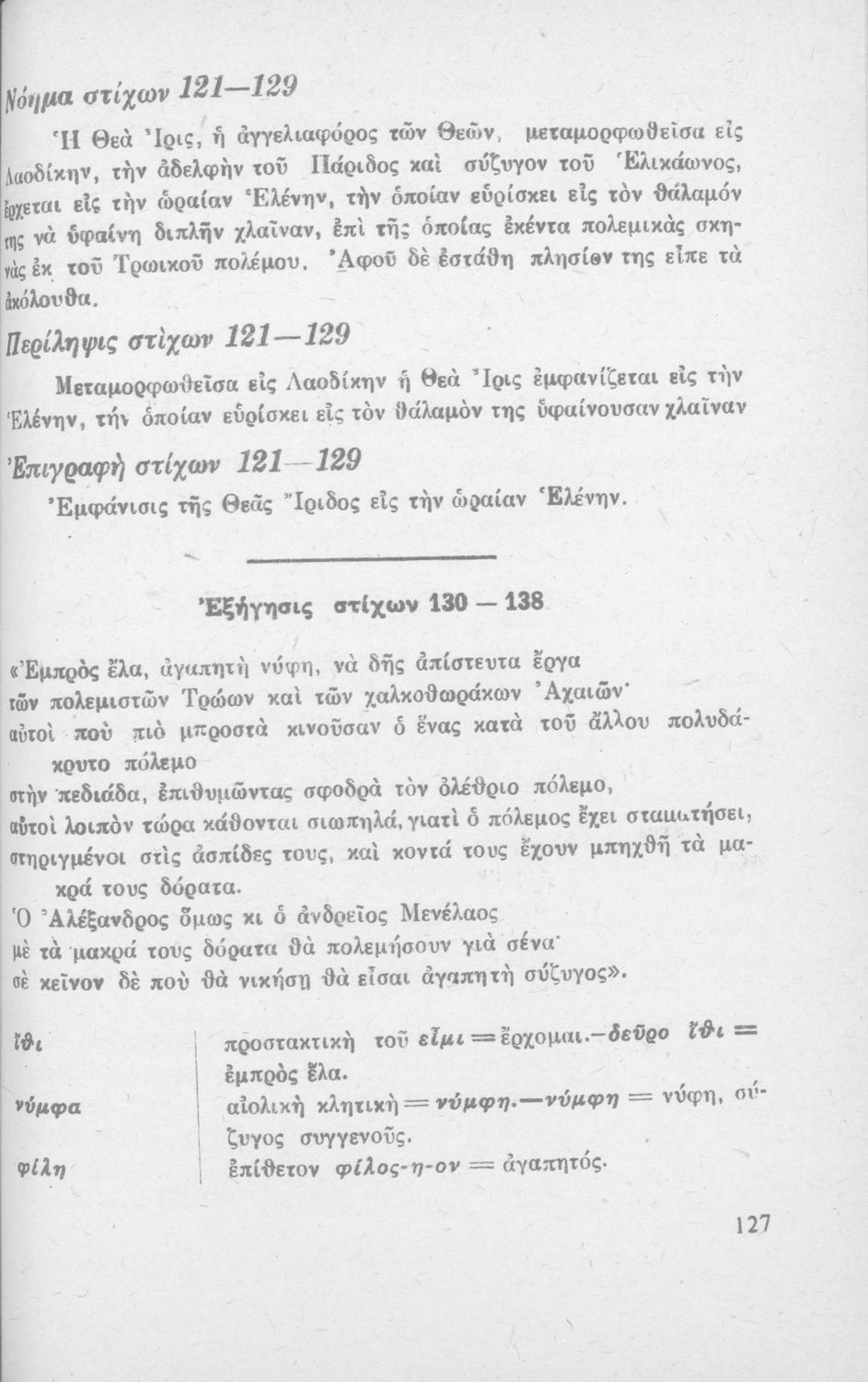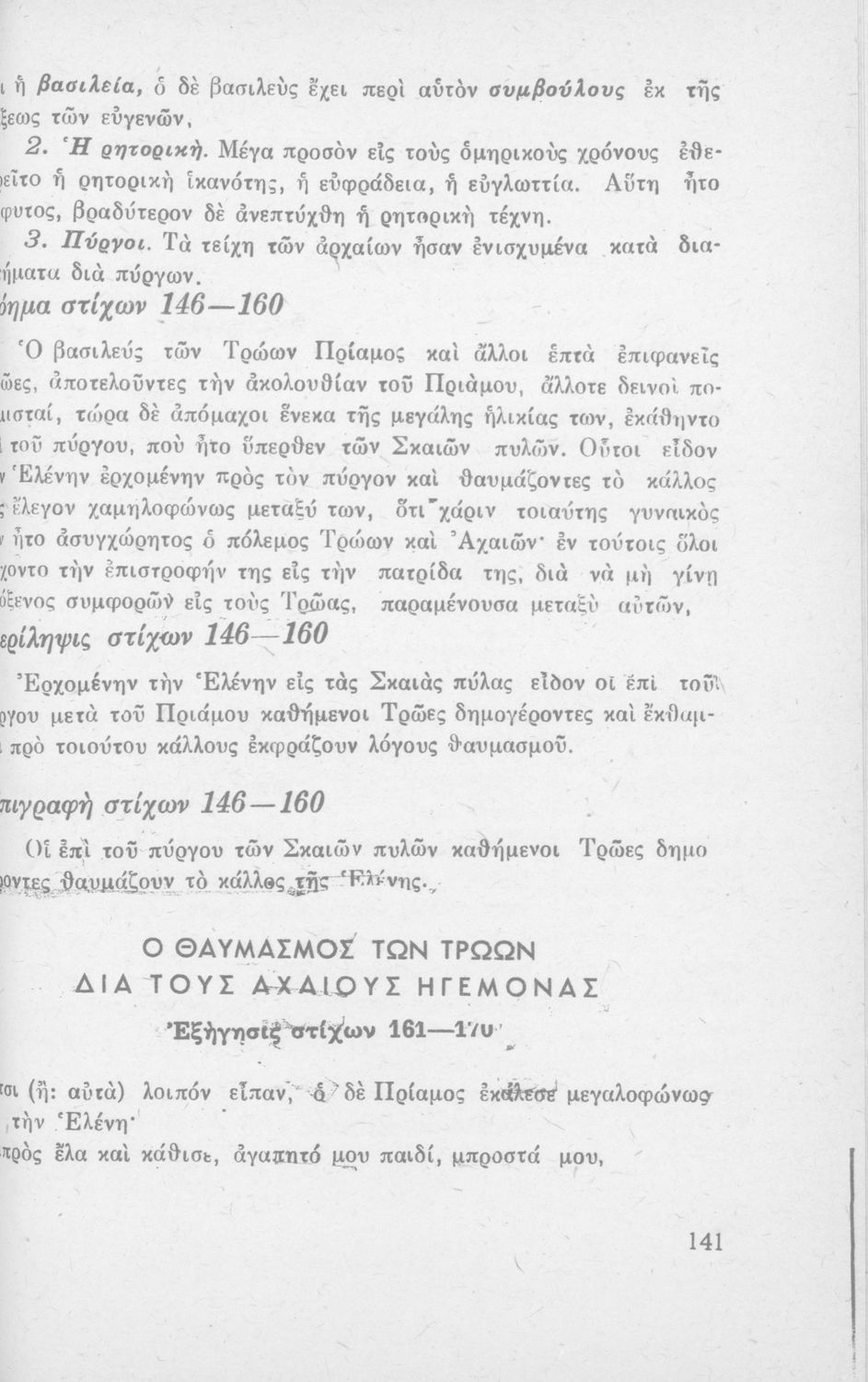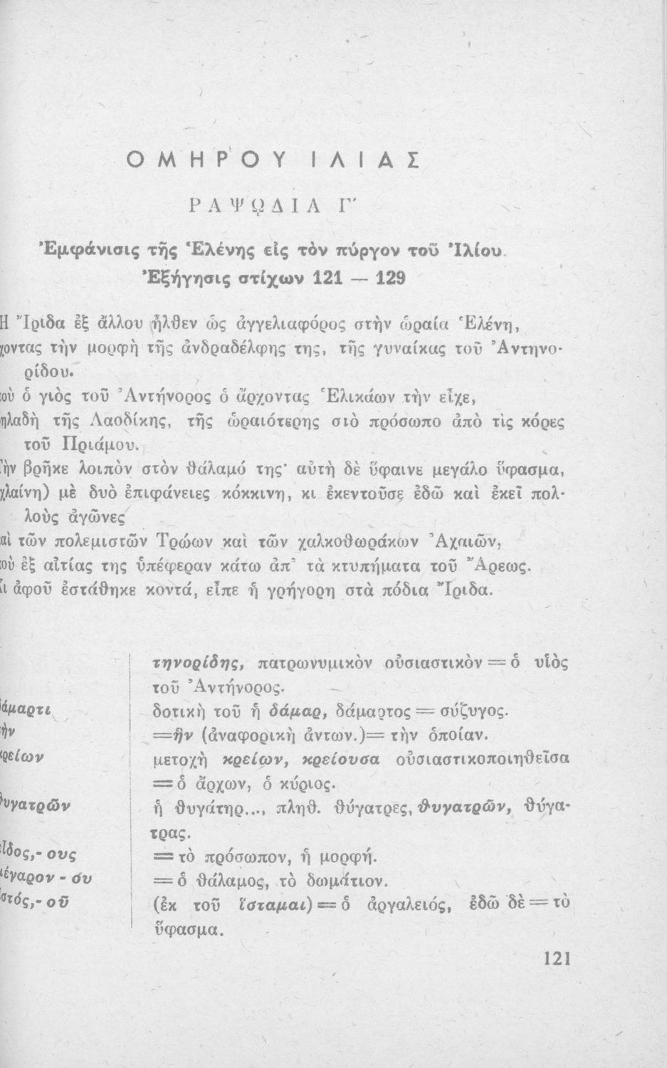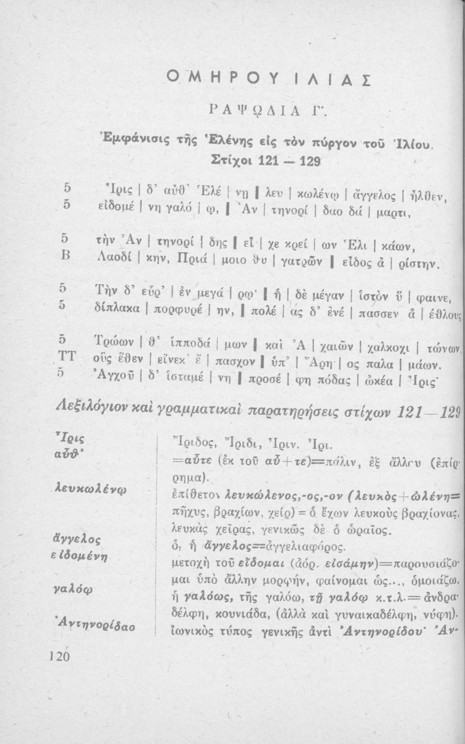 Ομήρου Ιλιάς, Ραψωδία Α' και Γ' δια τους μαθητάς της Ε΄ τάξεως των Γυμνασίων