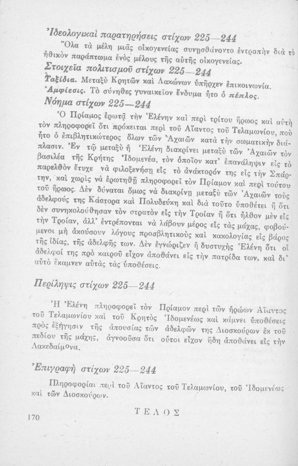 Ομήρου Ιλιάς, Ραψωδία Α' και Γ' δια τους μαθητάς της Ε΄ τάξεως των Γυμνασίων